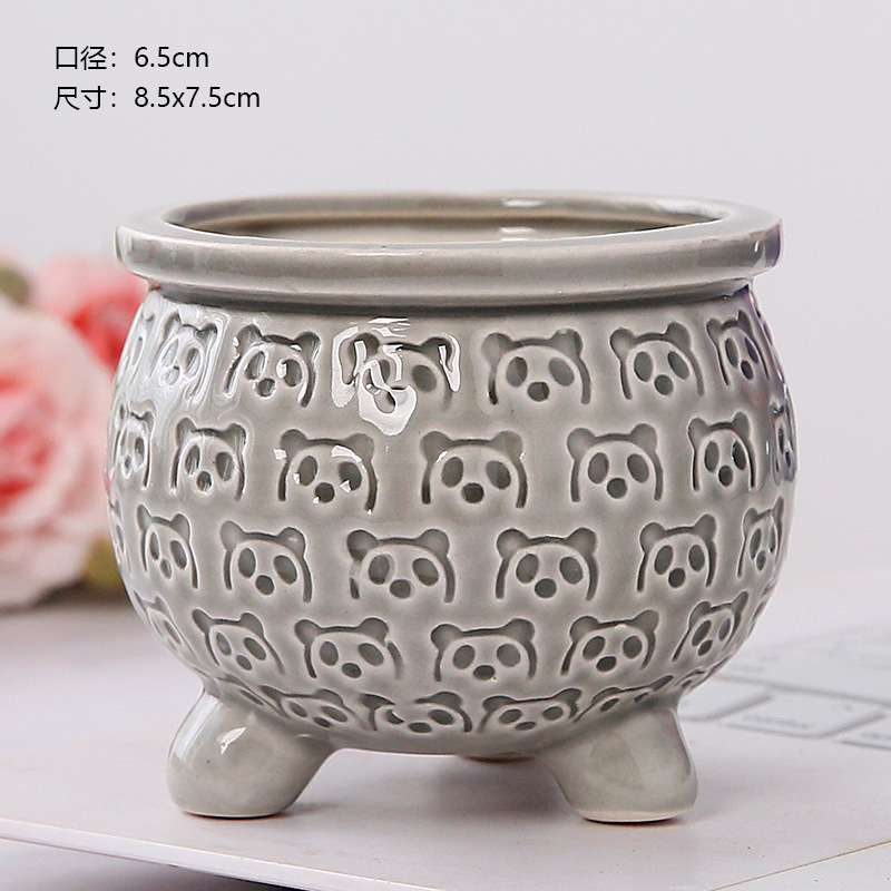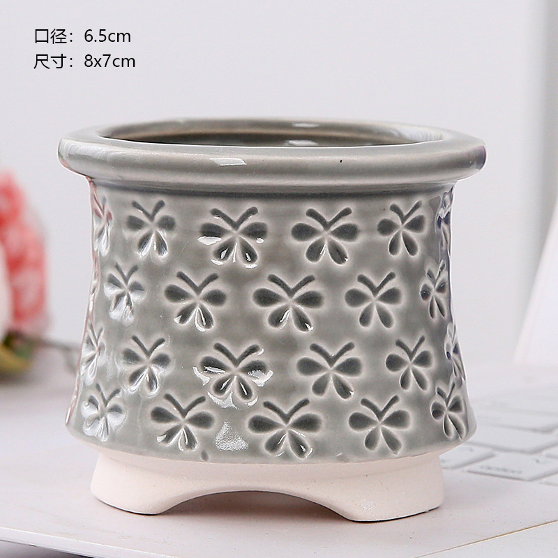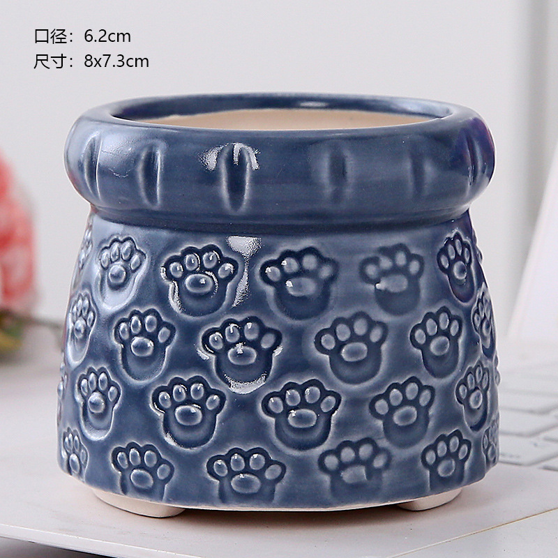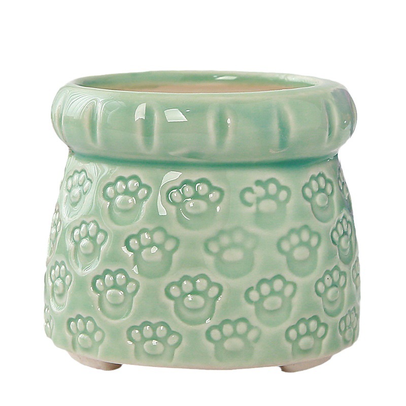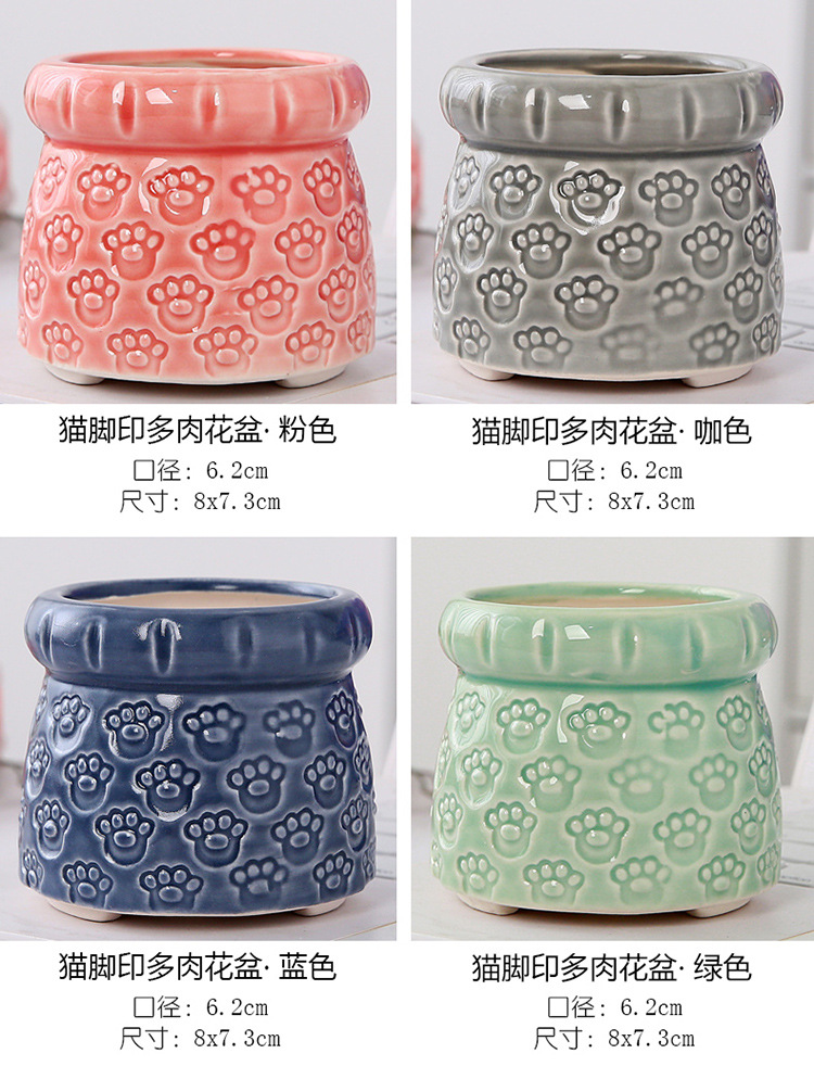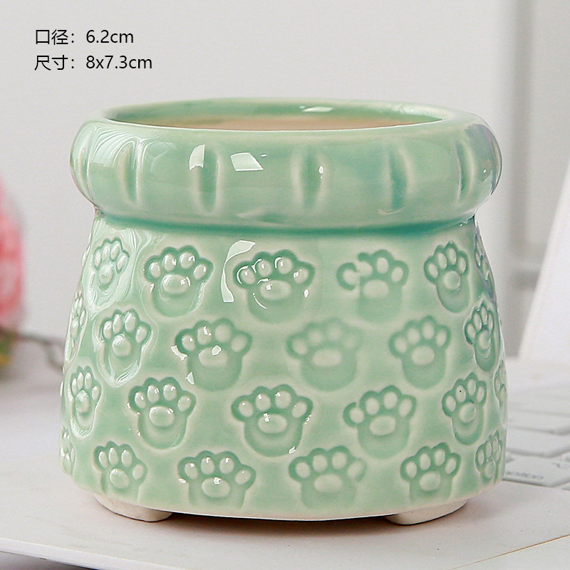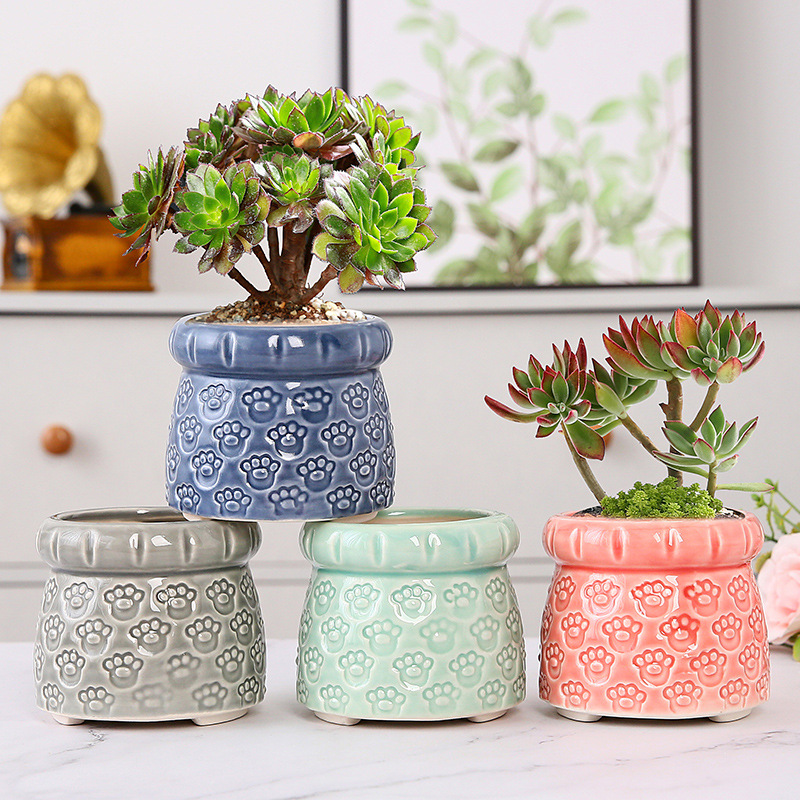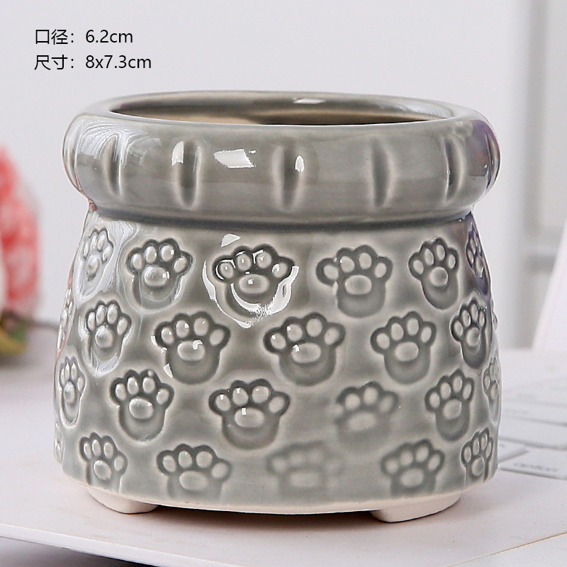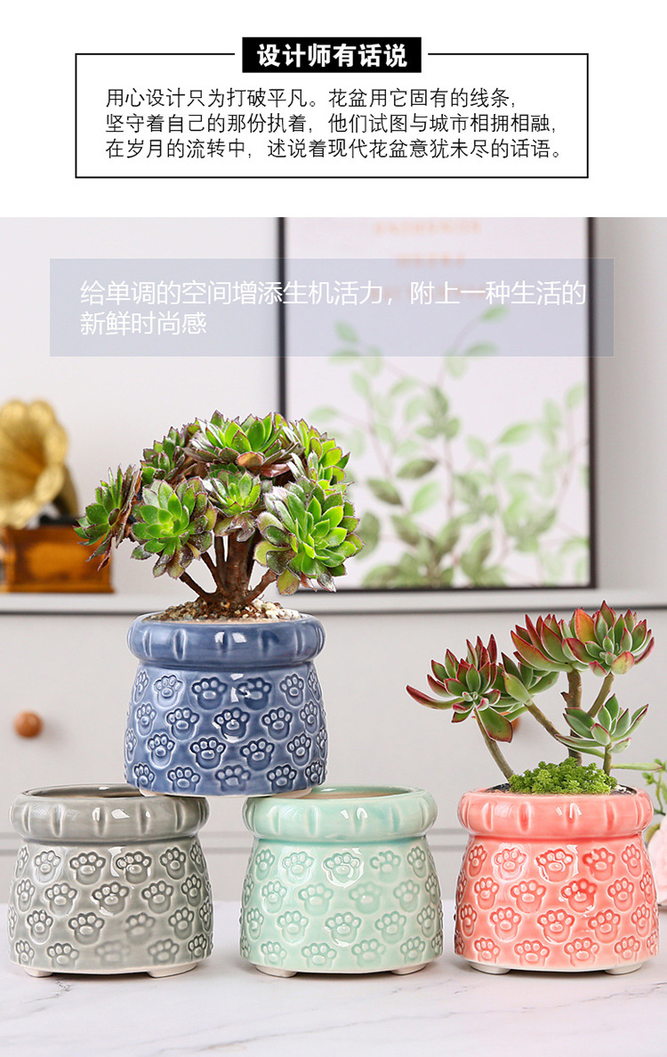 新款跨境电商陶瓷带脚印章创意个性陶瓷多肉花盆盆栽简约清新透气