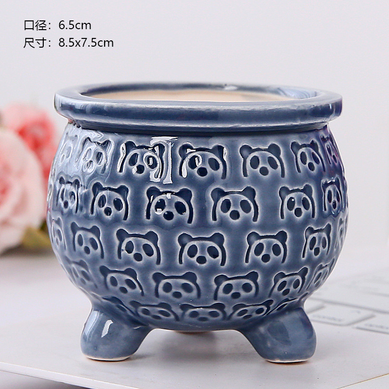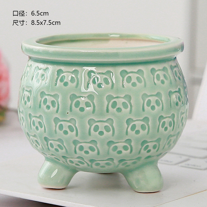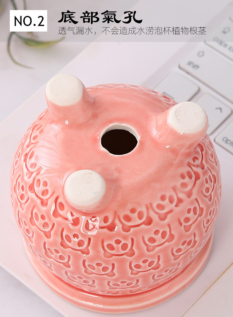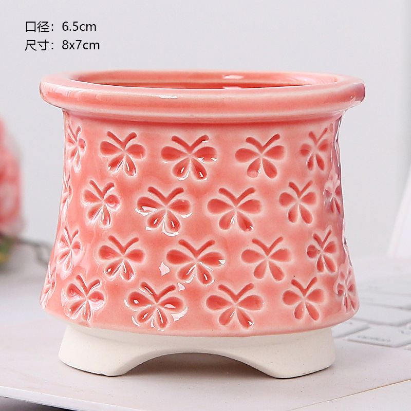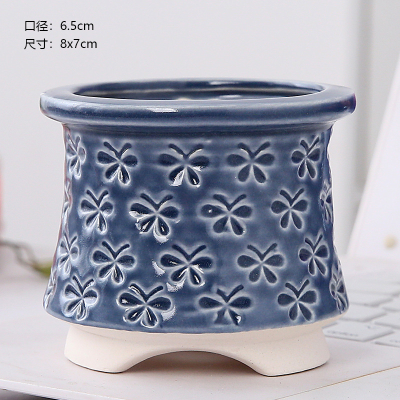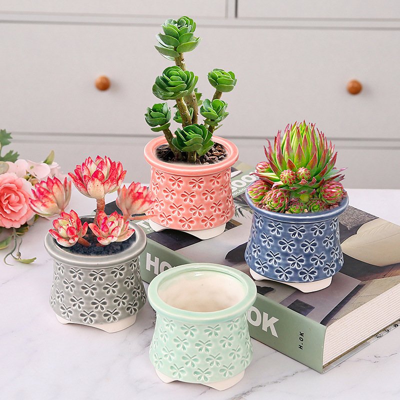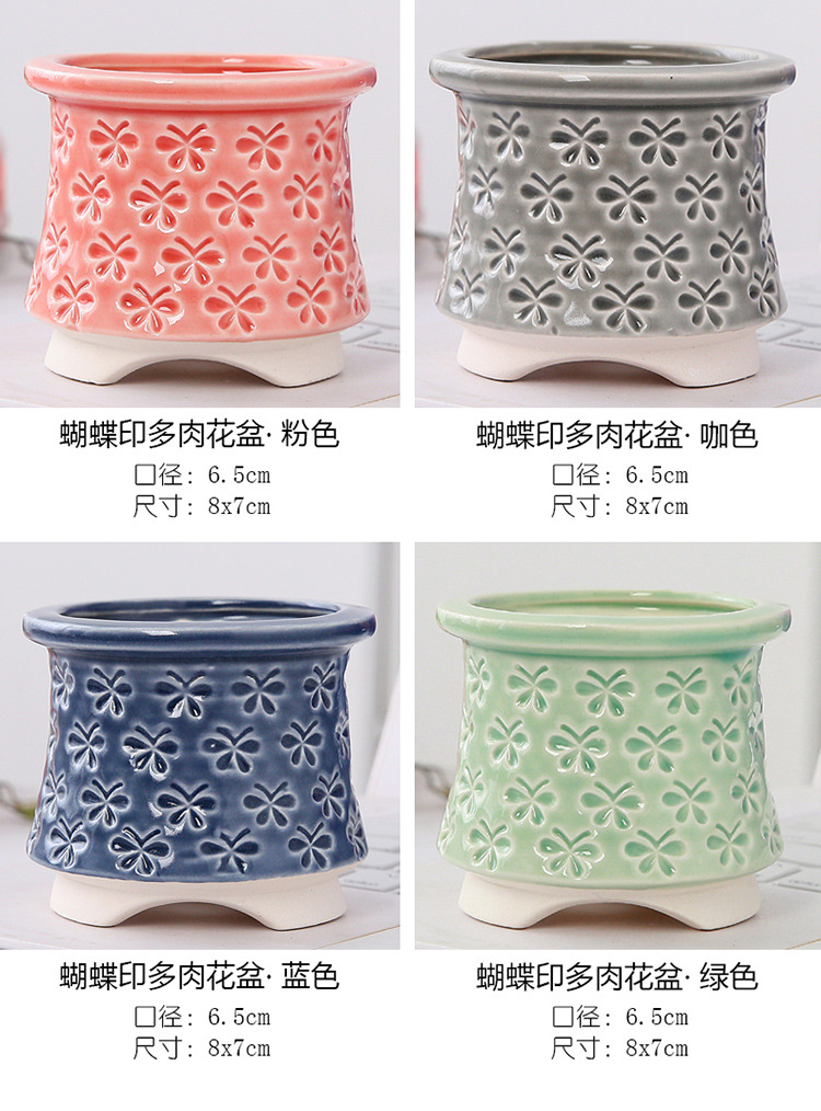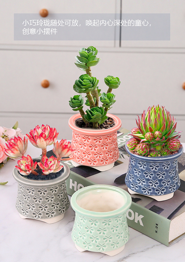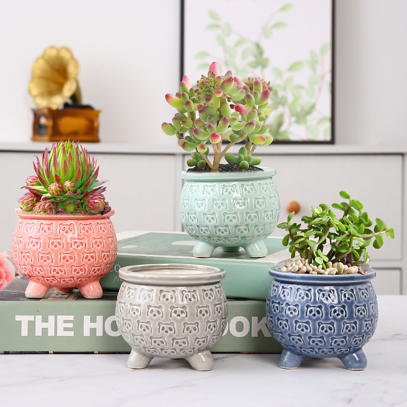 新款跨境电商陶瓷带脚印章创意个性陶瓷多肉花盆盆栽简约清新透气