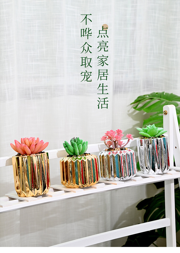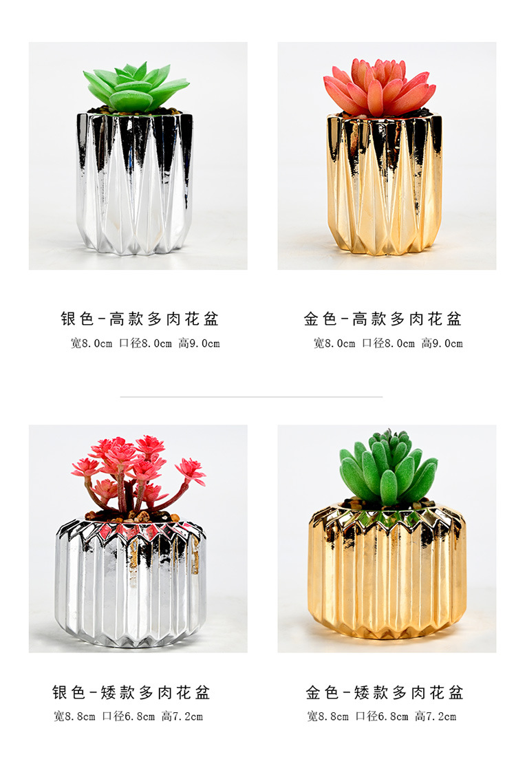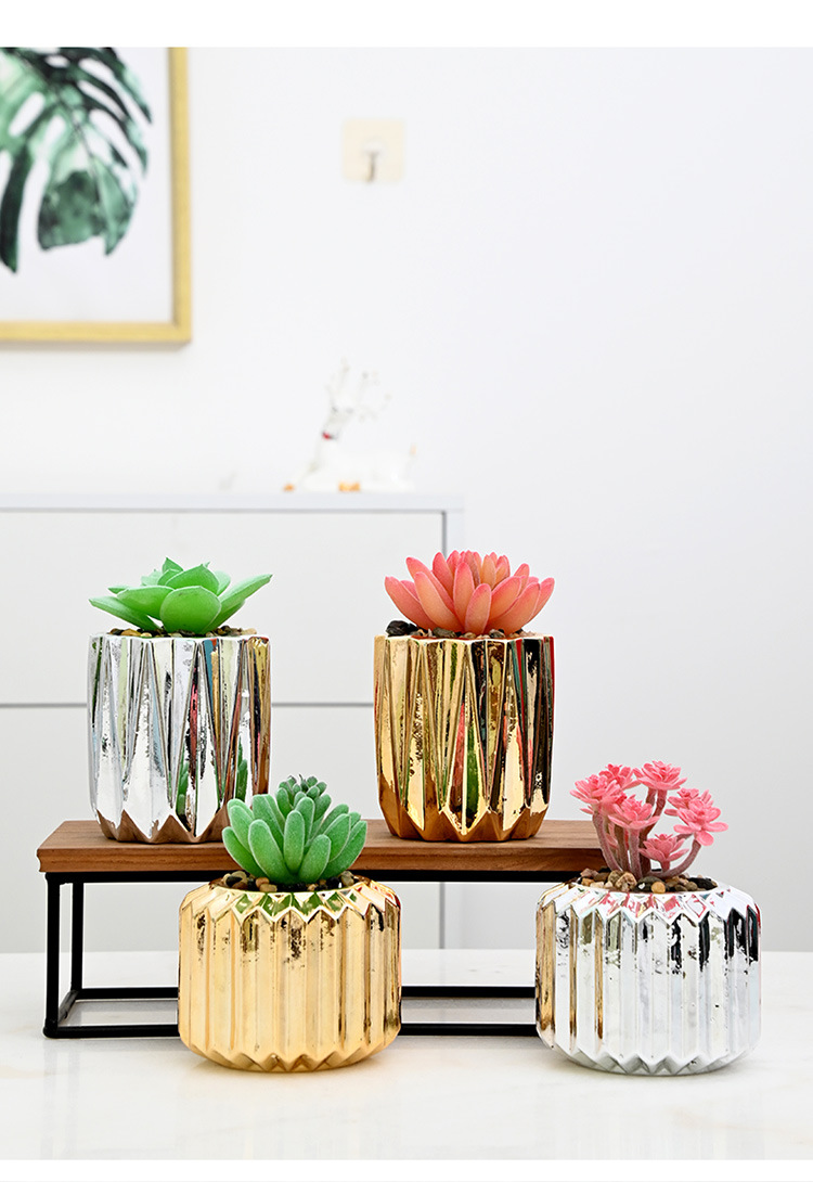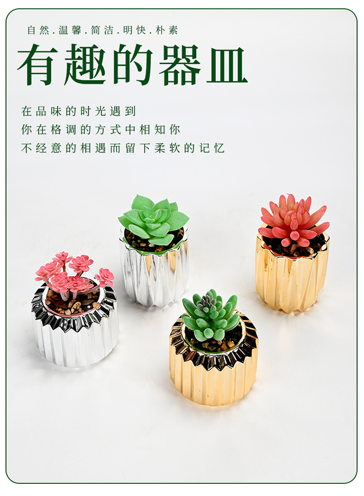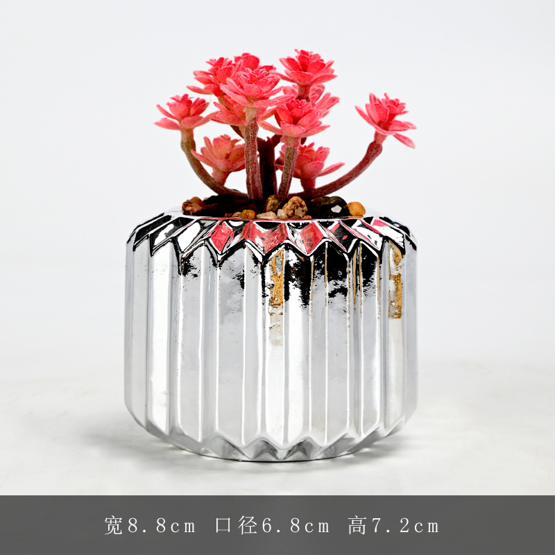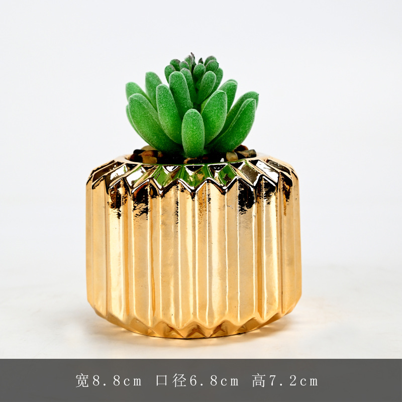 跨境外贸出口电商欧式家居摆件电镀金银北欧创意条纹花盆花插盆栽