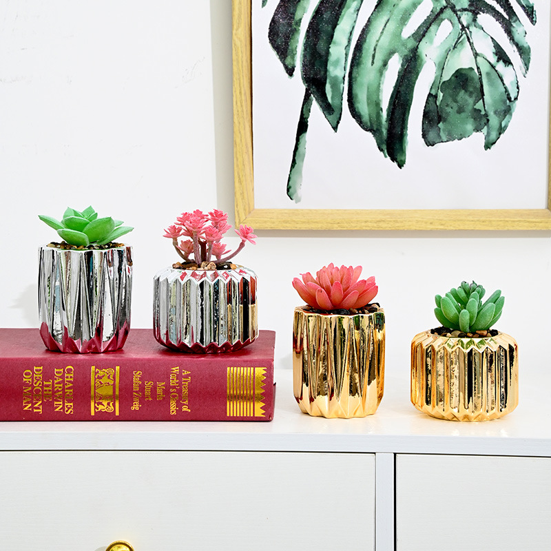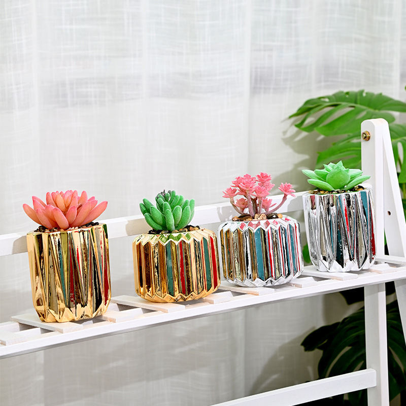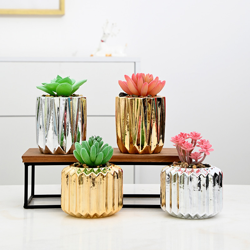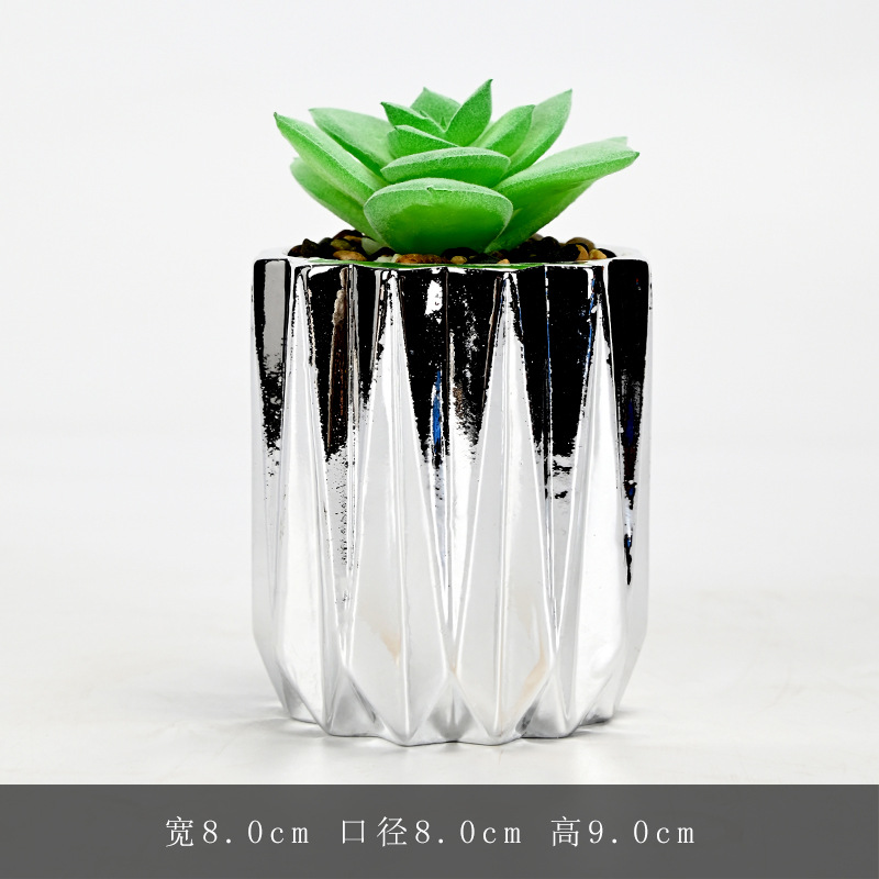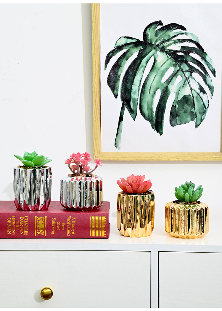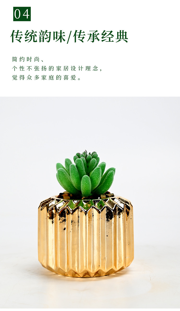 跨境外贸出口电商欧式家居摆件电镀金银北欧创意条纹花盆花插盆栽