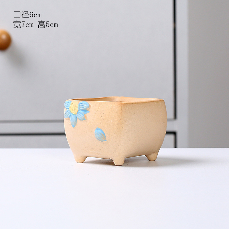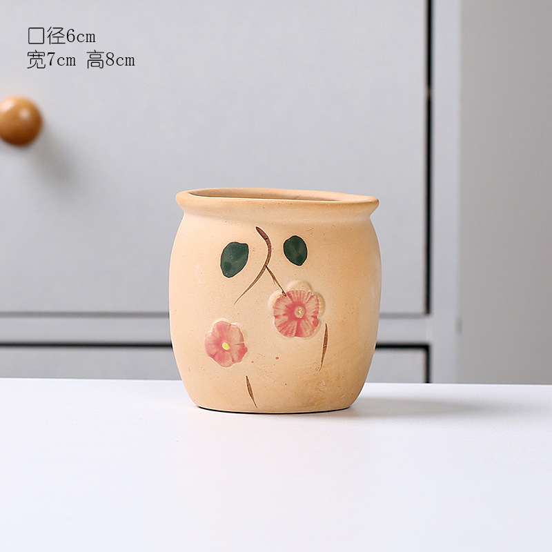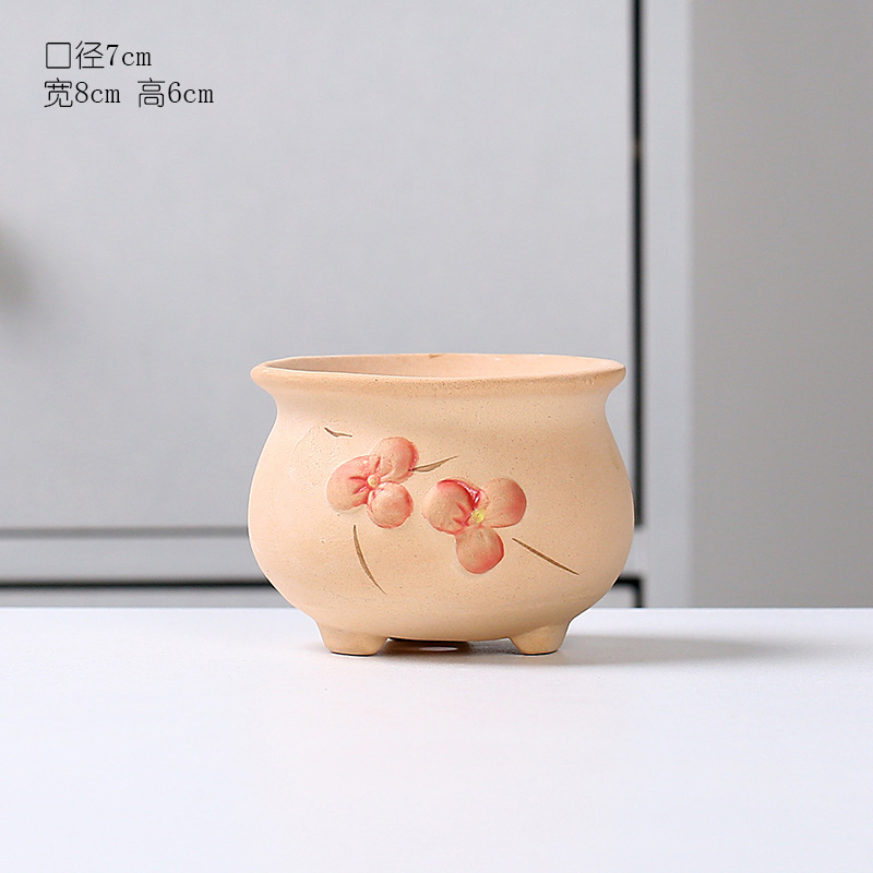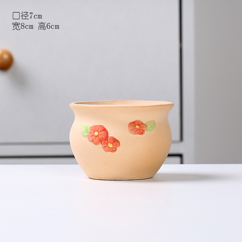 简约创意手绘素烧陶瓷多肉花盆个性透气家居清新园艺植物多肉花盆