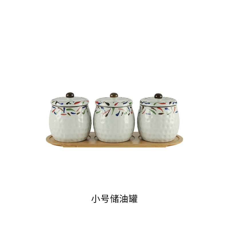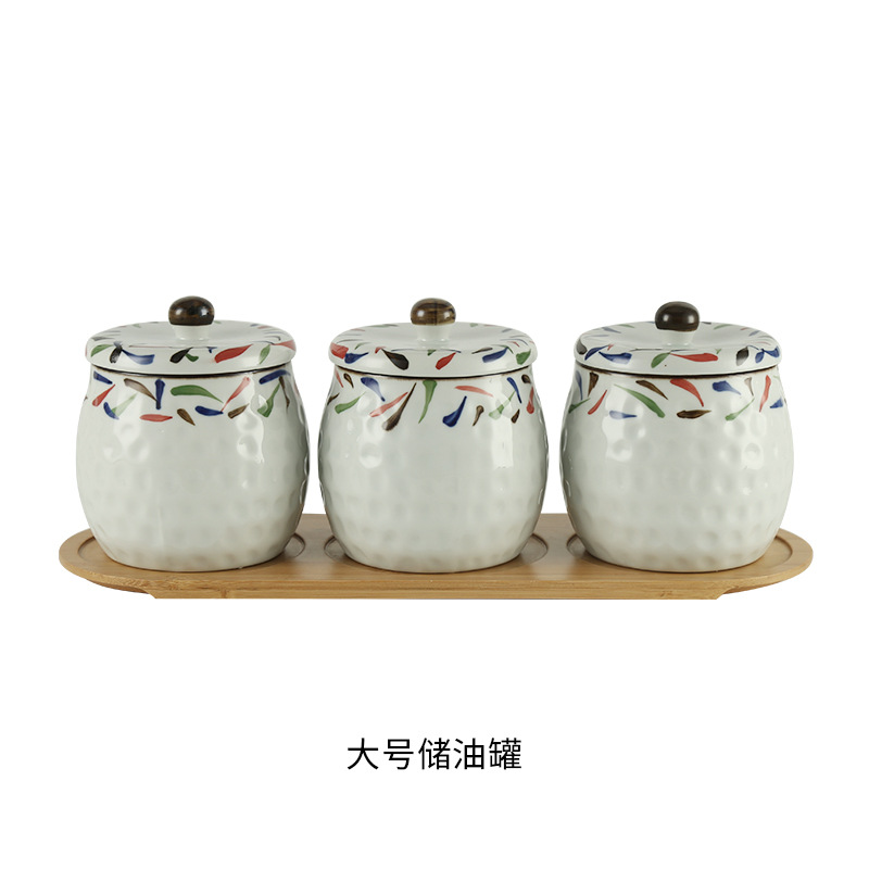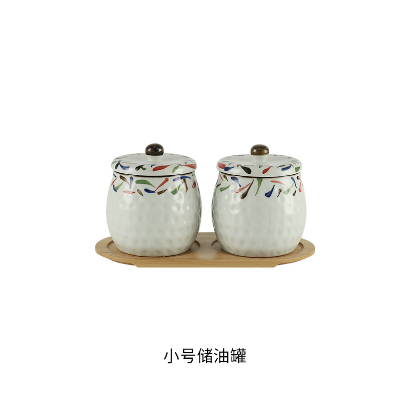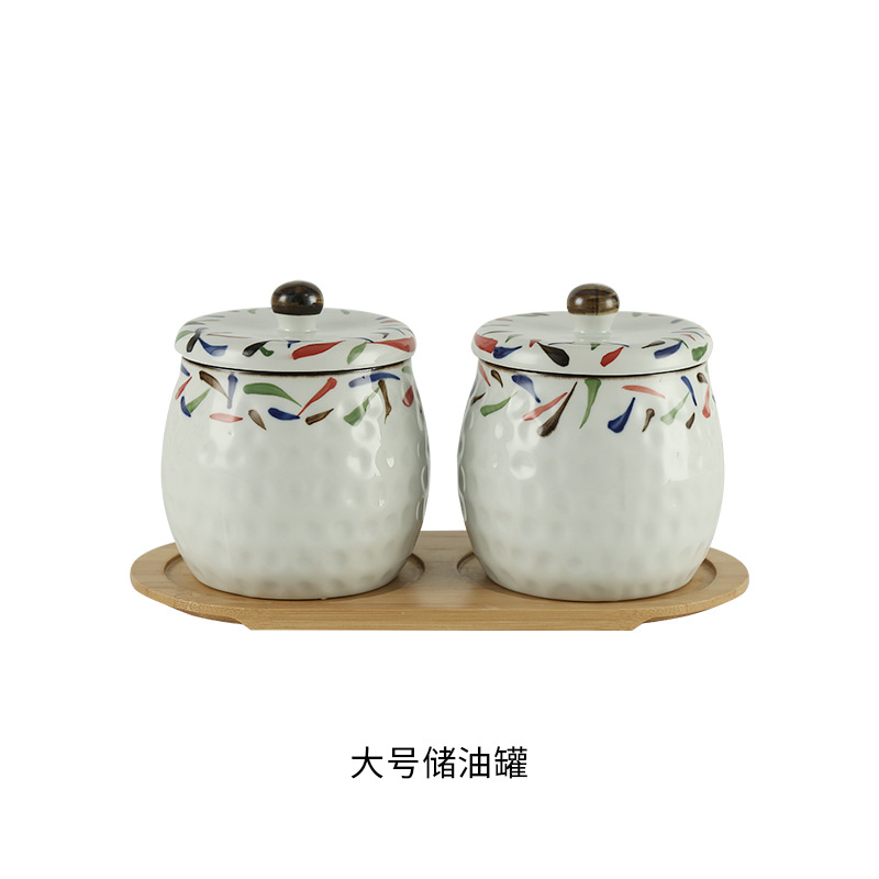 日式调料盒家用套装厨房大号猪油罐耐高温油泼辣子手绘陶瓷调味罐