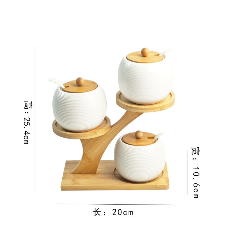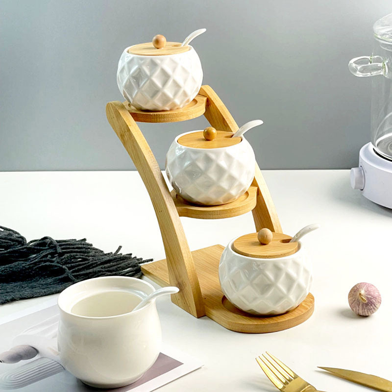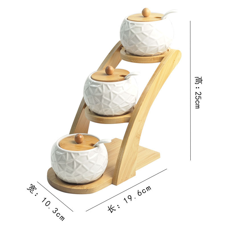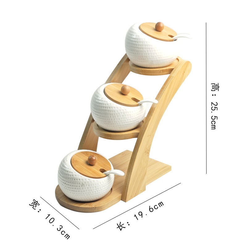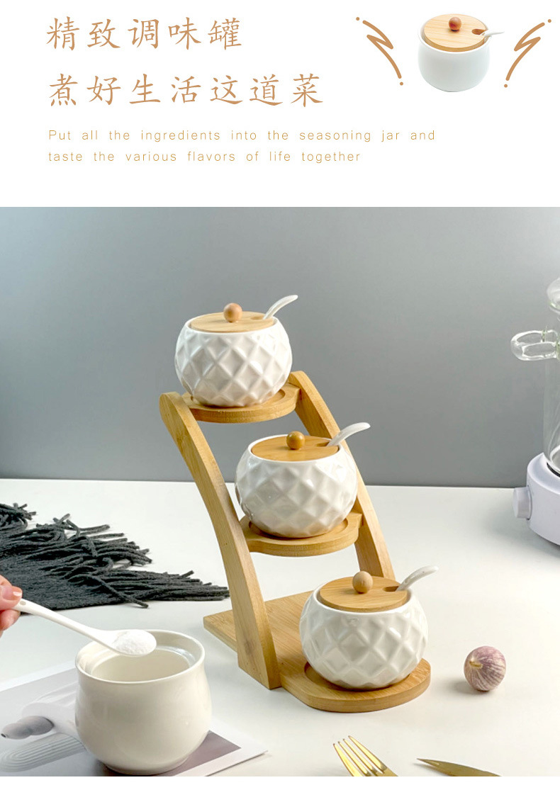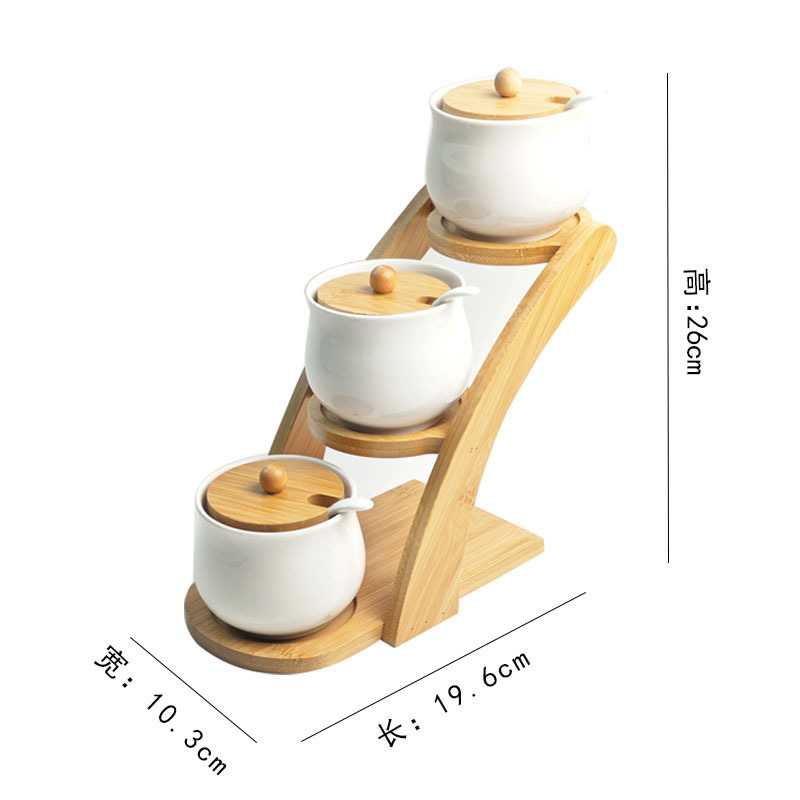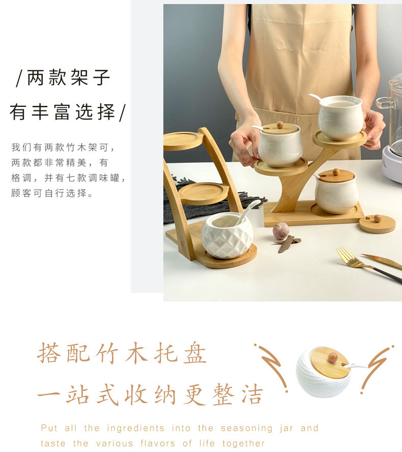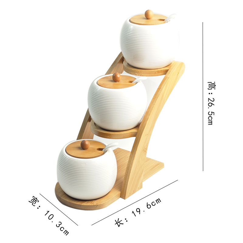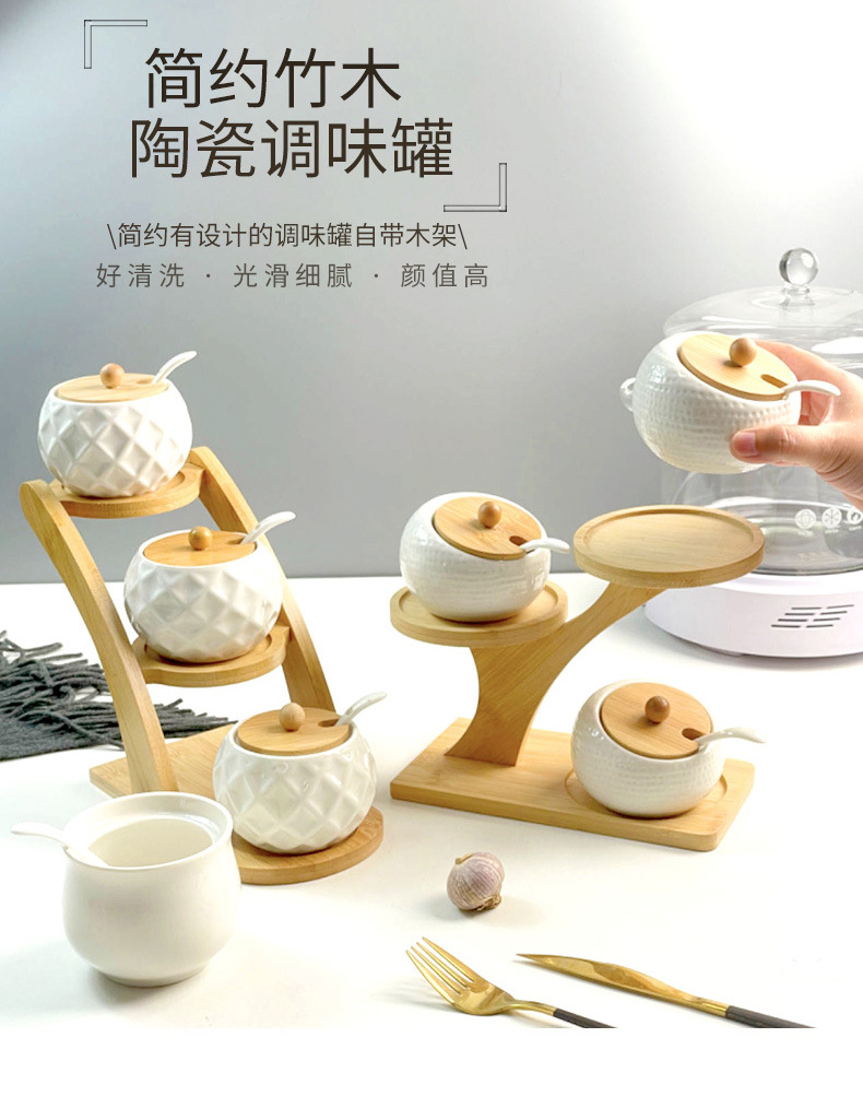 调料罐陶瓷调味罐厨房盐罐家用竹盖调料盒套装多层竹架调味盒礼品