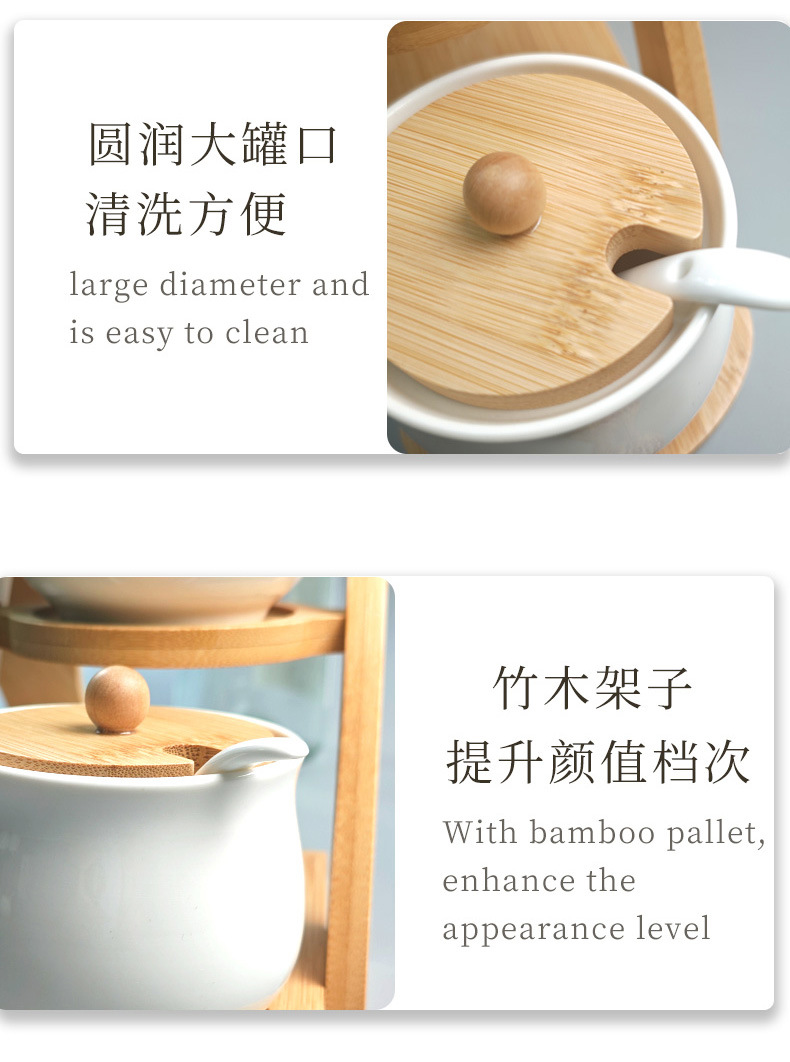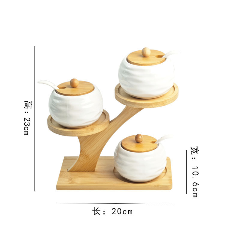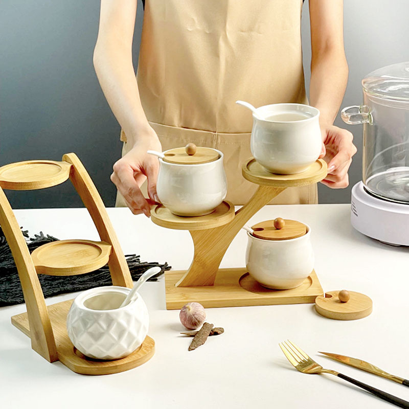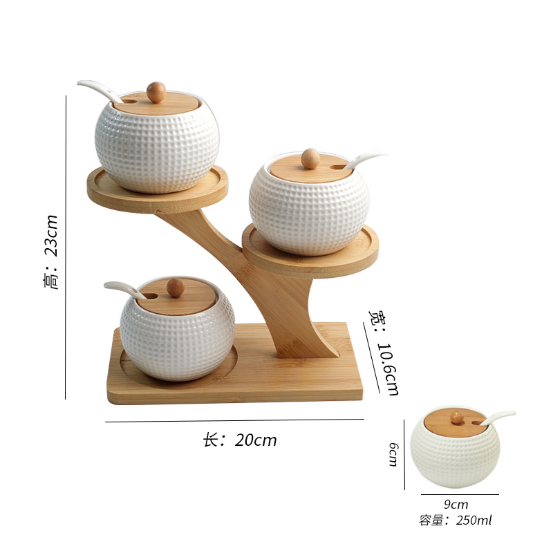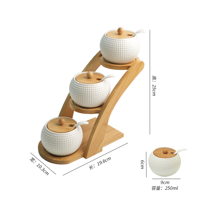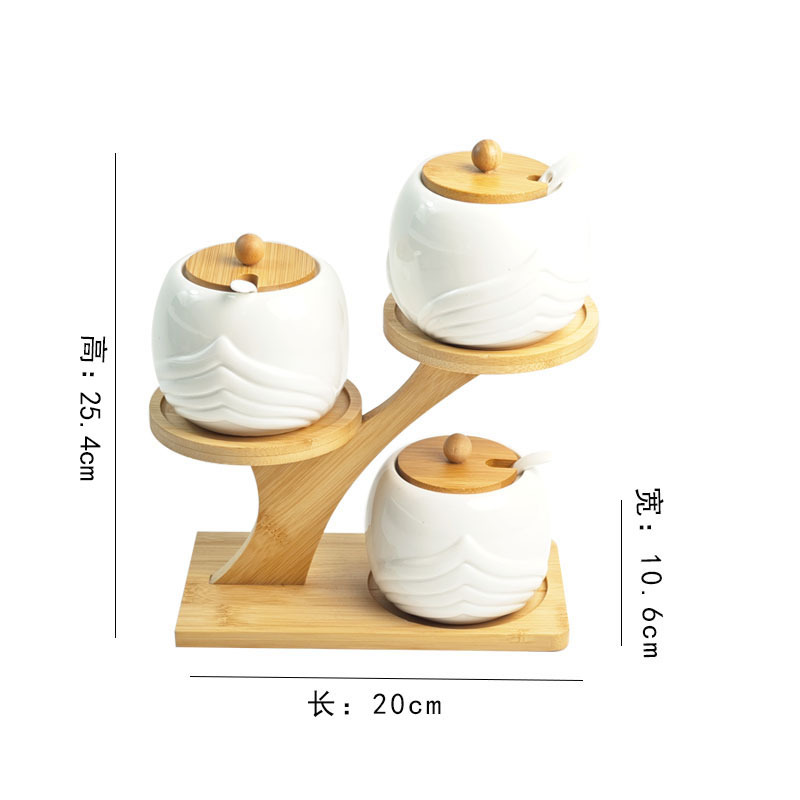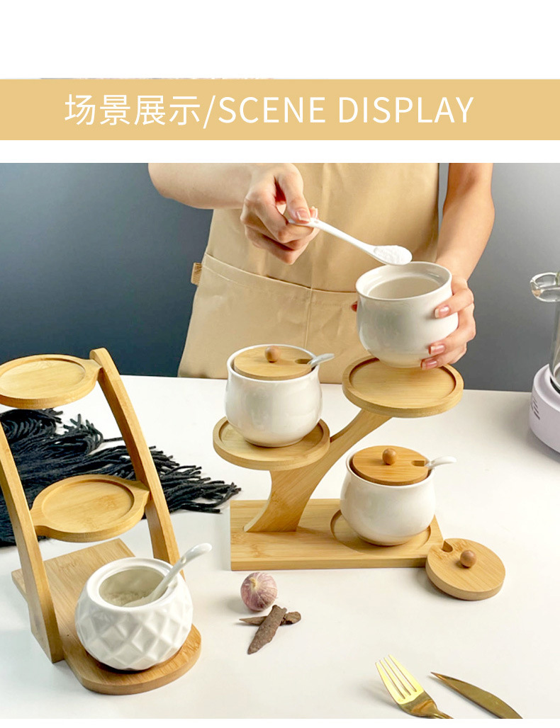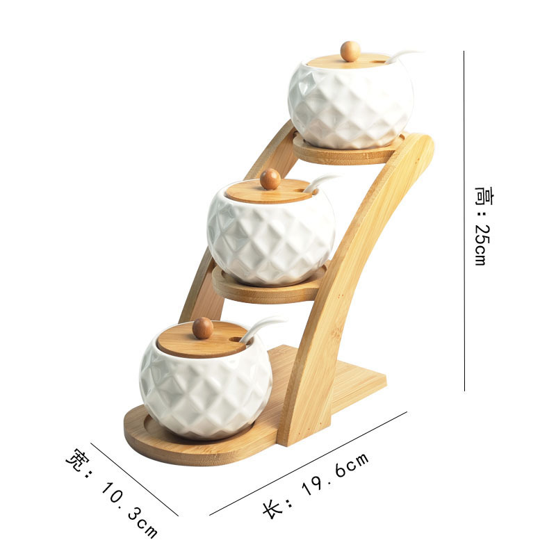 调料罐陶瓷调味罐厨房盐罐家用竹盖调料盒套装多层竹架调味盒礼品