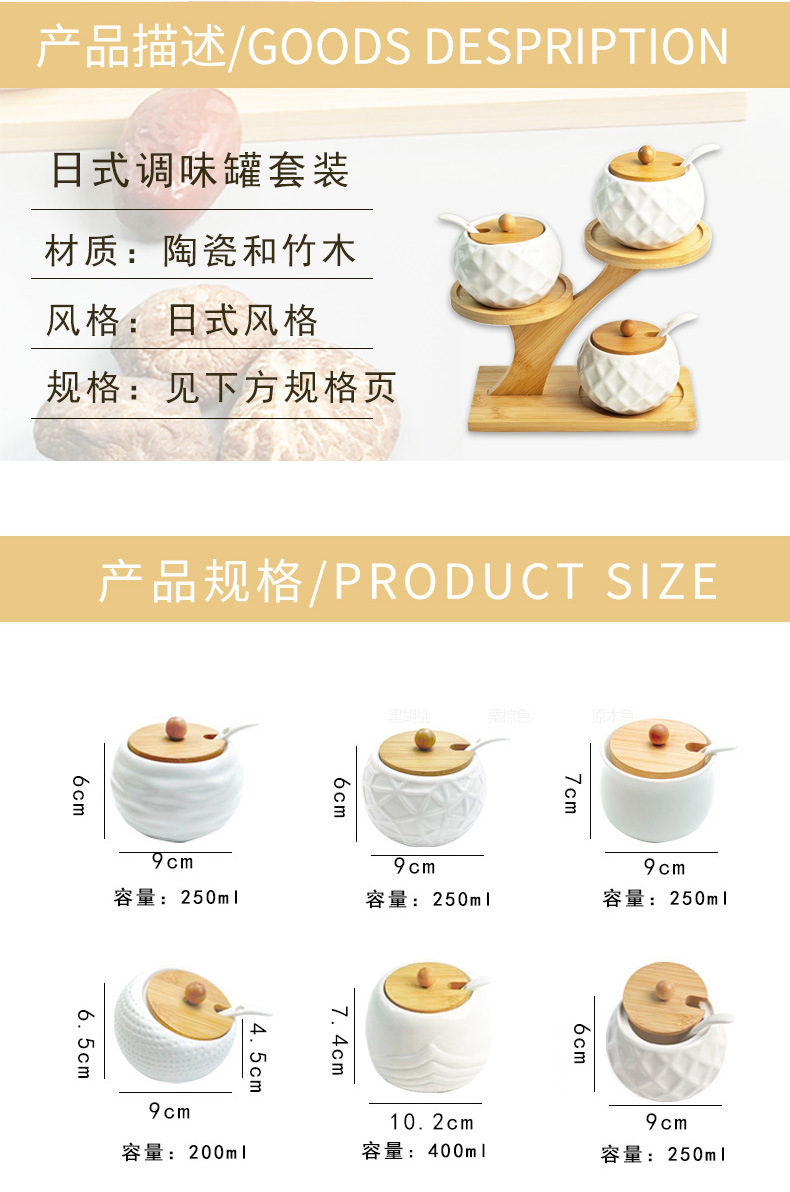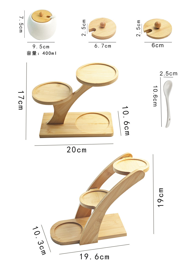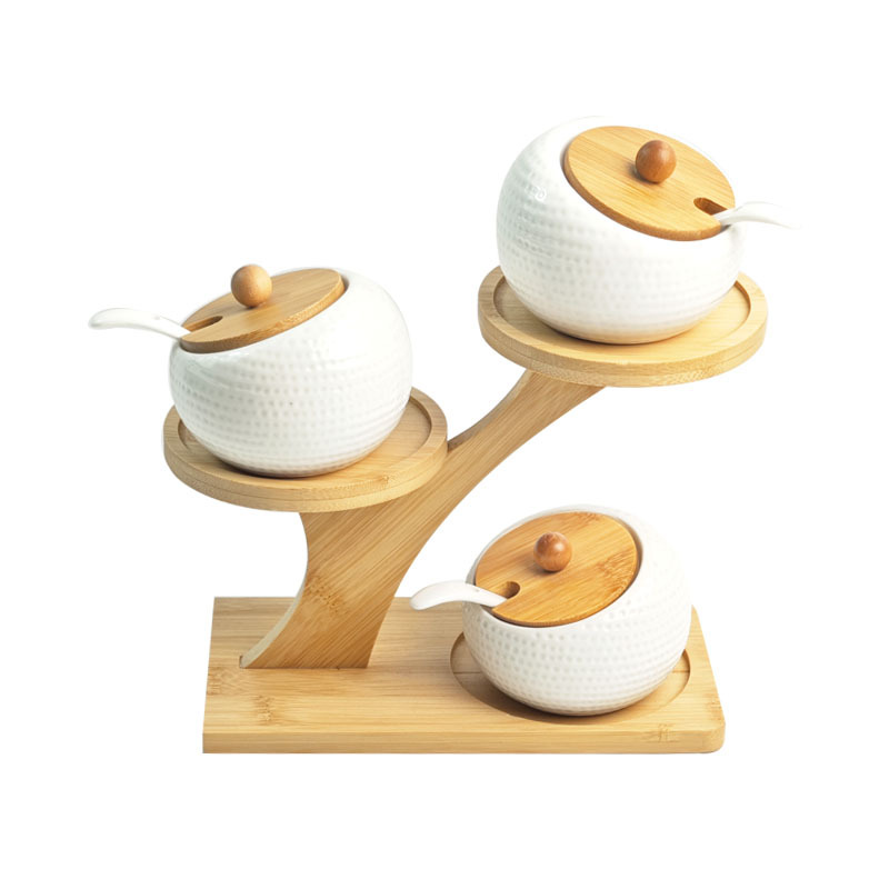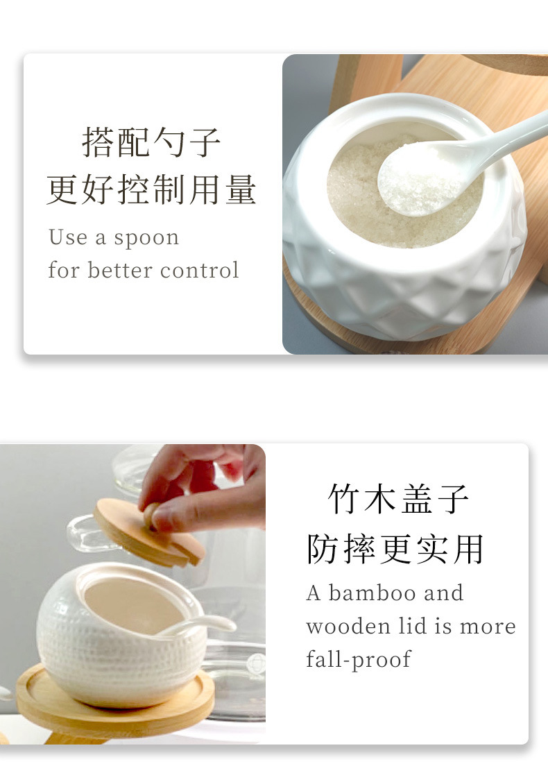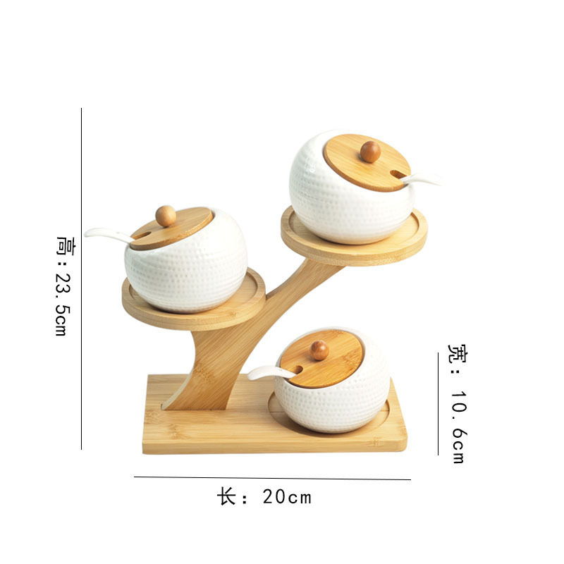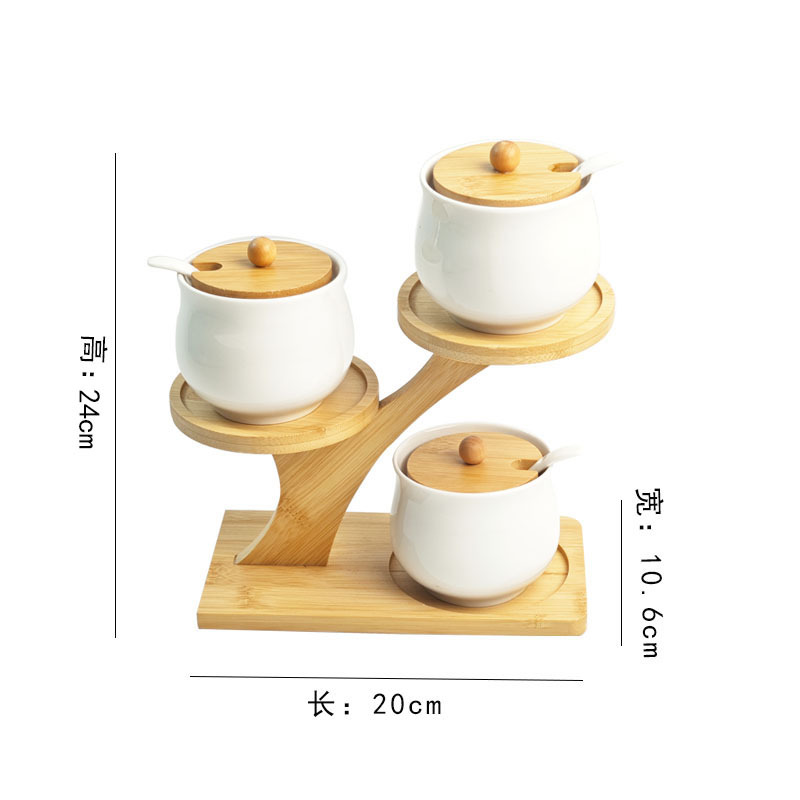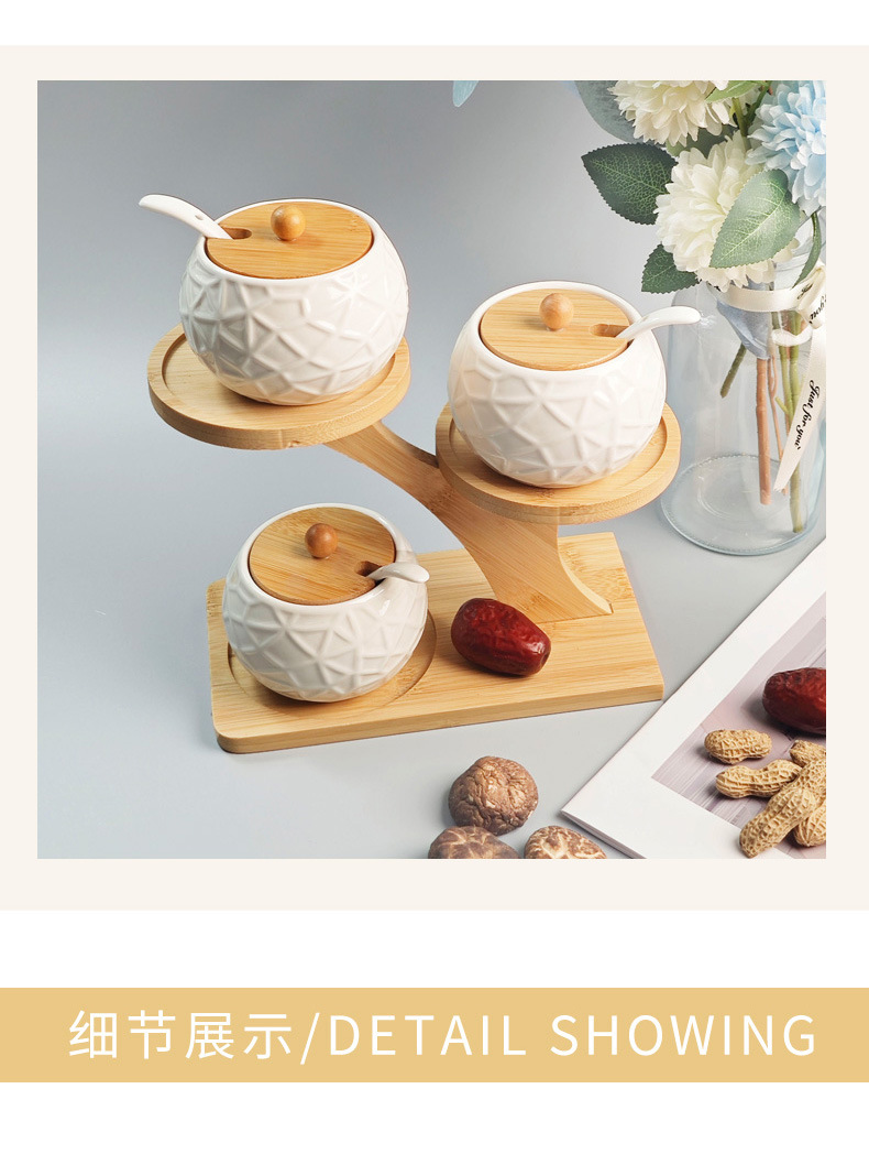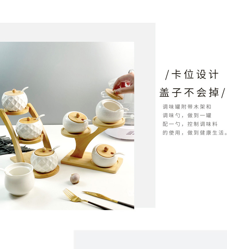 调料罐陶瓷调味罐厨房盐罐家用竹盖调料盒套装多层竹架调味盒礼品