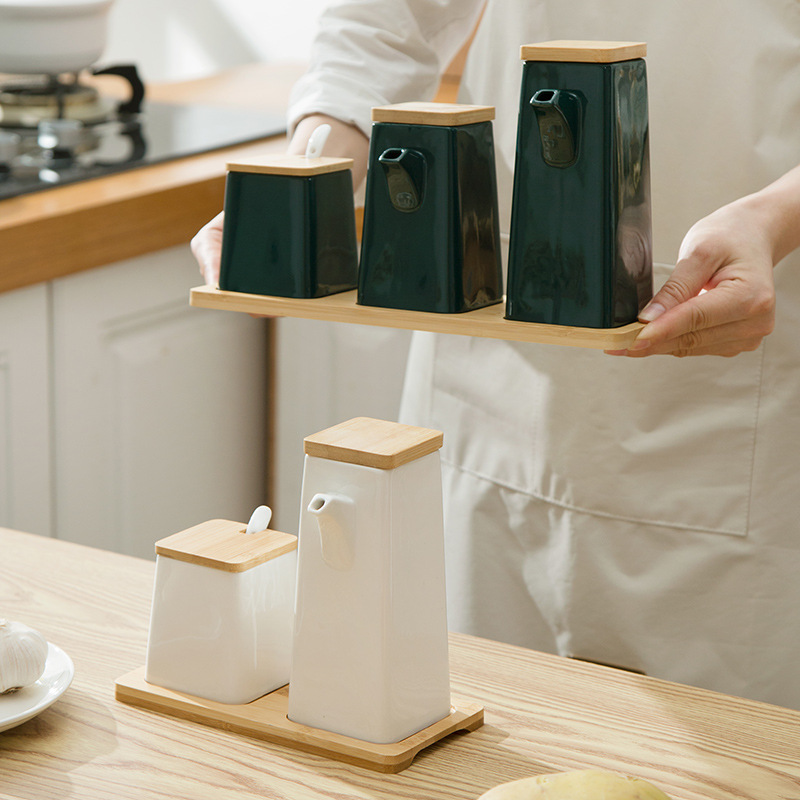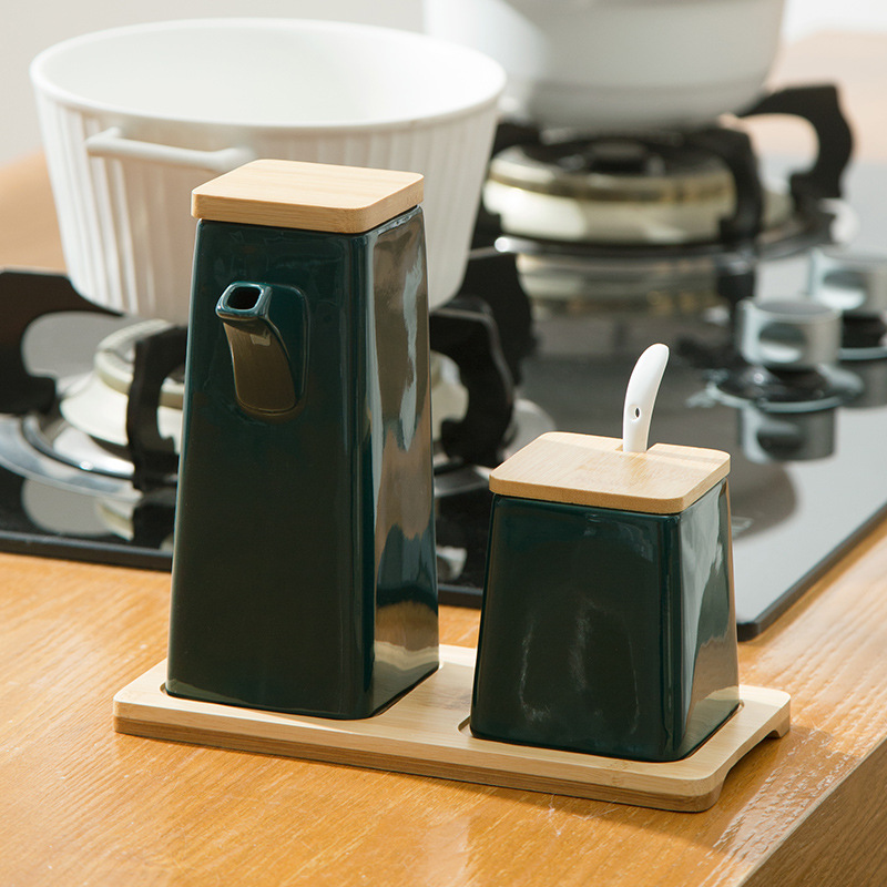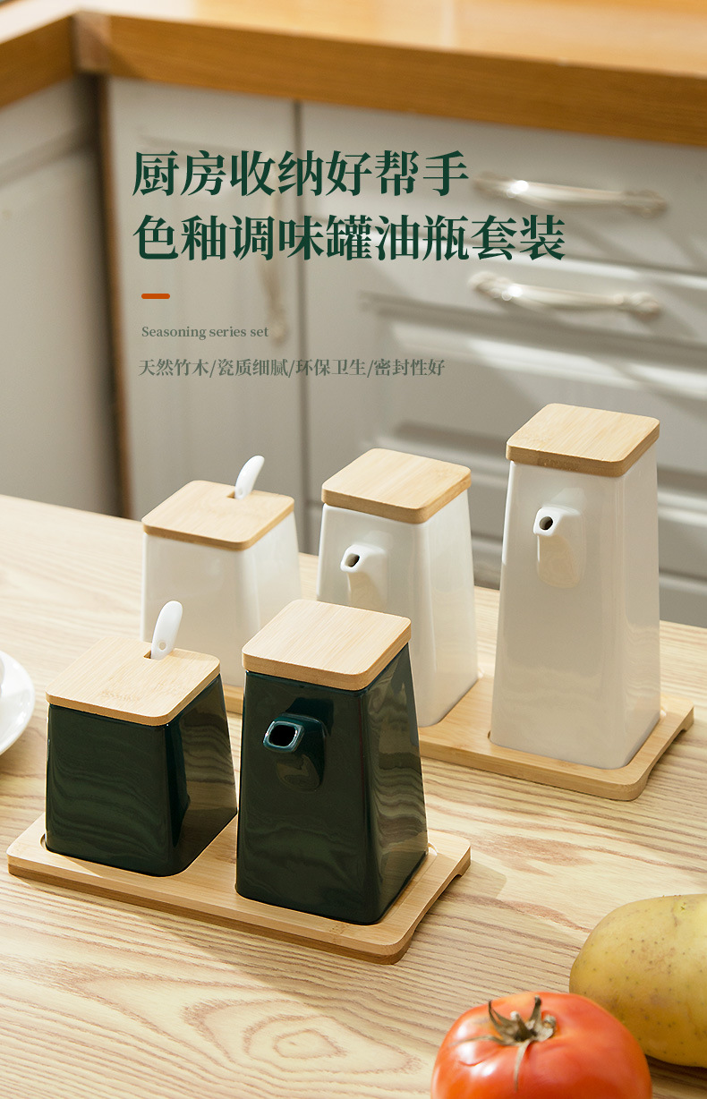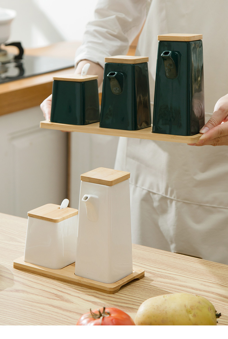 北欧陶瓷调料盒套装家用创意厨房调味盒餐厅面馆商用辣椒罐醋壶