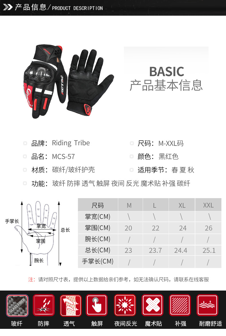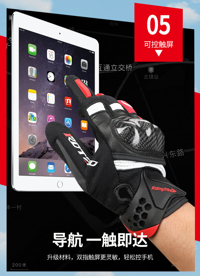 摩托车骑行手套夏季防摔触屏防摔透气机车户外手套骑士手套碳纤维