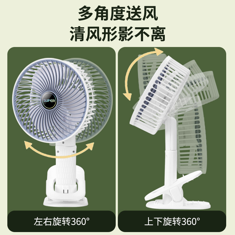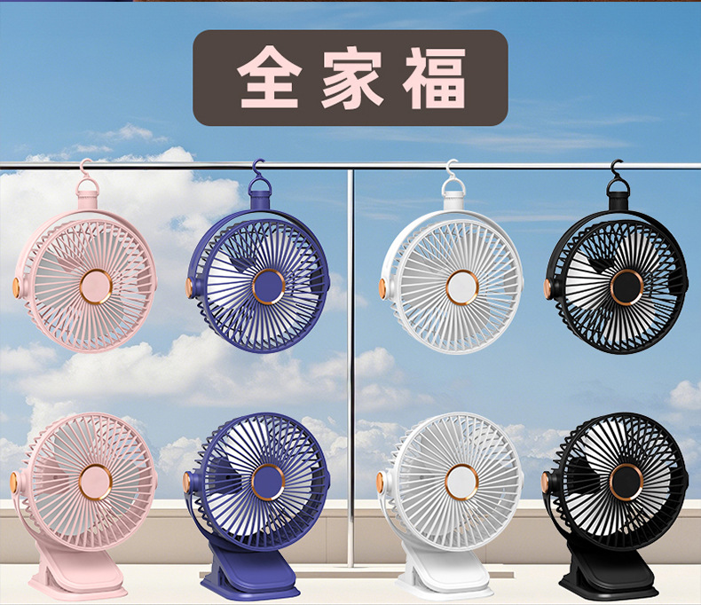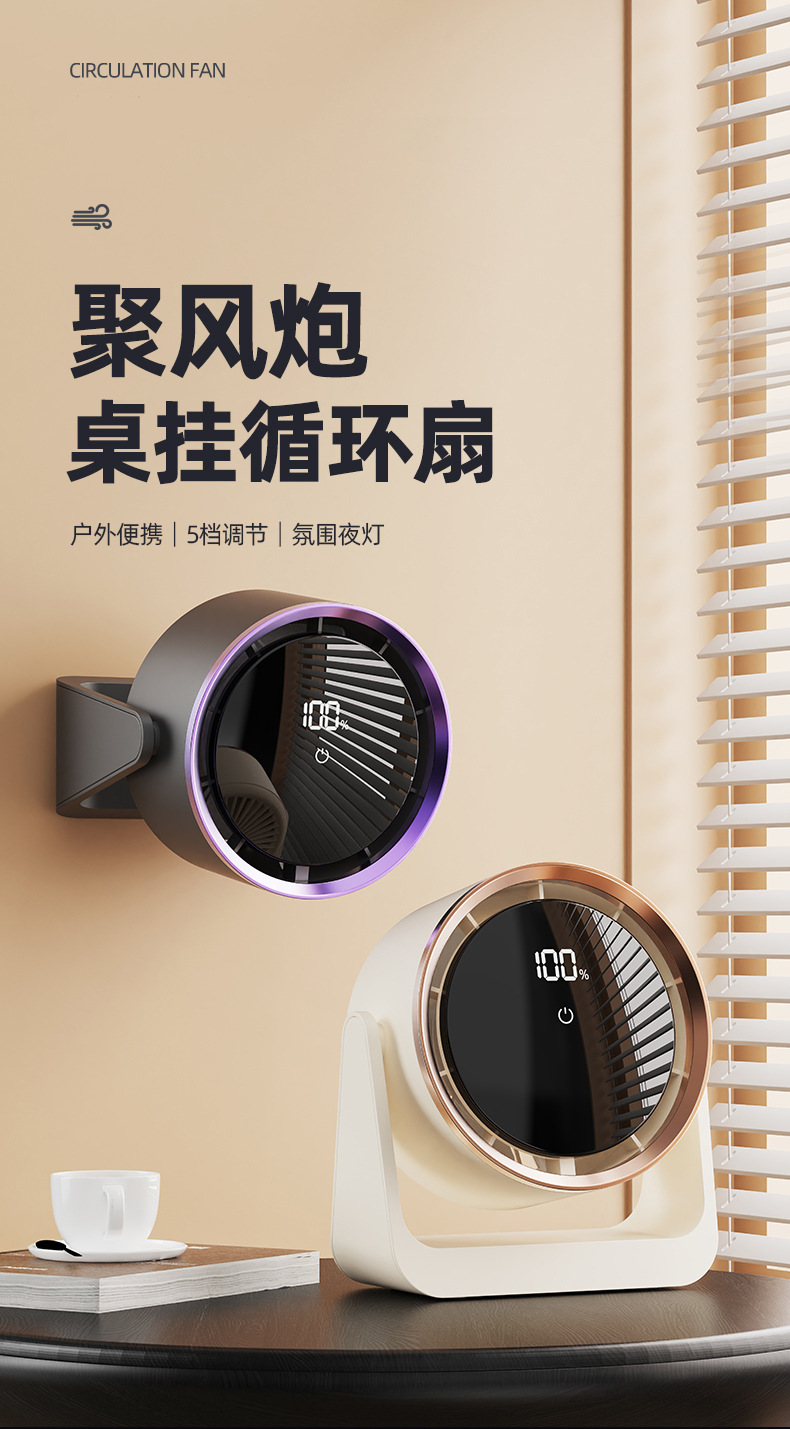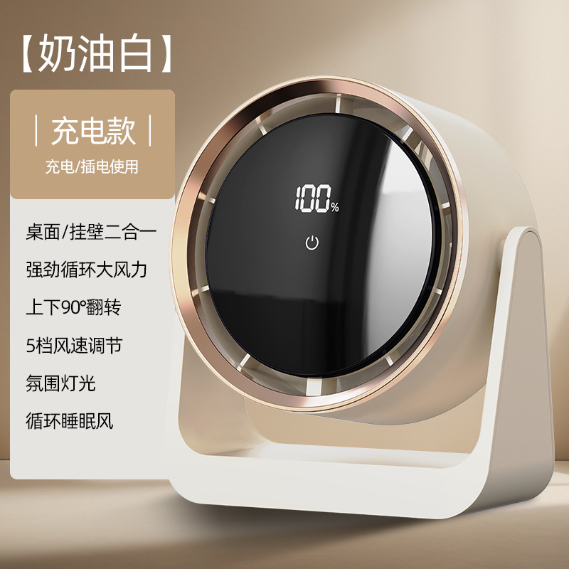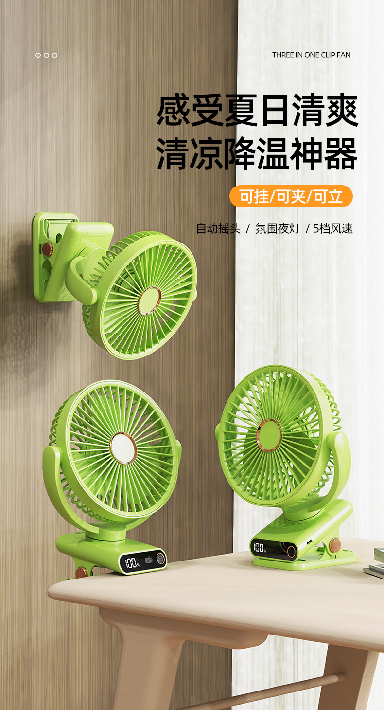 跨境桌面电风扇挂壁手持小风扇数显夜灯摇头循环扇多功能夹子风扇