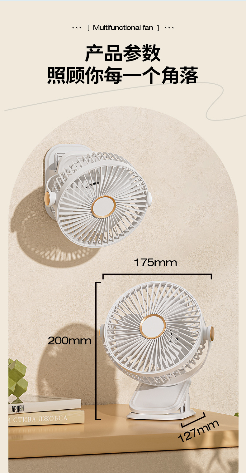 多功能夹子风扇usb充电灯光桌面挂壁电风扇学生宿舍床上夜灯跨境
