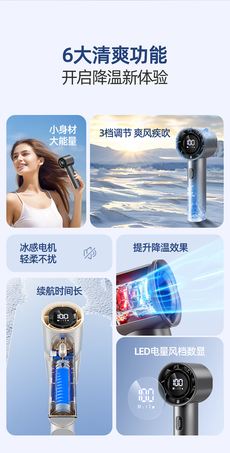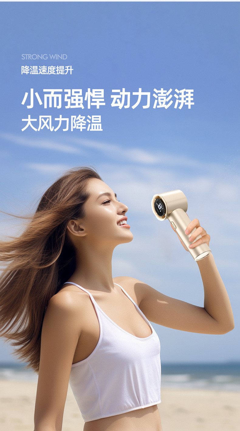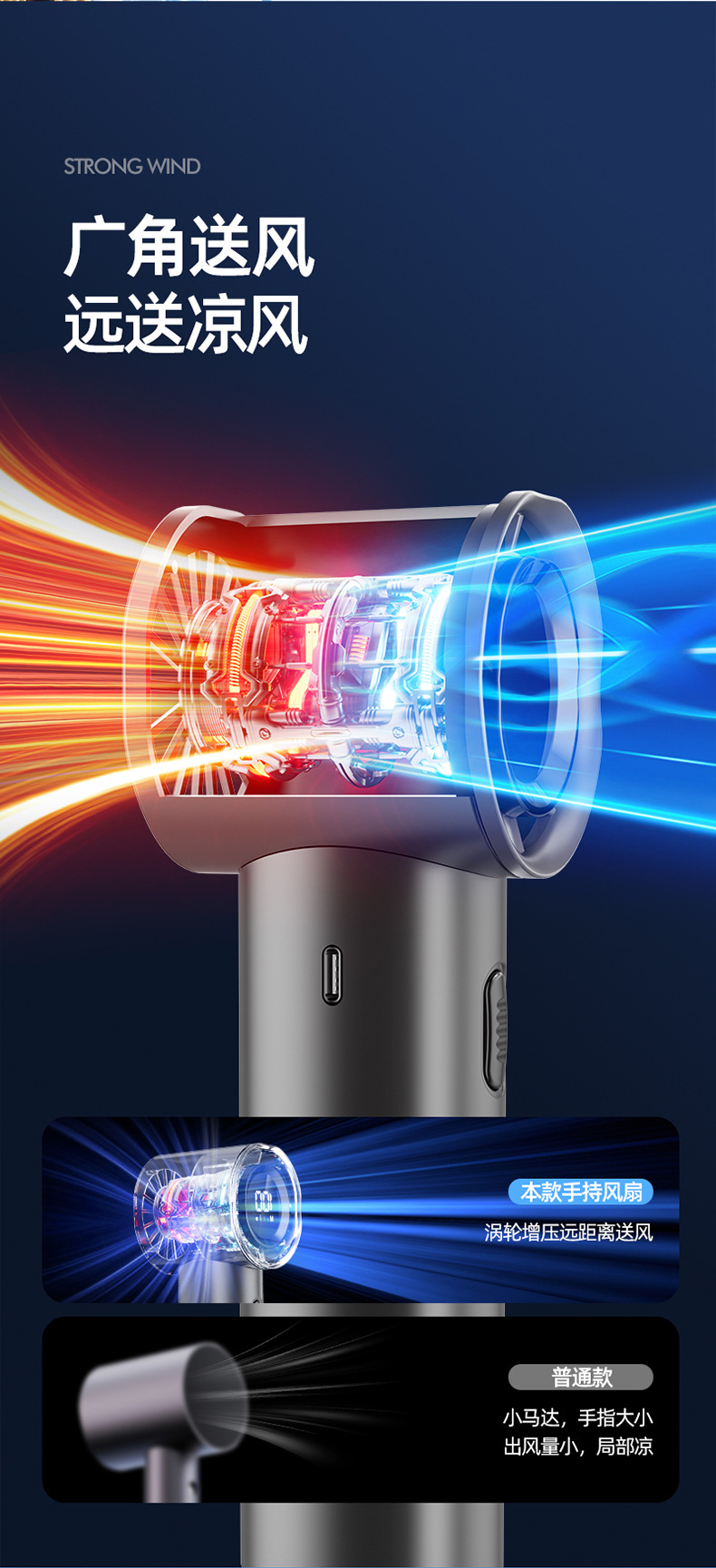 2024新款手持充电款制冷风扇小型桌面涡轮高转速迷你暴力风扇批发