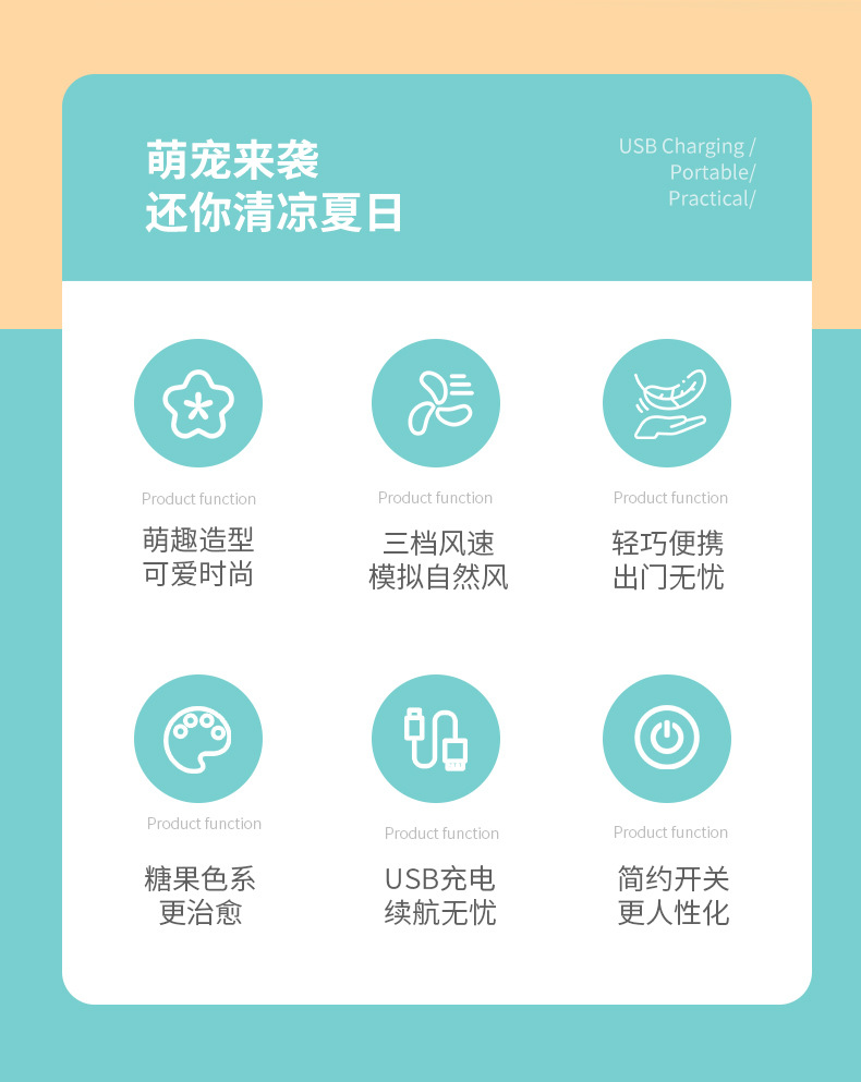 2025新款卡通USB充电手持迷你小风扇礼品户外便携风扇可印制logo