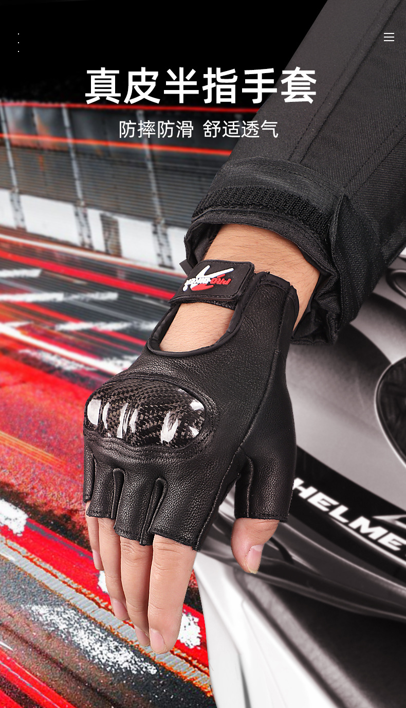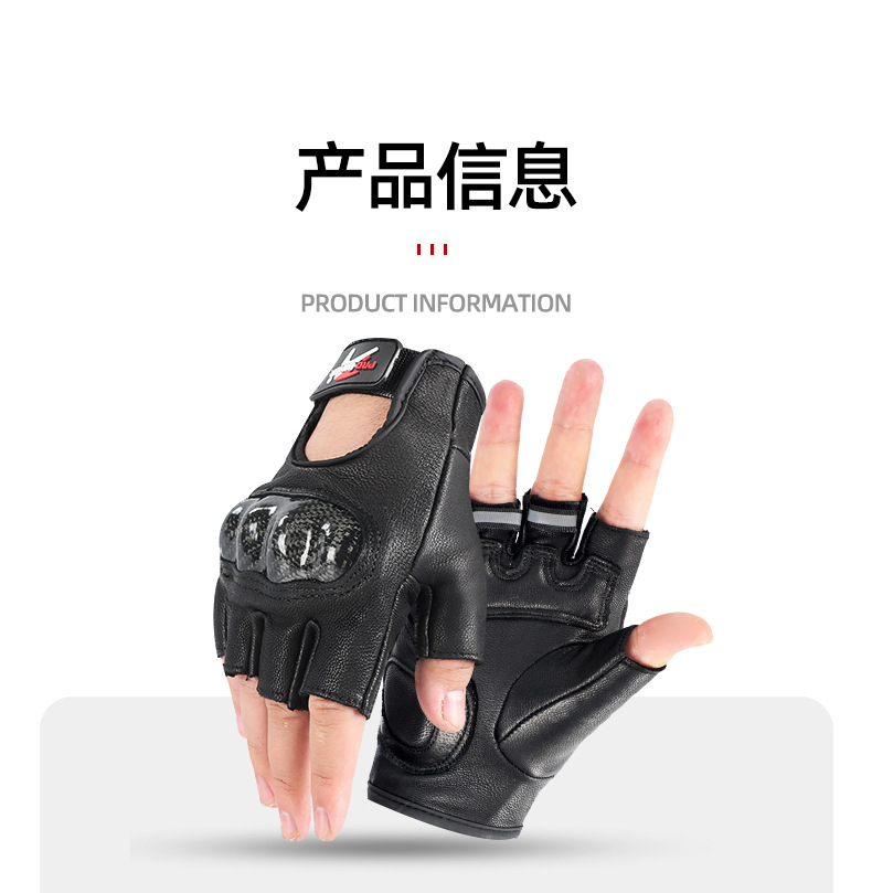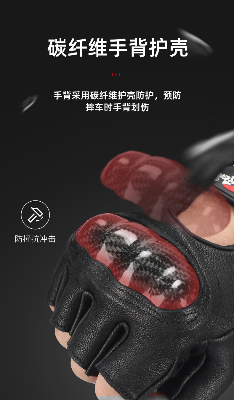 骑行手套真皮碳纤半指防摔男女四季透气夏季机车赛车防滑露指手套