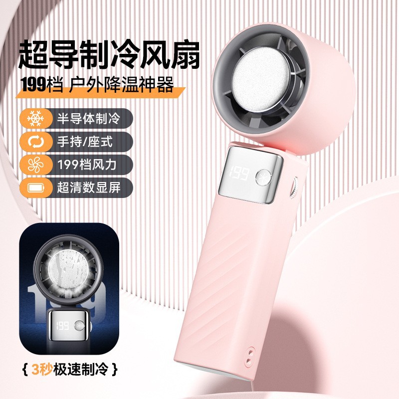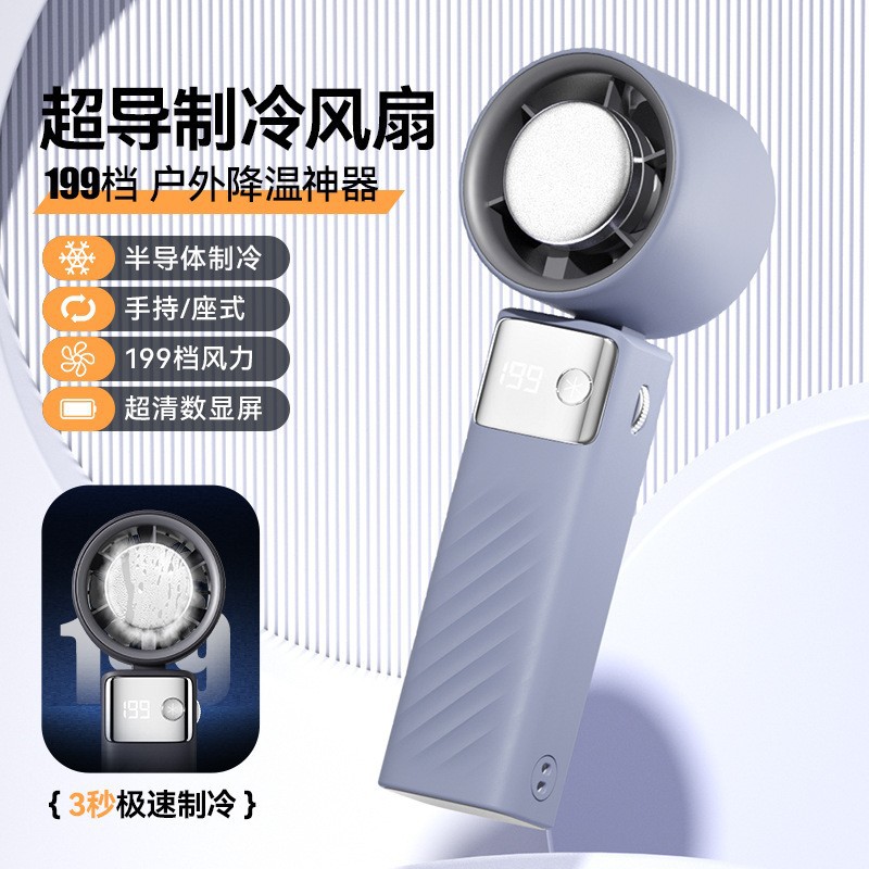 新款制冷高速手持风扇usb便携可充电户外折叠冰敷小风扇跨境批发