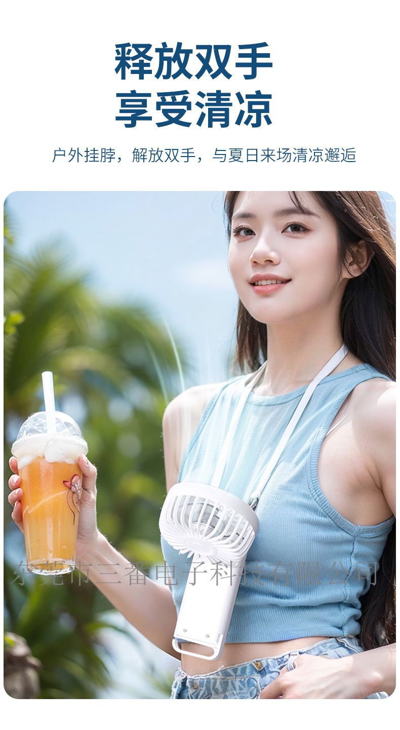 跨境新款手持风扇 usb充电折叠小风扇便携迷你挂脖风扇礼品logo