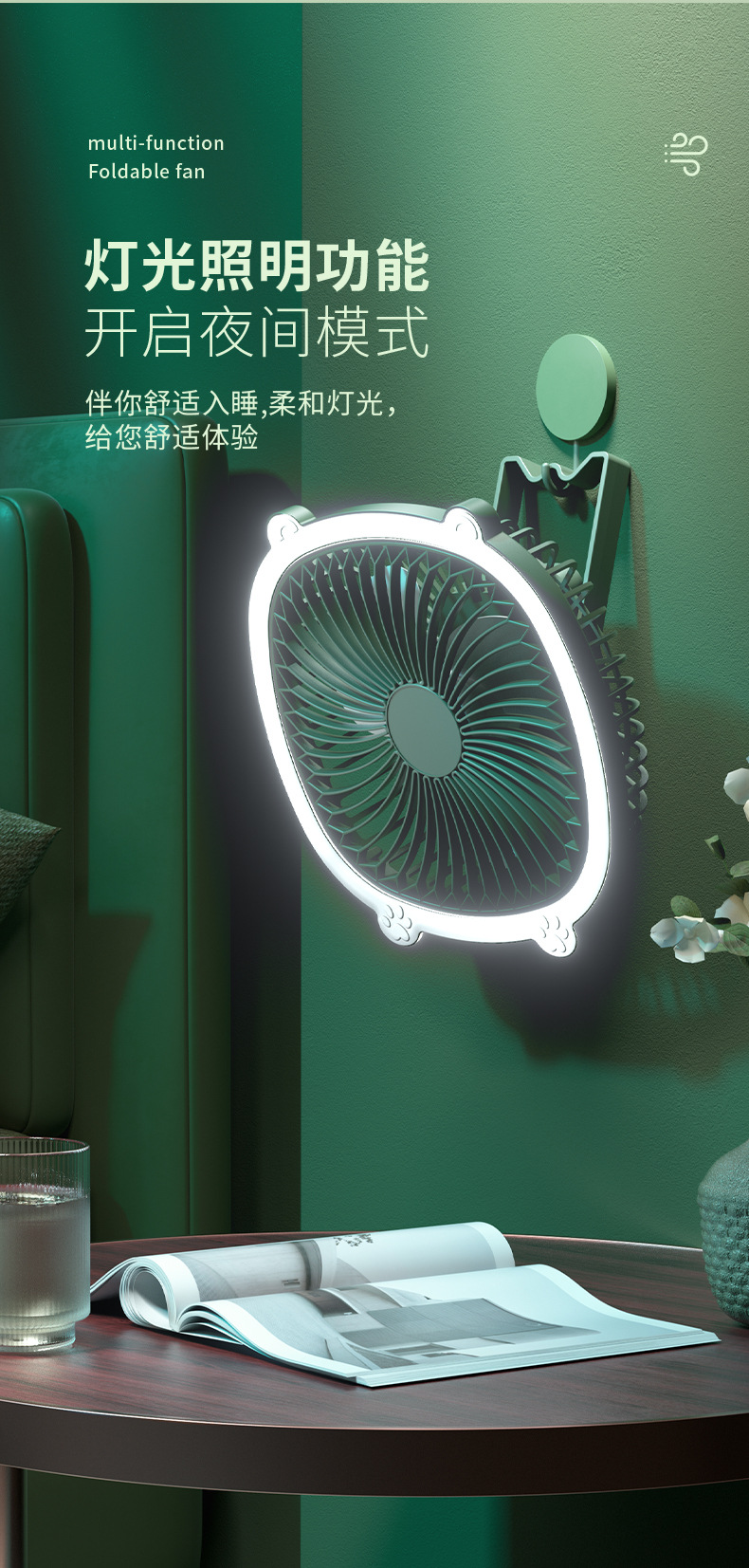 USB充电灯光风扇桌面台式家用小型电风扇宿舍便携多功能壁挂吊扇