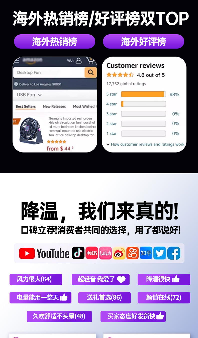 桌面小风扇大风力超静音家用循环扇电风扇小型办公室桌面风扇可挂