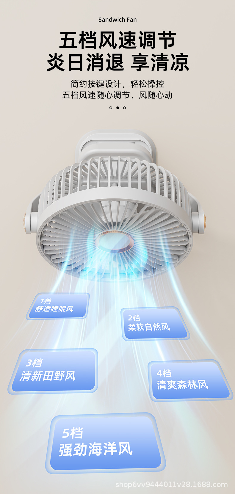 夹子风扇桌面挂壁扇宿舍台夹式风扇带灯大风力usb充电款跨境风扇