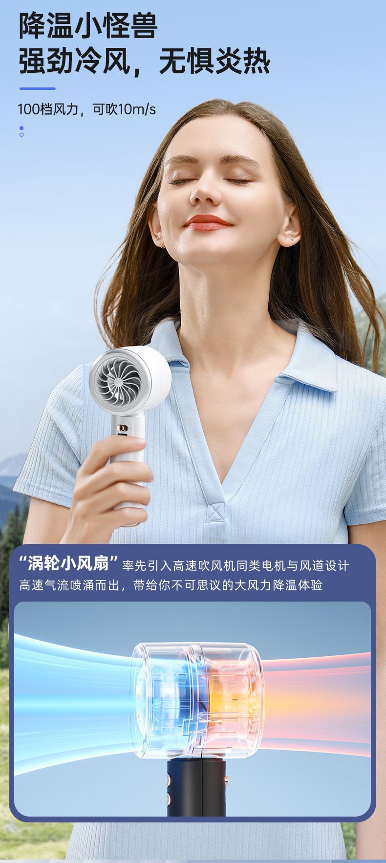 新款N68数显100档高速手持风扇usb迷你便携式充电涡轮小风扇桌面