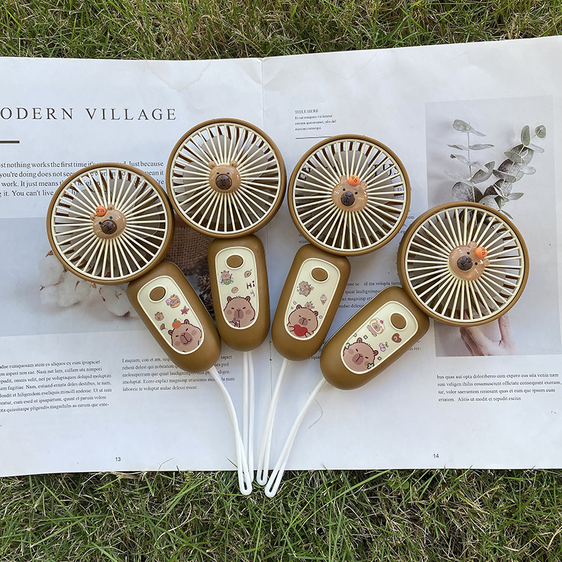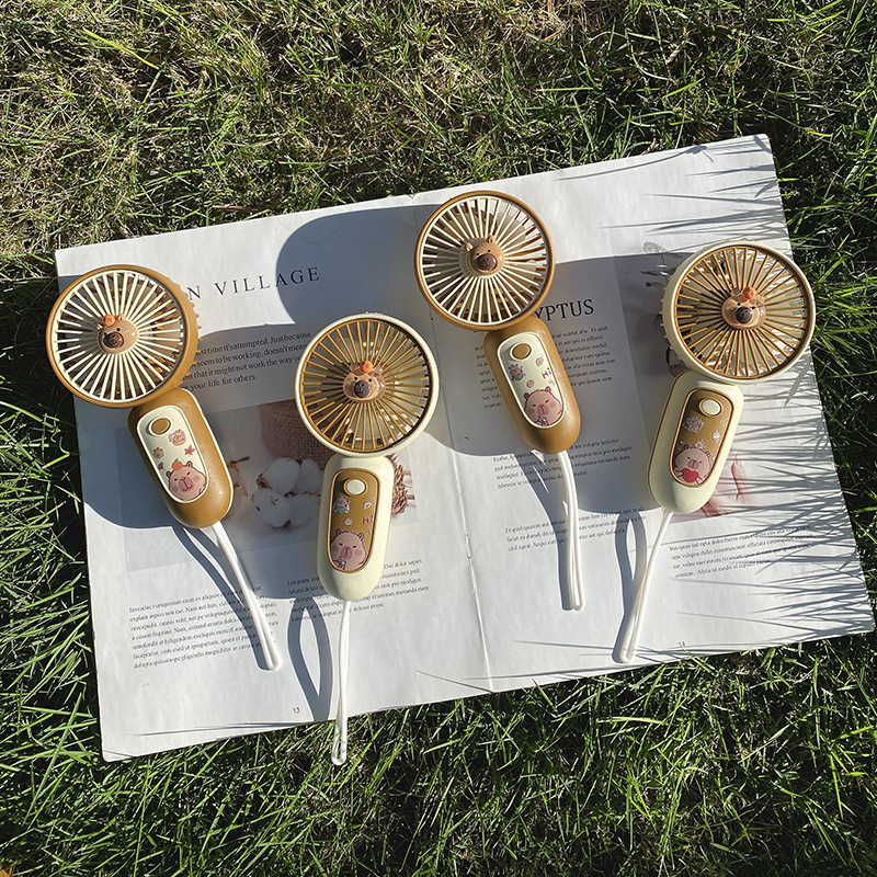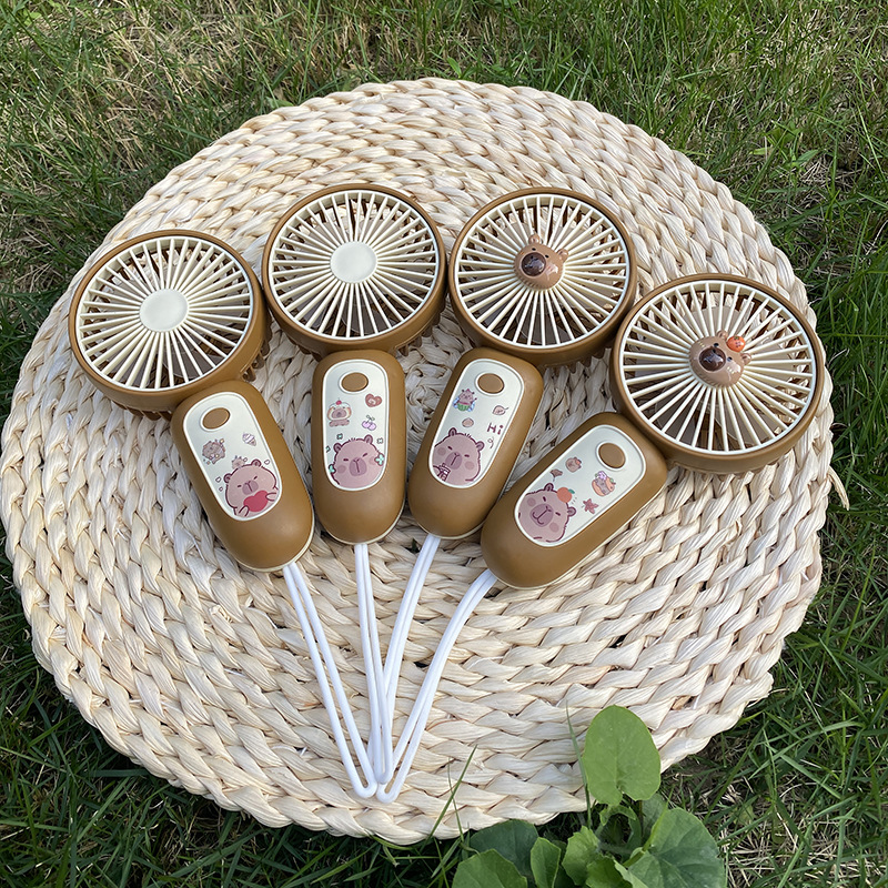 跨境充电款迷你风扇卡通水豚户外带挂绳小巧便携usb手持小风扇