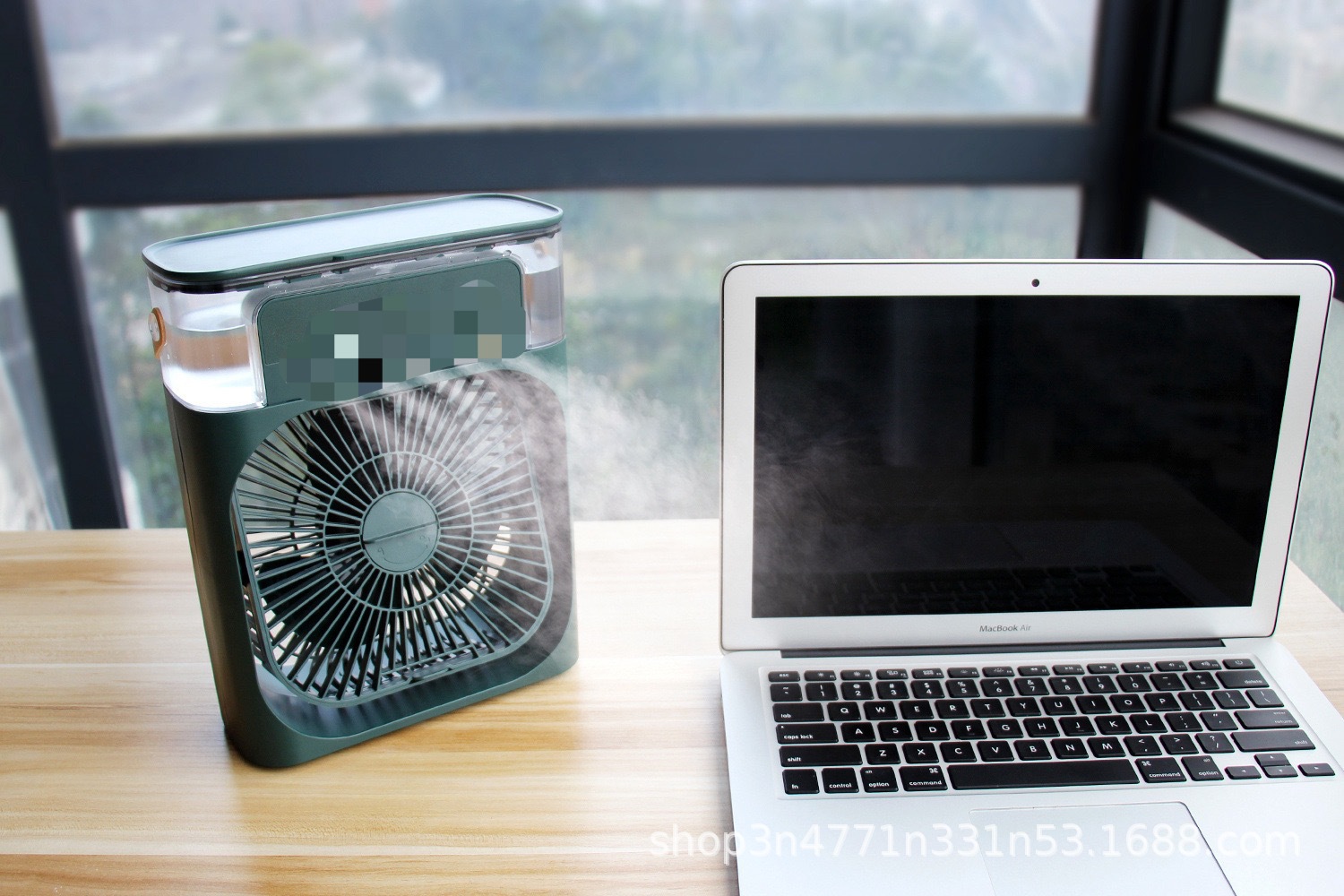 跨境新款五孔加湿喷雾风扇迷你五孔七色夜灯冷风机外贸现货