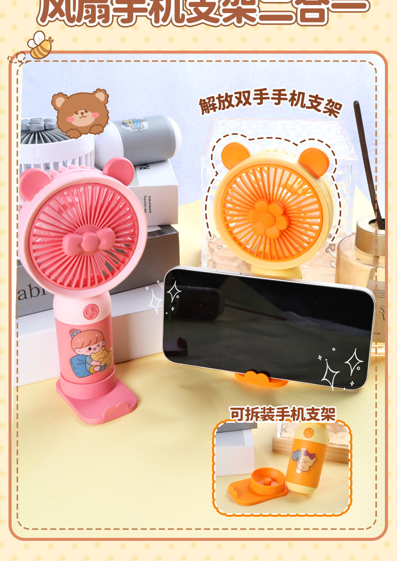 25新款多功能手持USB充电风扇手机支架包包挂件便携口袋diy风扇
