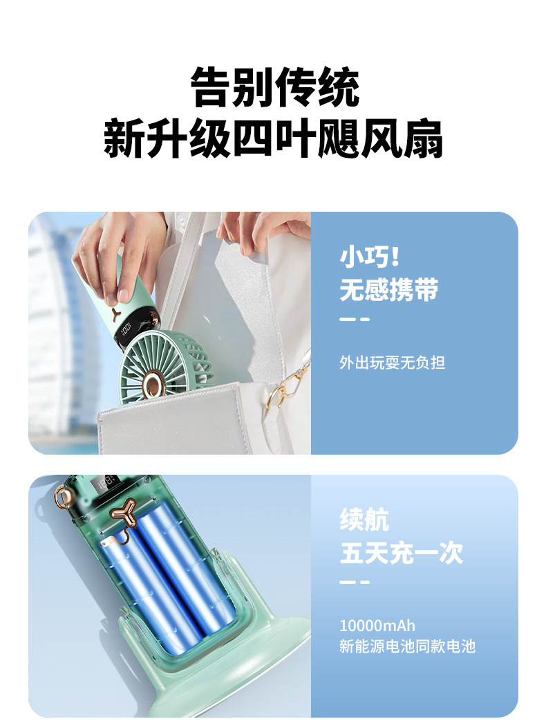 新款户外手持便携小风扇宿舍用充插两用壁挂风扇寝室折叠风扇定制