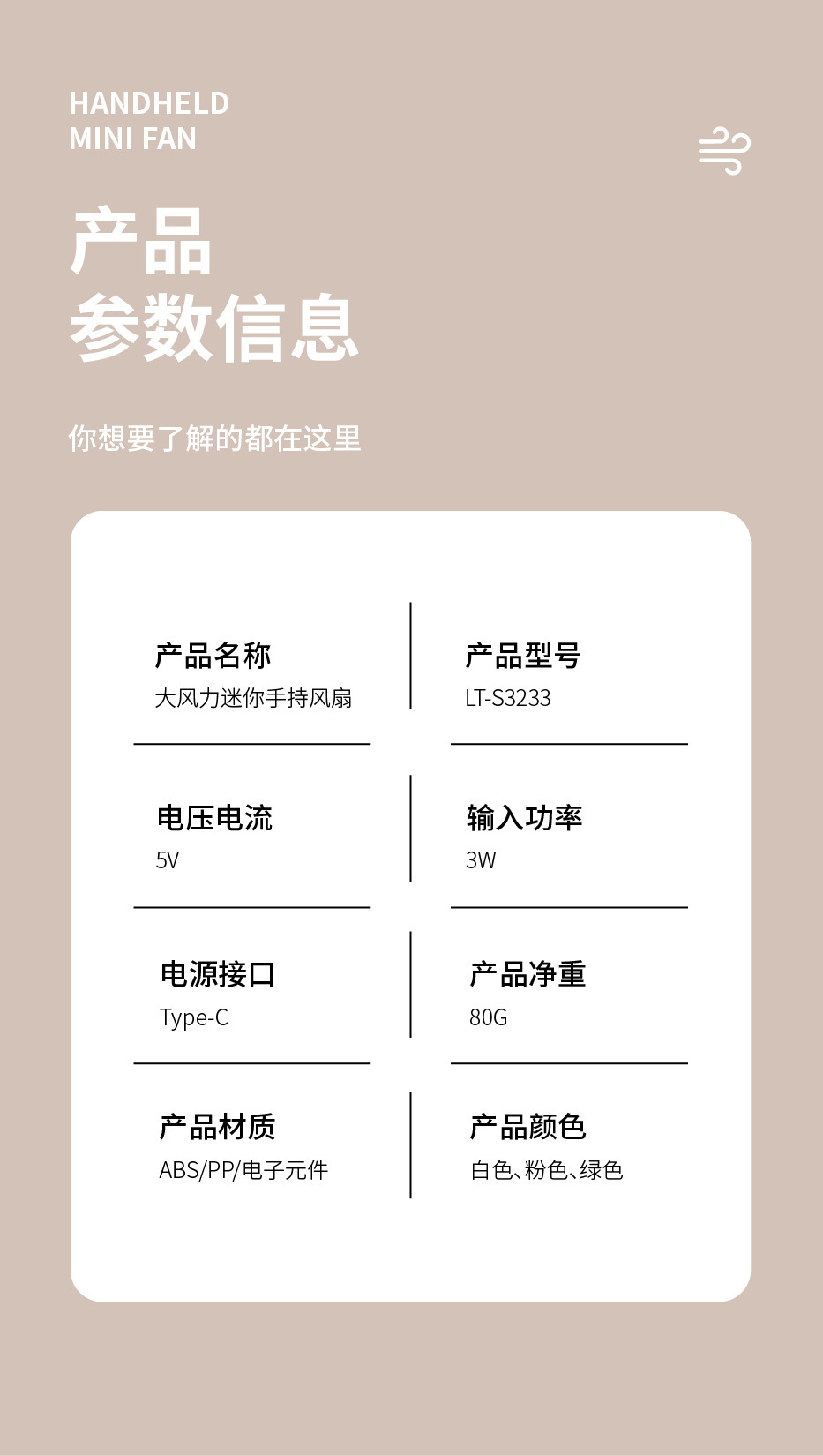 【1200mAh】25年新款三档调速迷你小风扇 usb长续航高速手持风扇