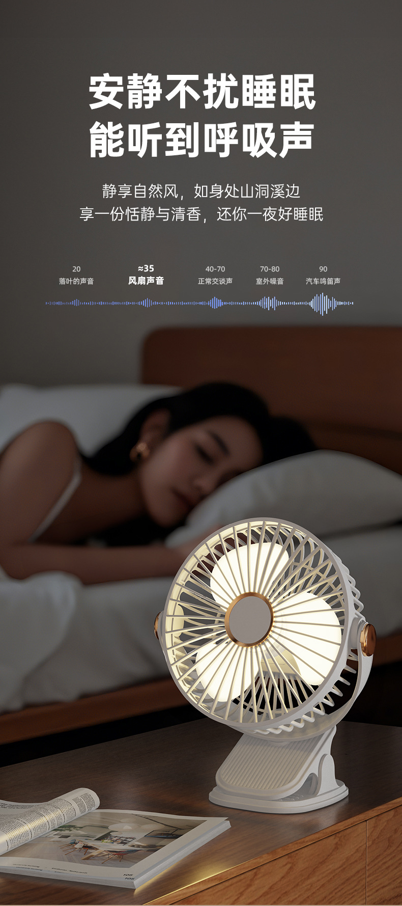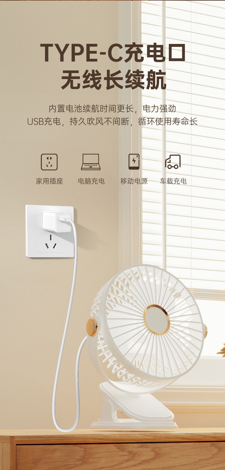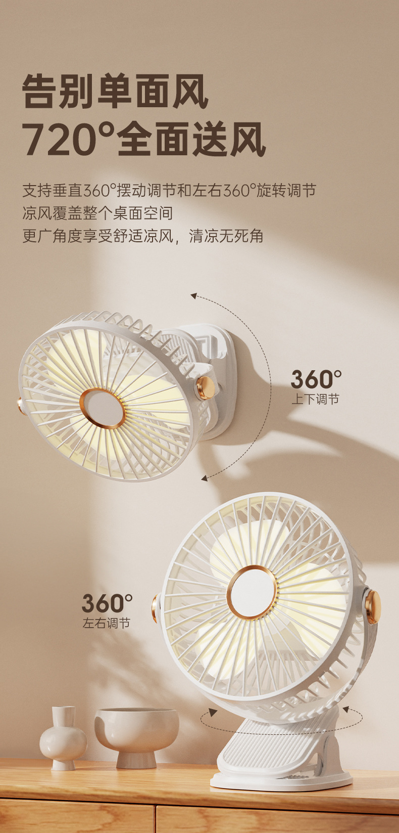 桌面循环风扇多功能夹子风扇挂壁宿舍卧室户外氛围灯便携USB风扇
