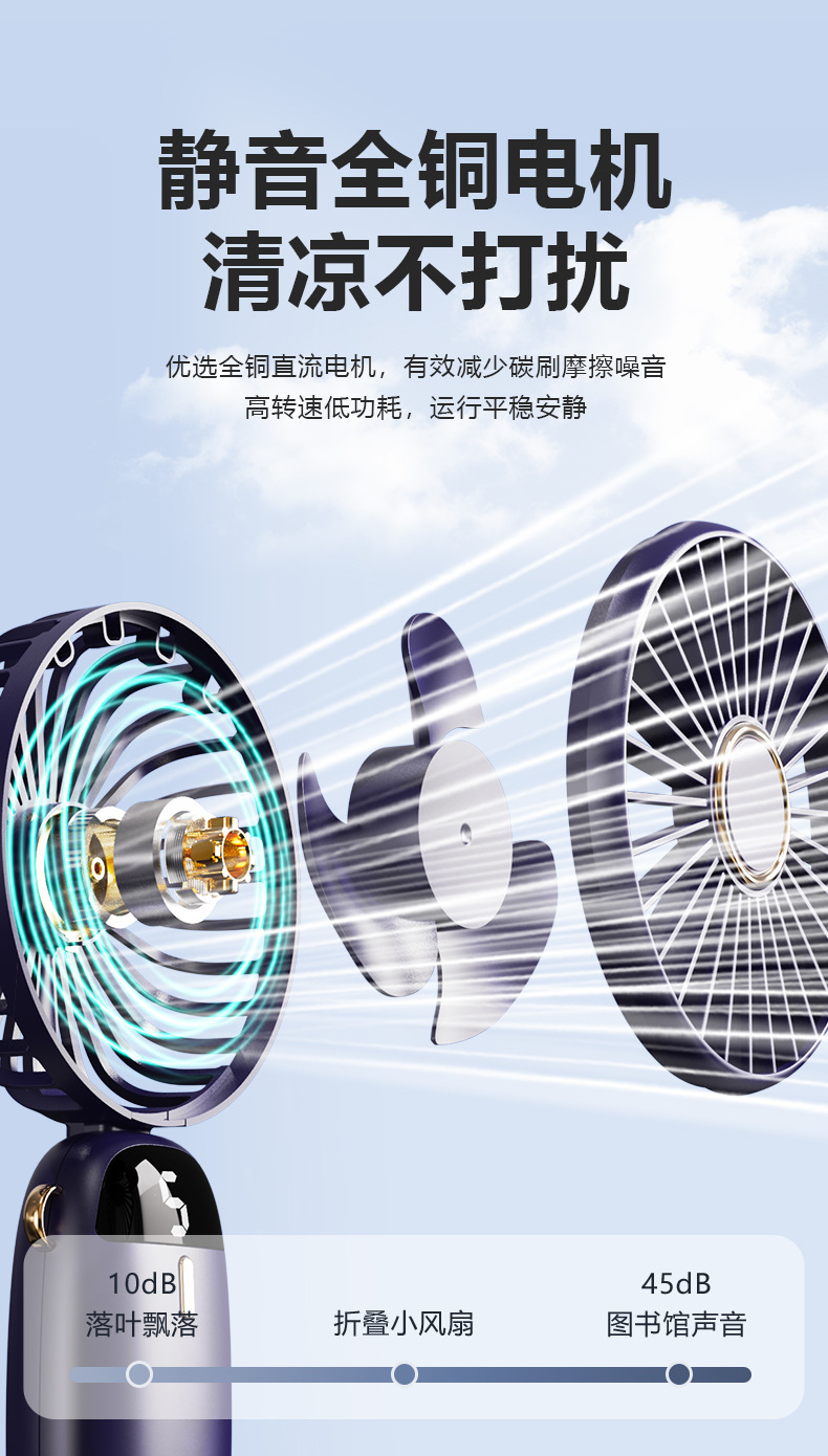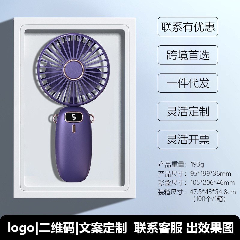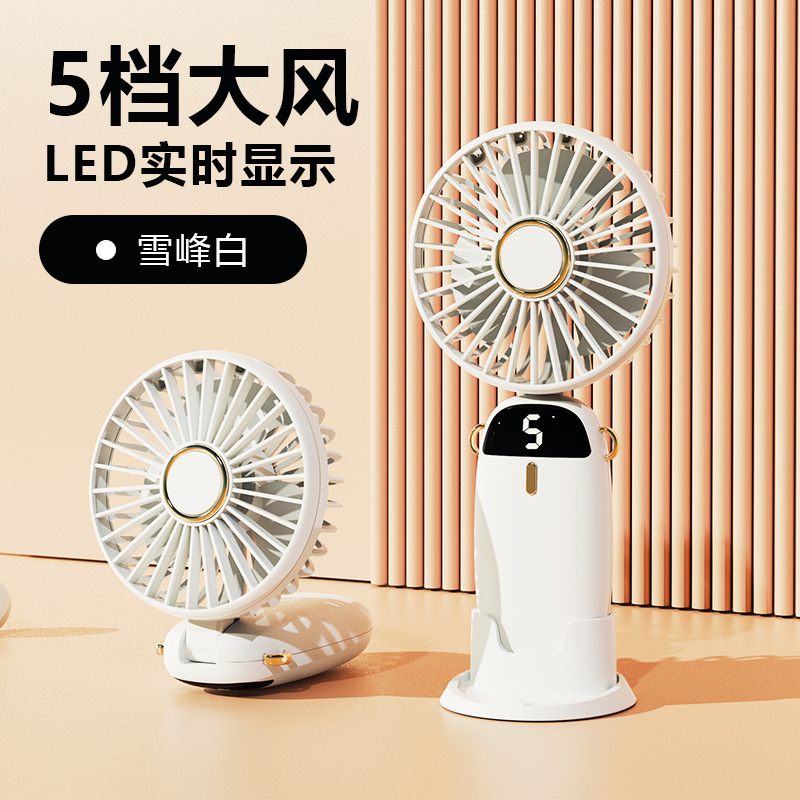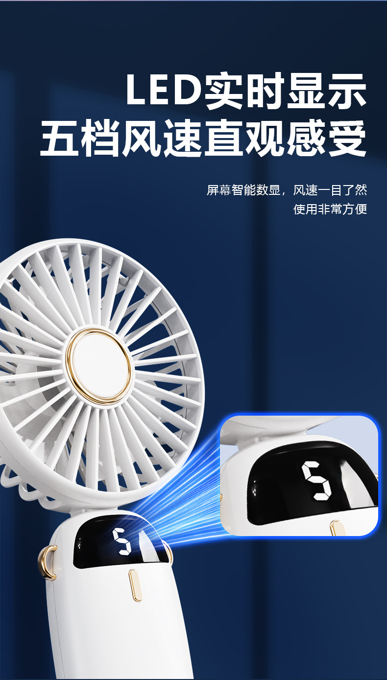 新款usb手持风扇迷你便携折叠小风扇数显挂脖风扇桌面办公室户外