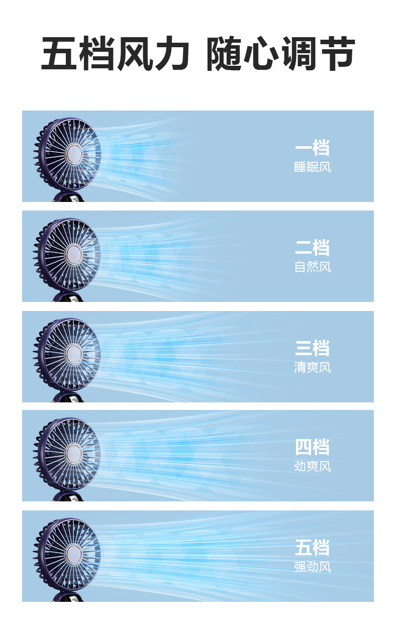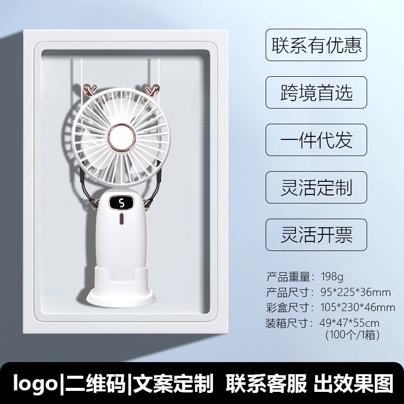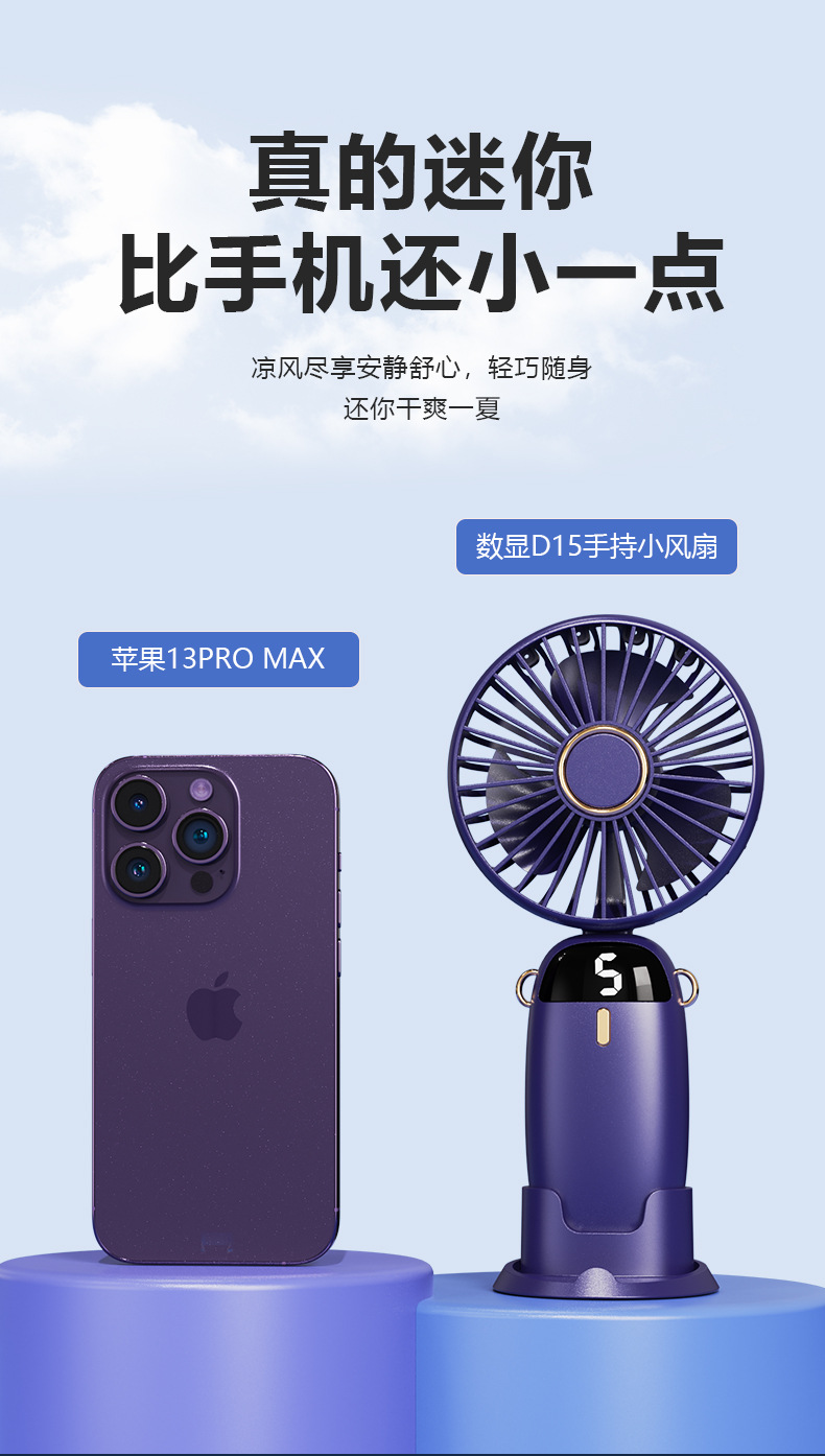 新款usb手持风扇迷你便携折叠小风扇数显挂脖风扇桌面办公室户外