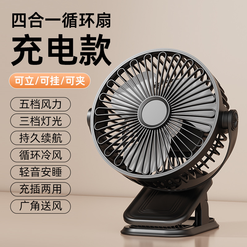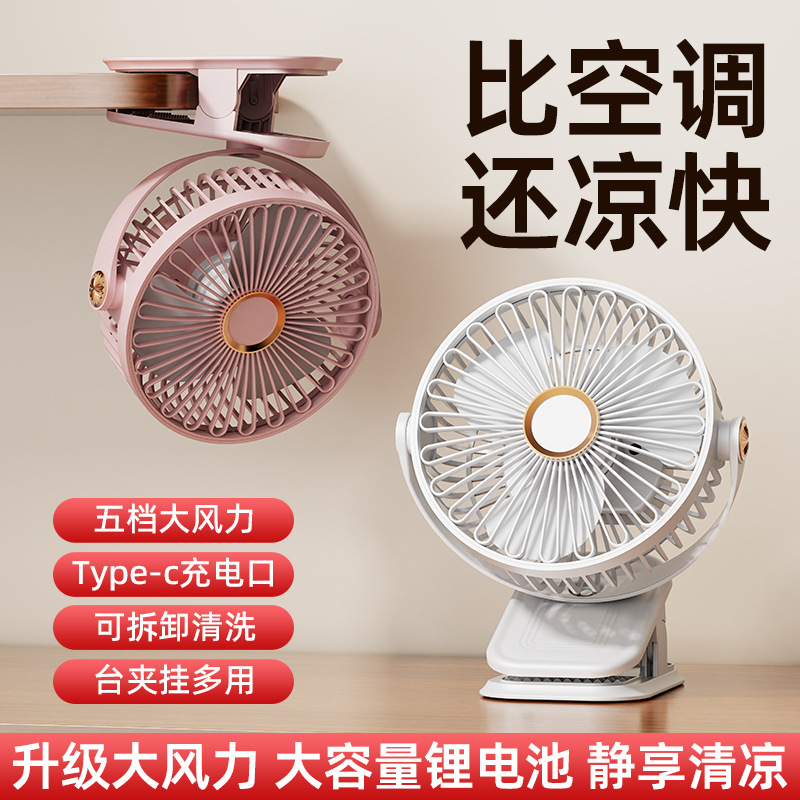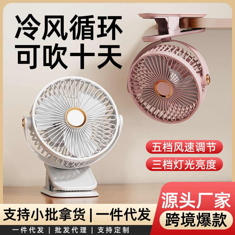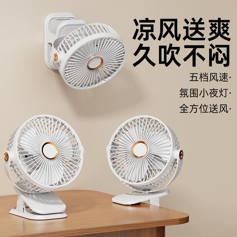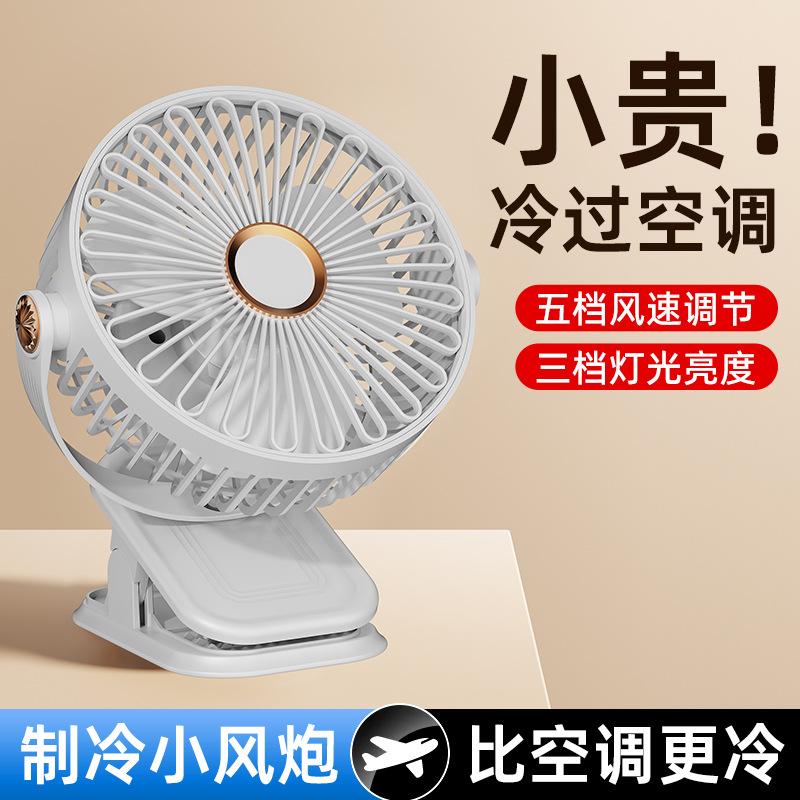 夹式迷你风扇夹子风扇夜灯夹扇办公室桌面usb充电夹子灯光风扇