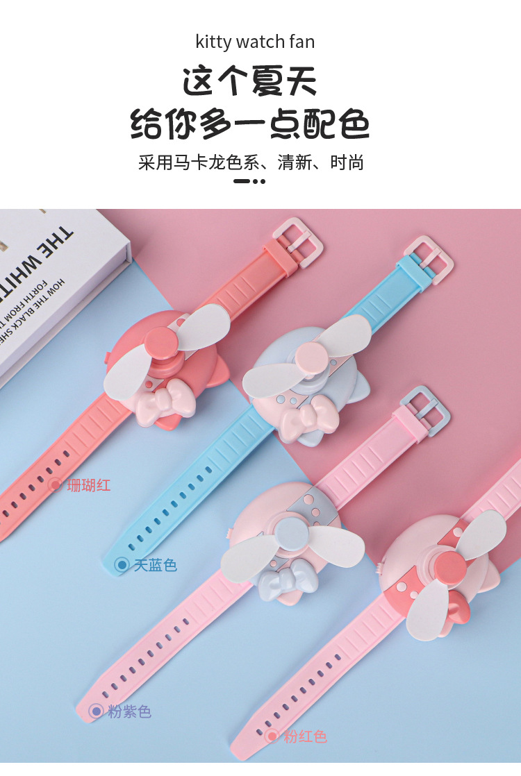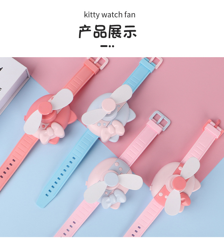 新款KT猫手表小风扇 卡通儿童USB充电随身便携可爱迷你风扇礼品