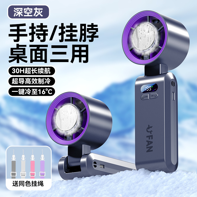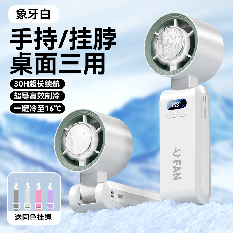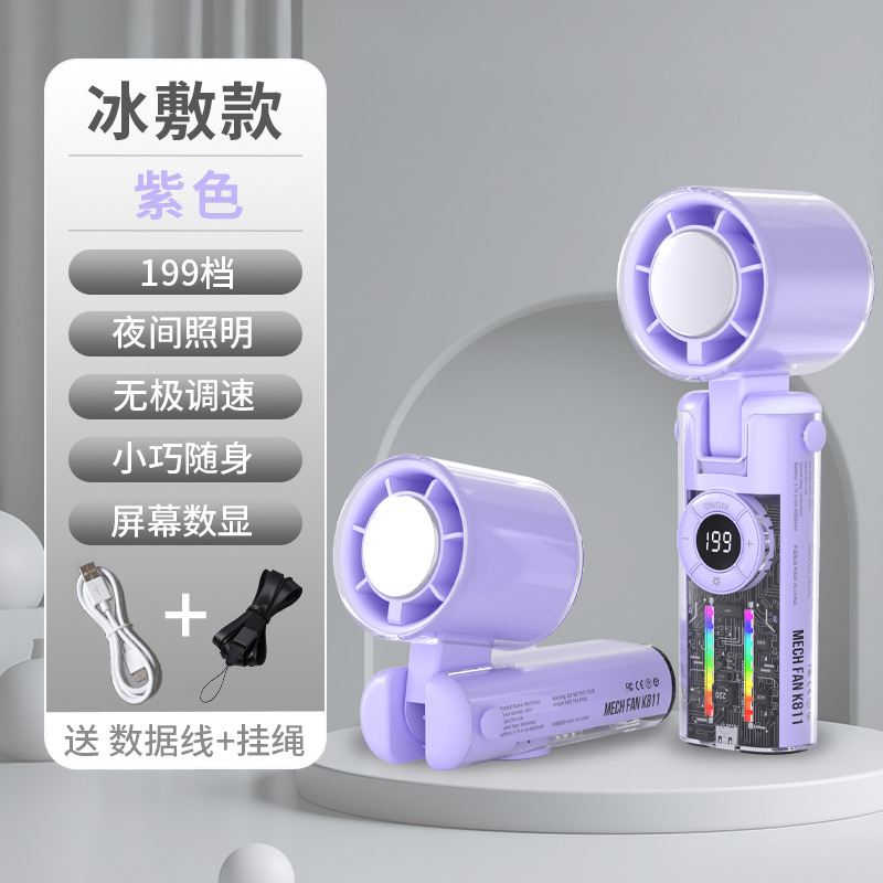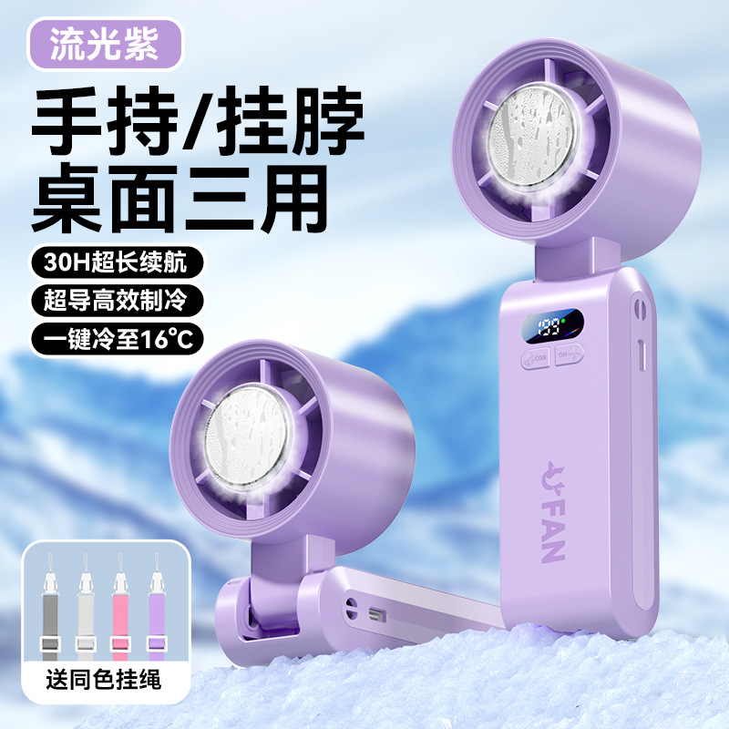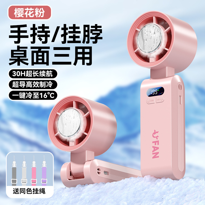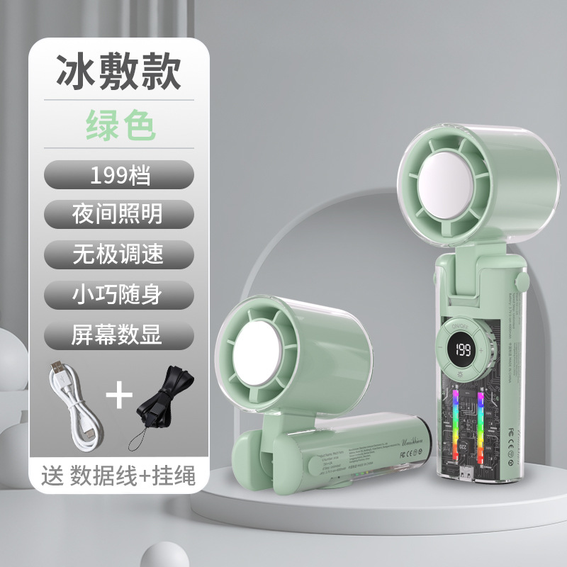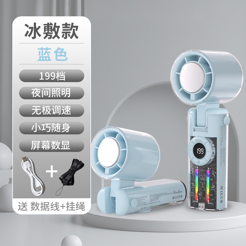 新款挂脖风扇懒人无叶风扇挂腰 usb大风力电量显示挂脖小风扇跨境