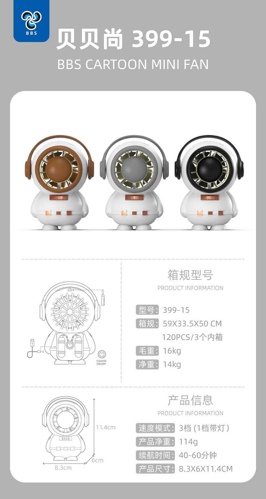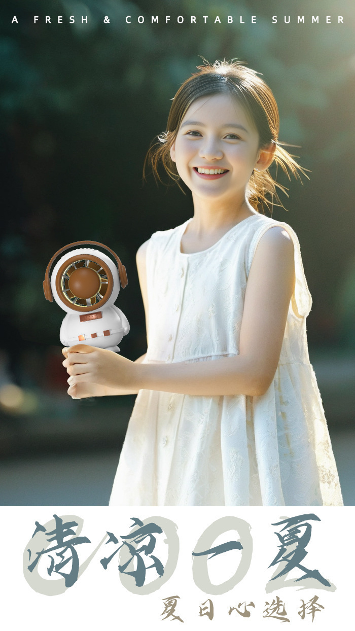 太空人风扇卡通学生迷你手持小风扇宇航员usb手持小风扇三档灯光