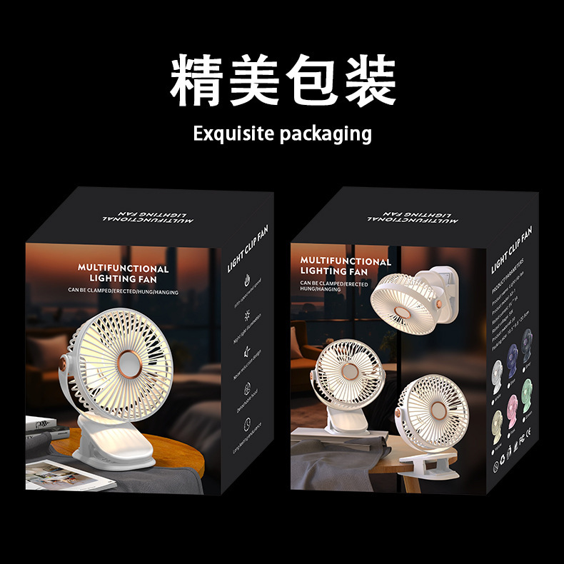 新款夹子风扇USB灯光桌面风扇家用电风扇便携大风力循环风扇跨境