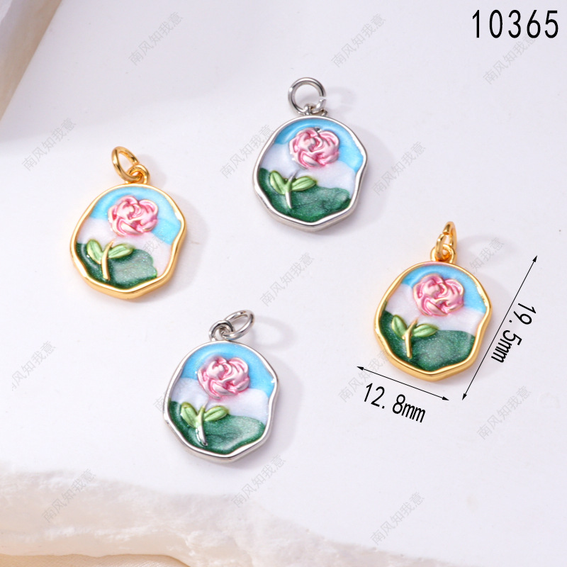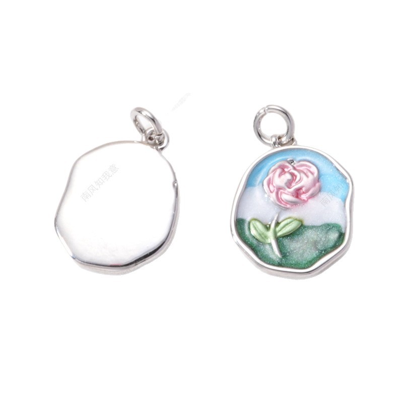 珍珠项链吊坠莫奈花园油画精工滴油玫瑰花油画风diy配件吊坠