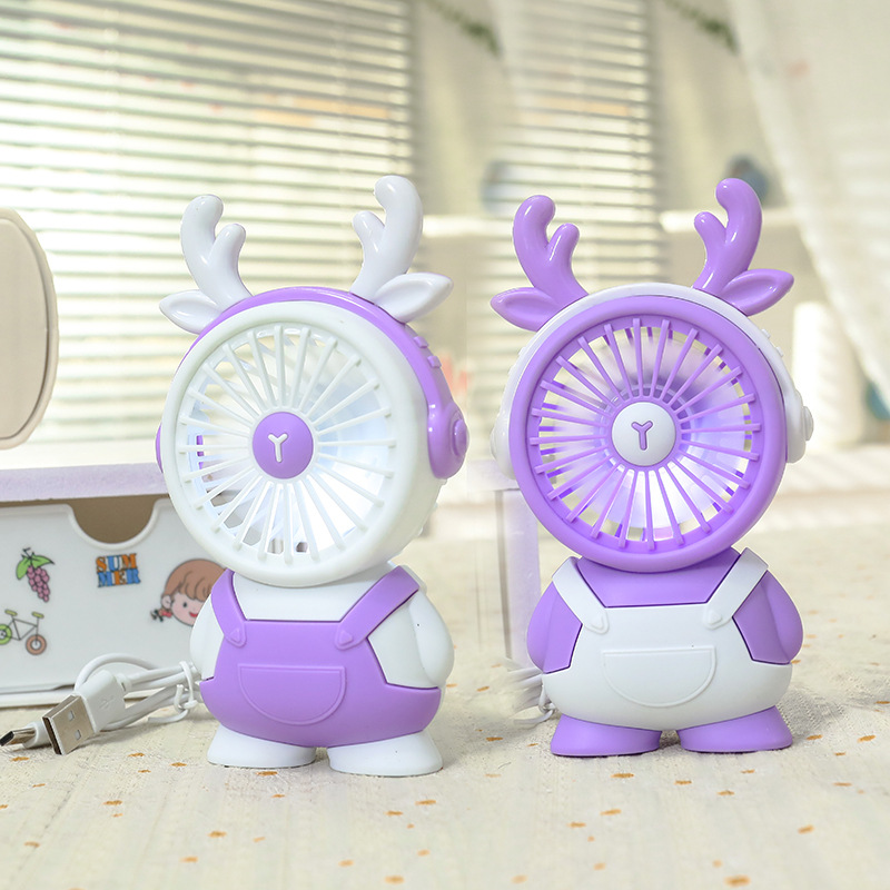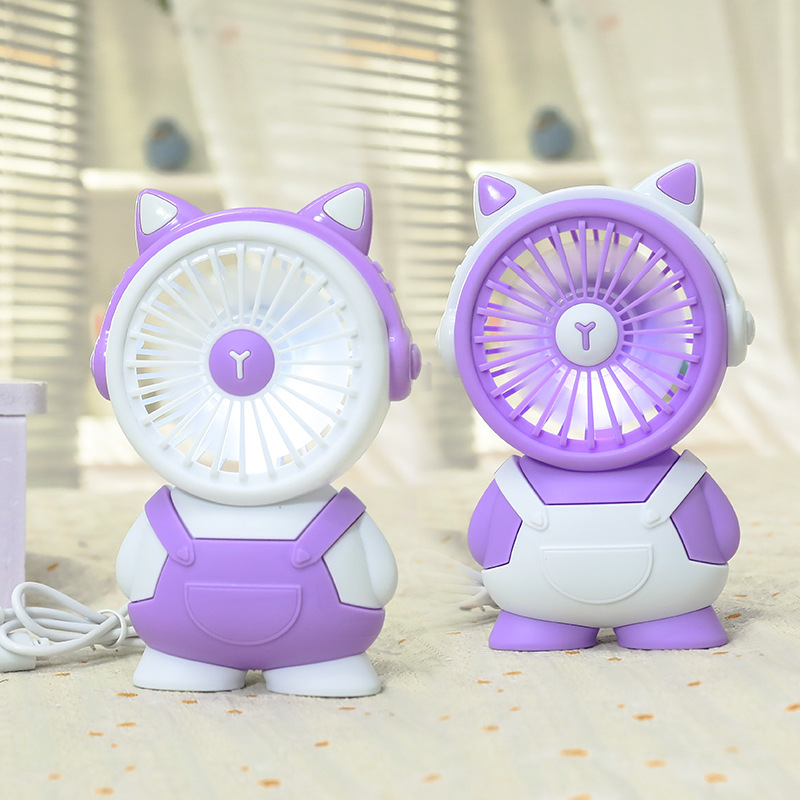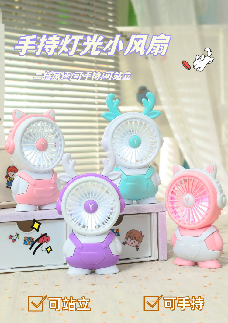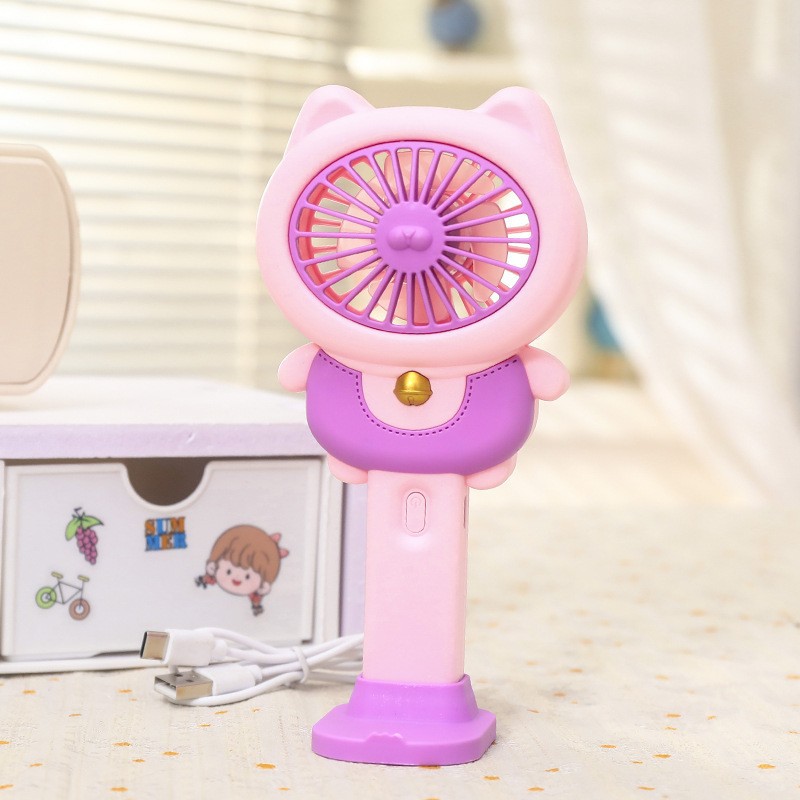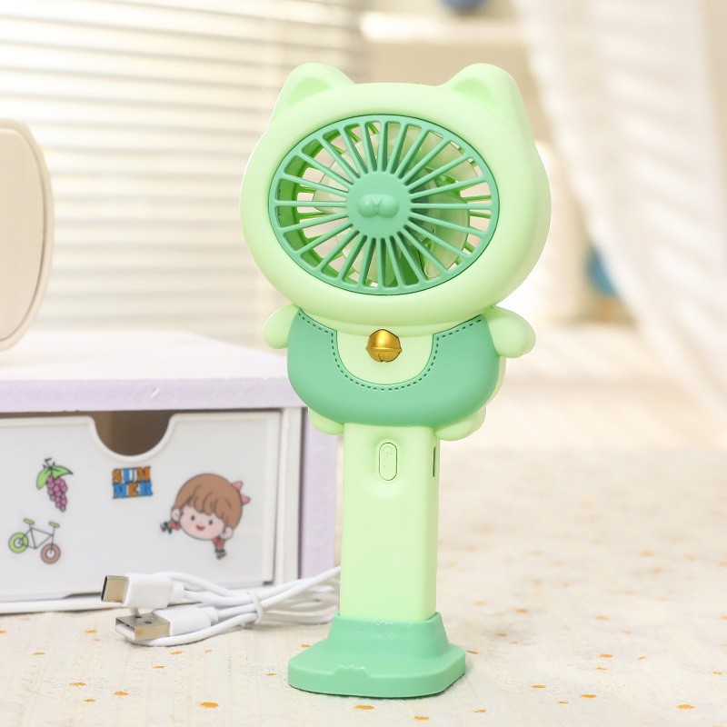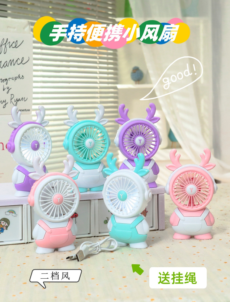 手持卡通背带小熊迷你电风扇 带挂绳usb充电便携口袋风扇儿童礼品
