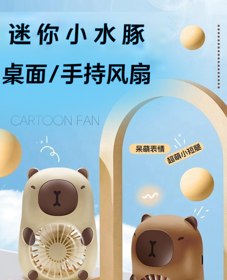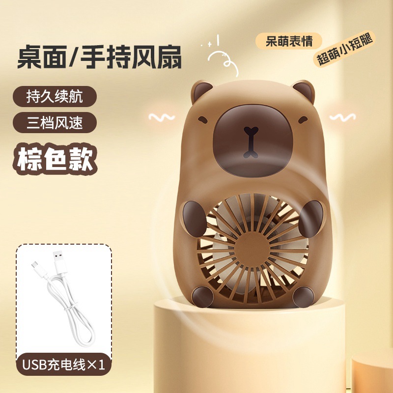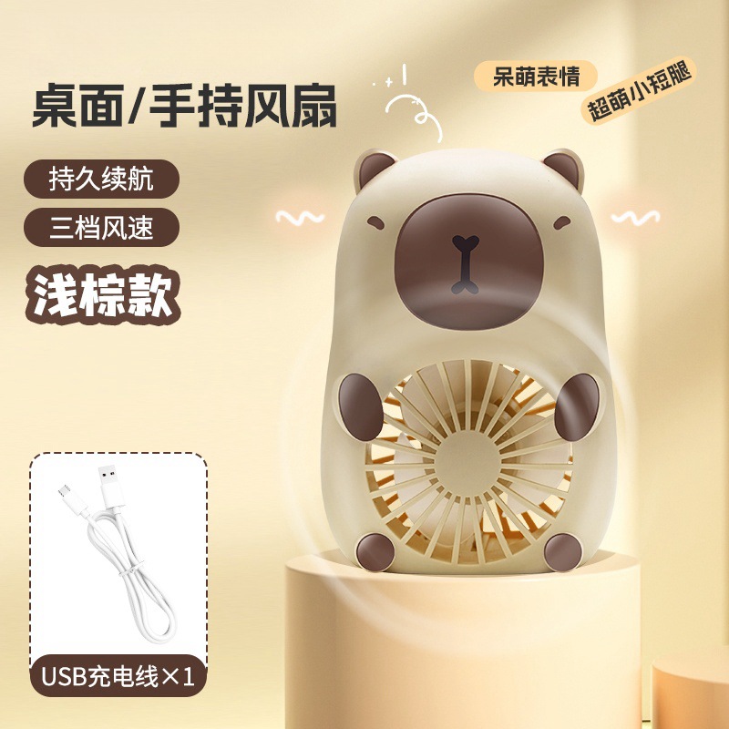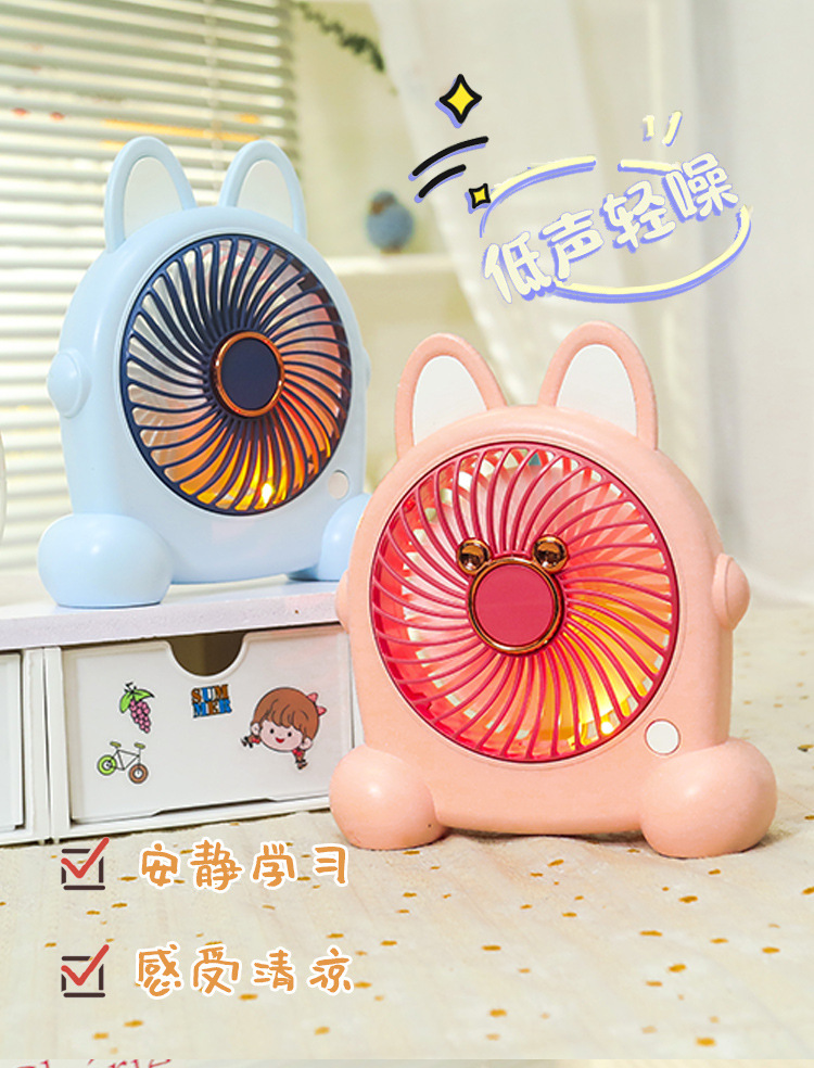 新款ins风憨憨熊台式小风扇 USB充电三档强风角度可调儿童电风扇