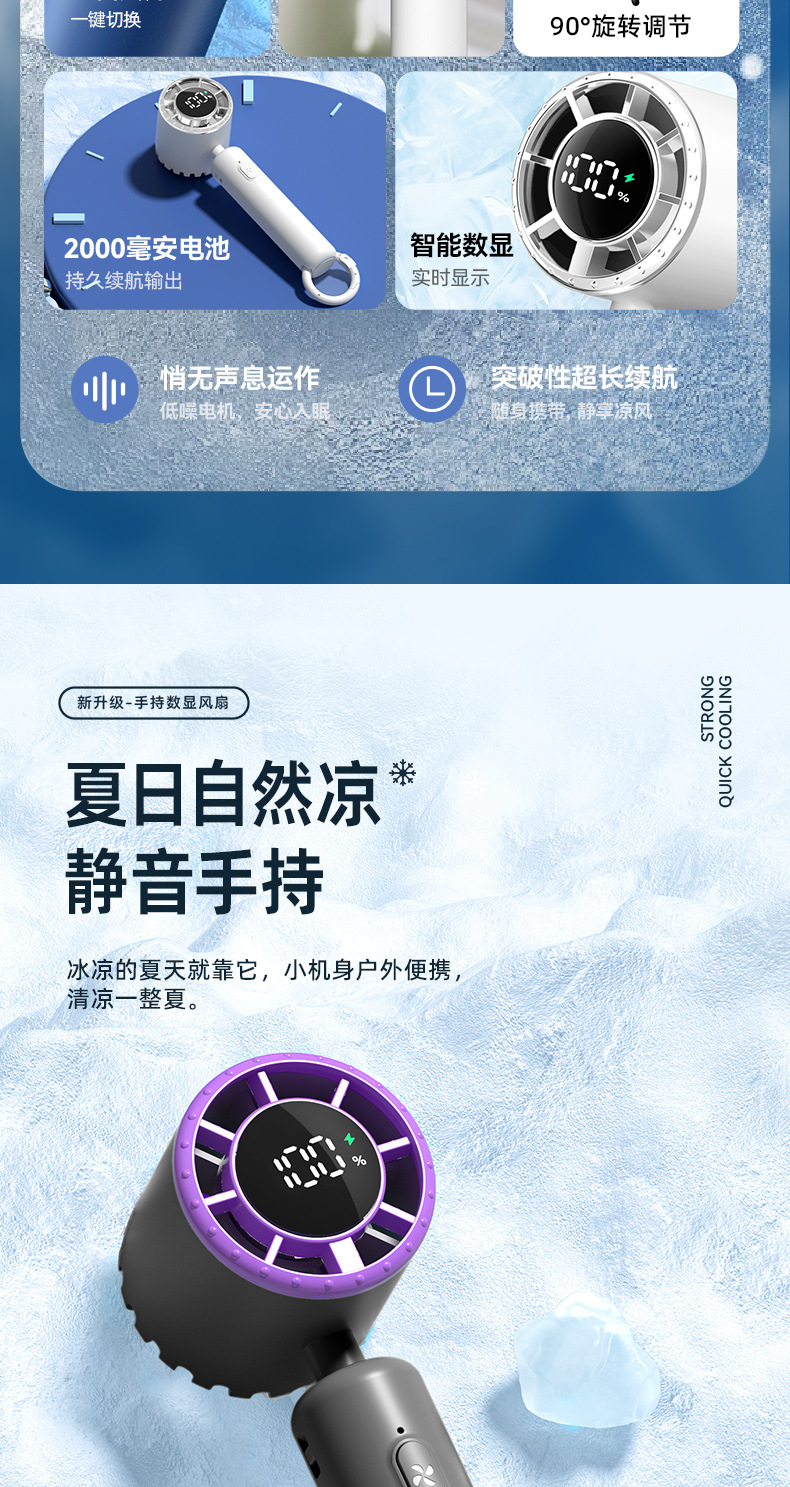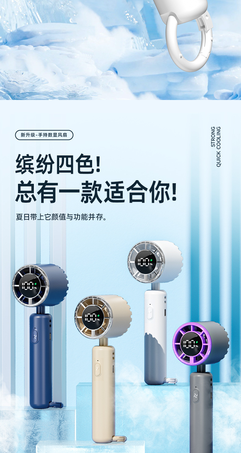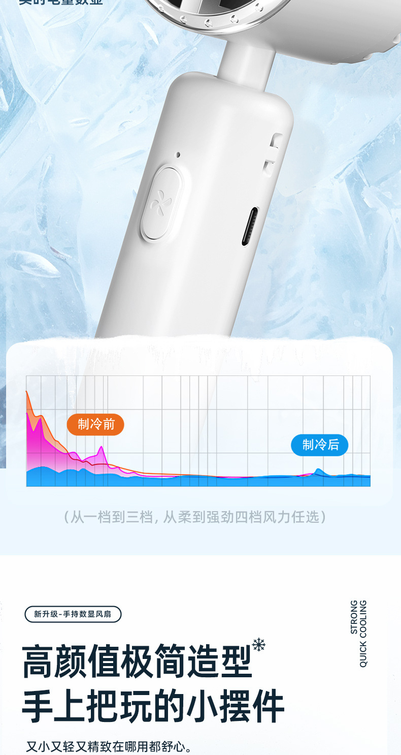 2025冰敷手持风扇办公户外便携式usb数显制冷暴力高速涡轮小风扇