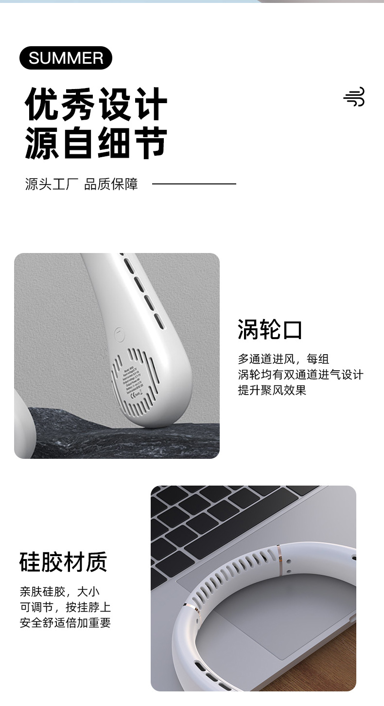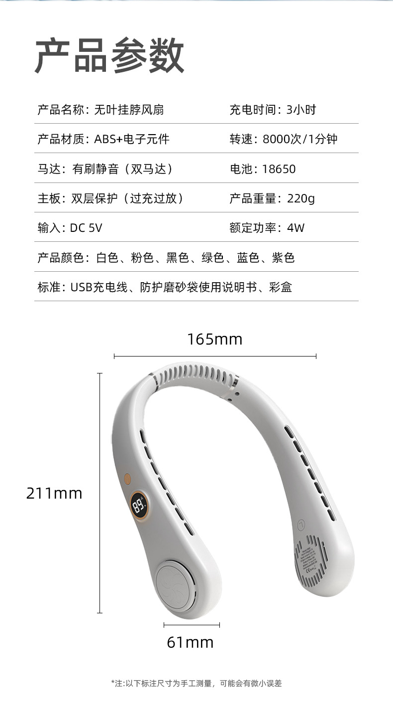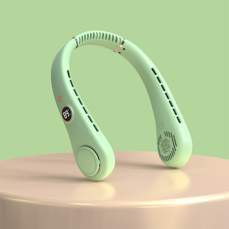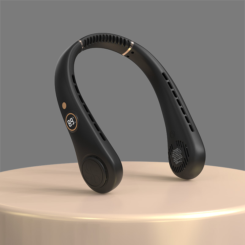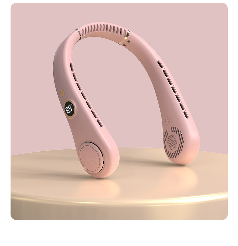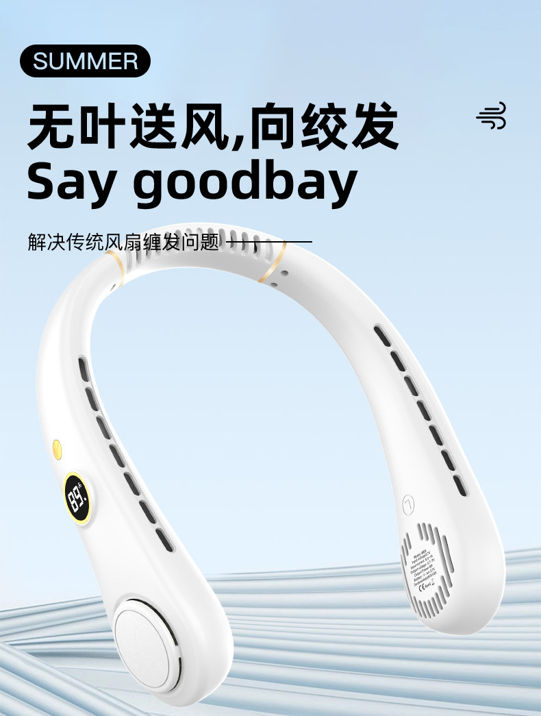 2025款跨境无叶挂脖风扇usb户外便携五档数显学生迷你挂脖小风扇