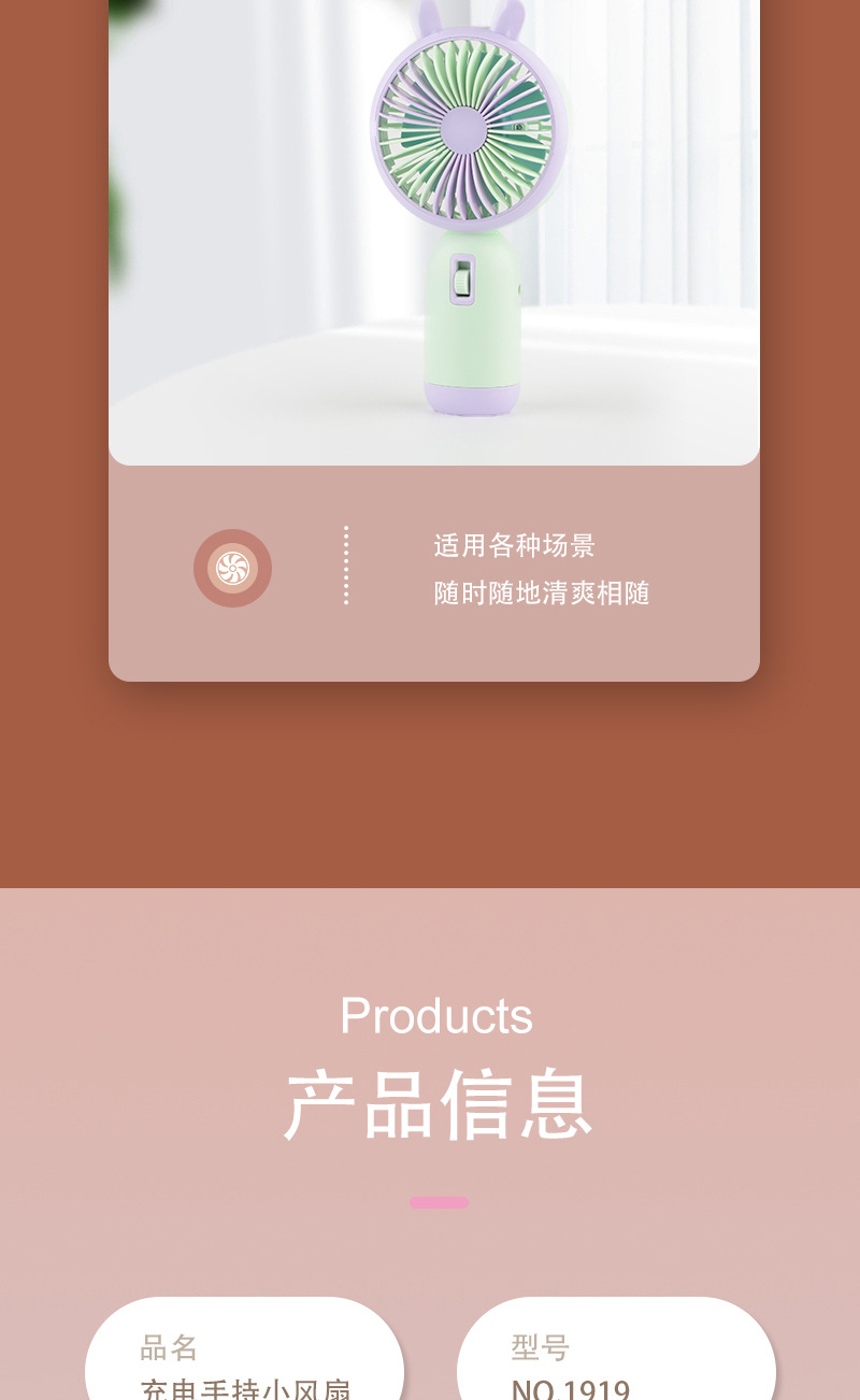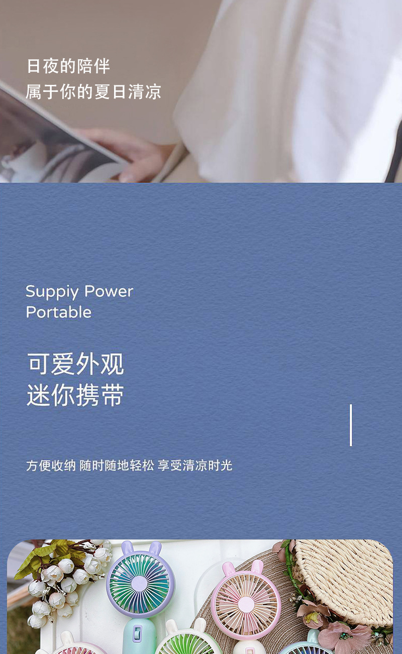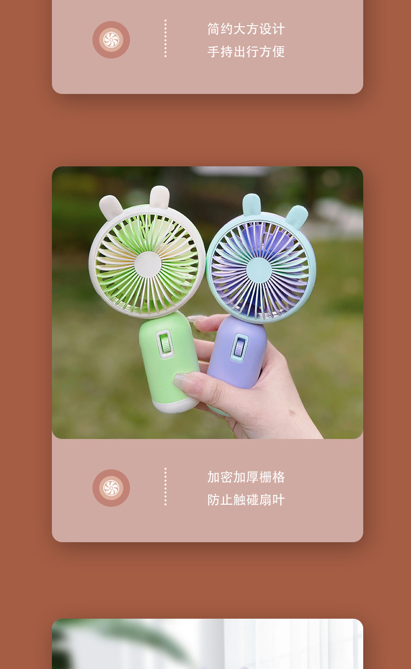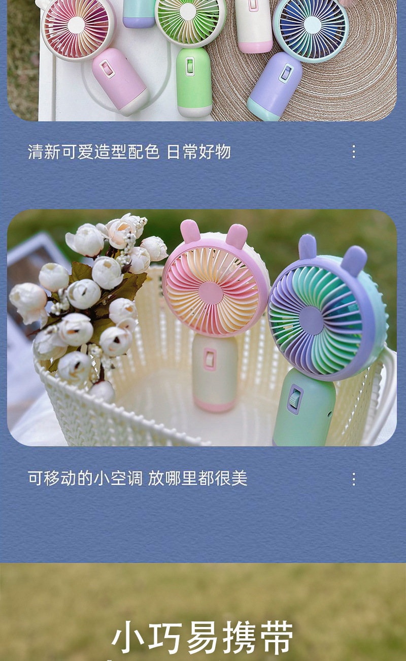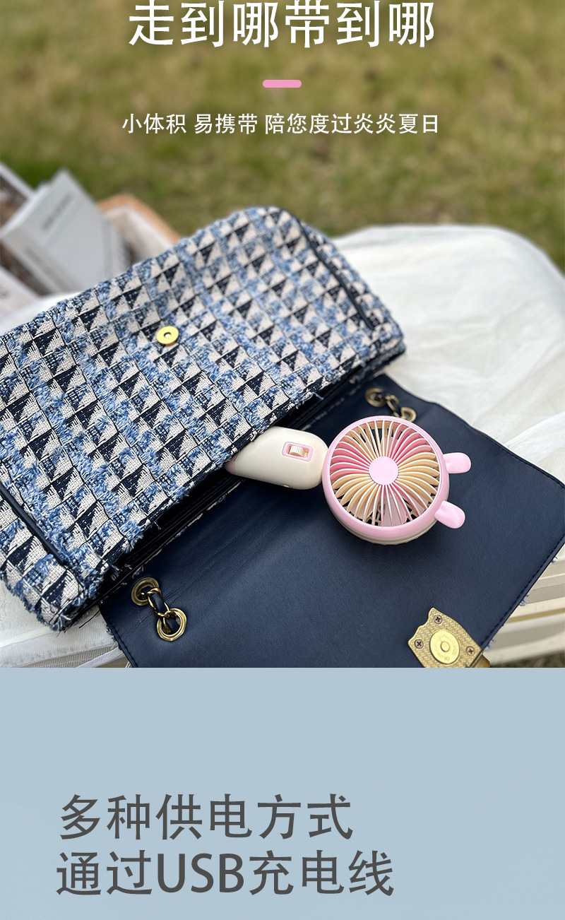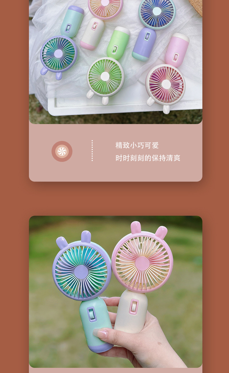 简约撞色手持小风扇户外随身可充电USB宿舍桌面迷你风扇便携学生
