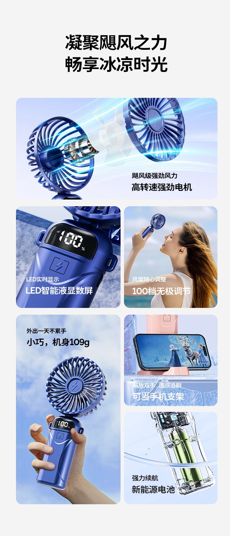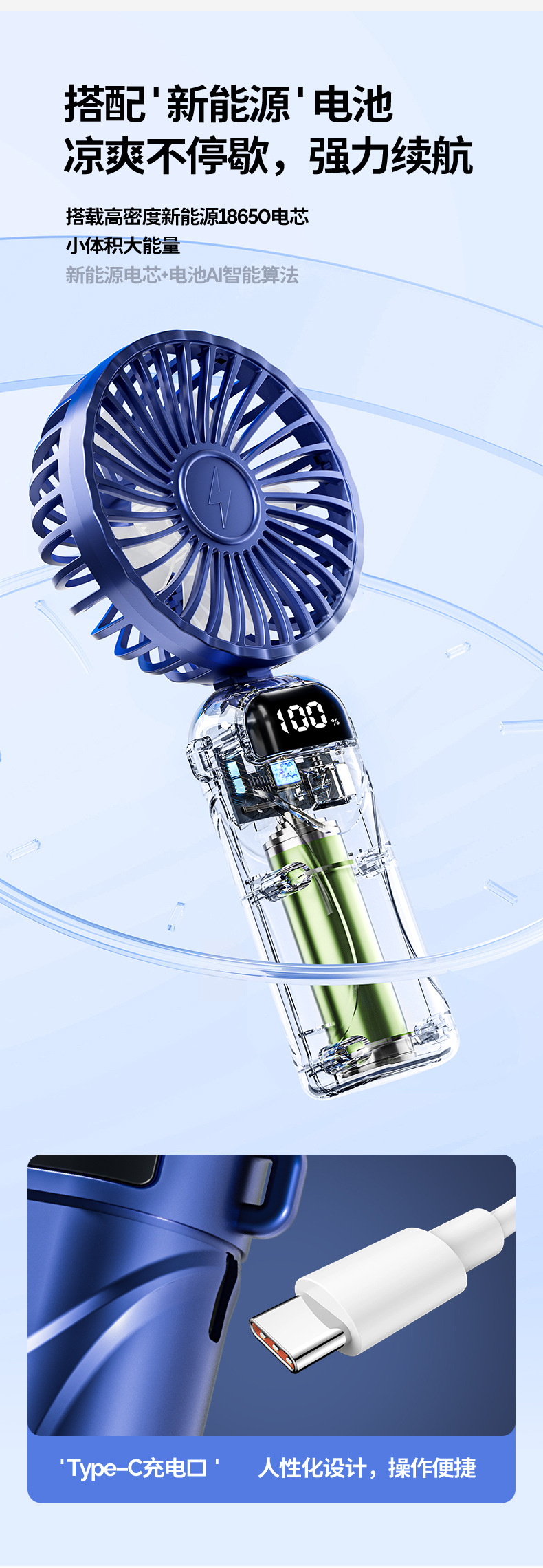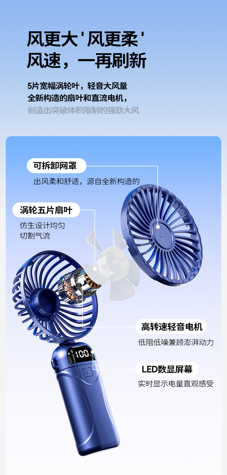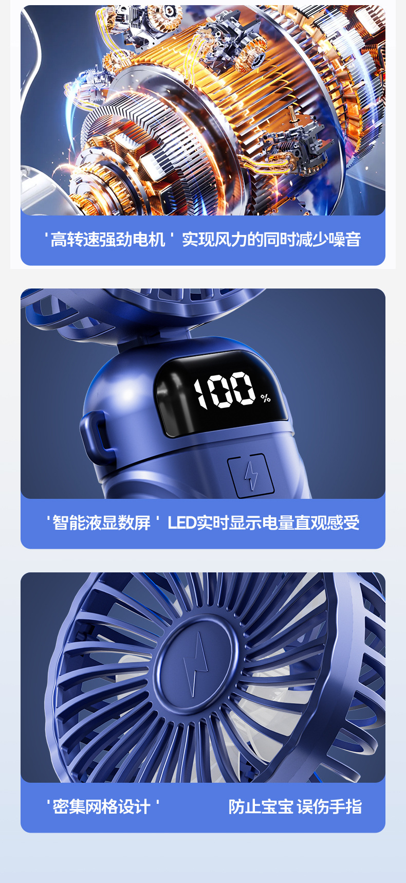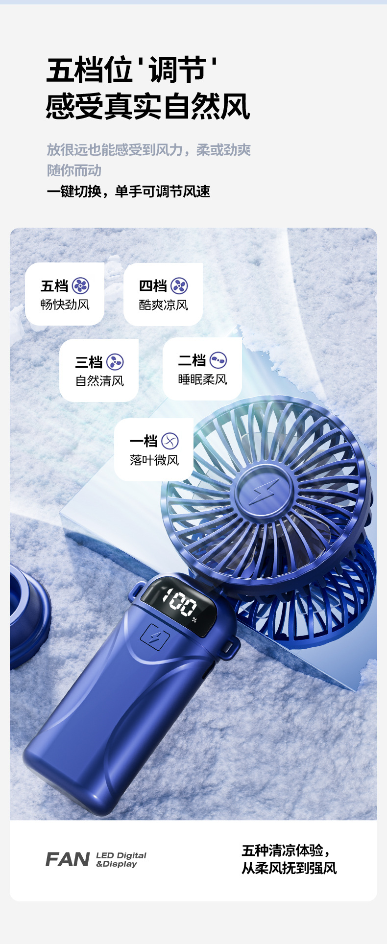 厂家批发手持风扇便携式挂脖扇桌面风扇涡轮高速风扇智能数显循环