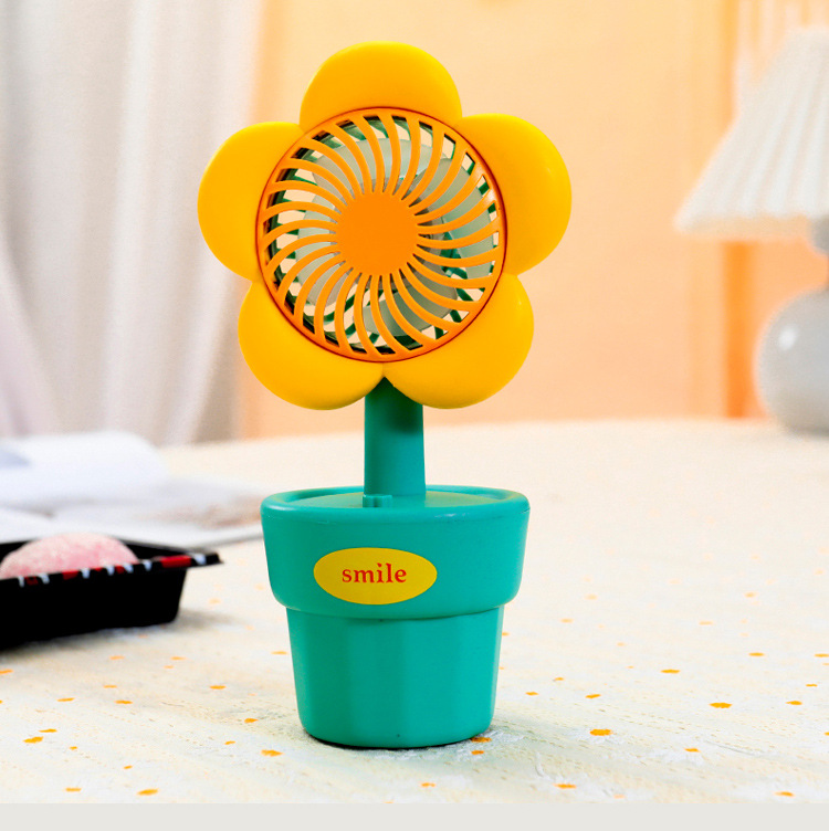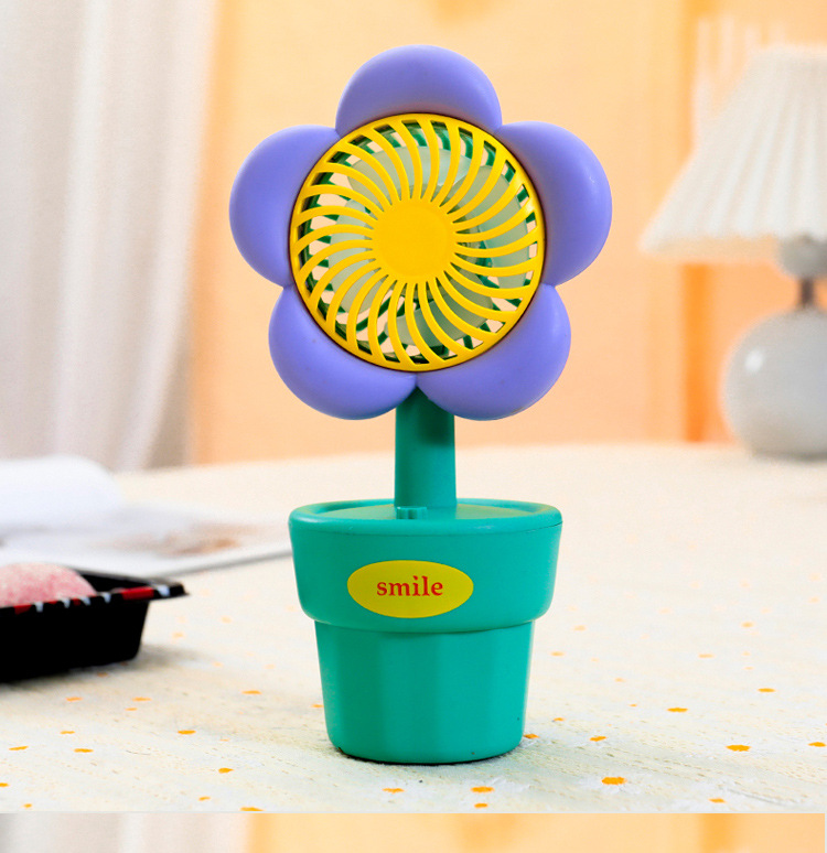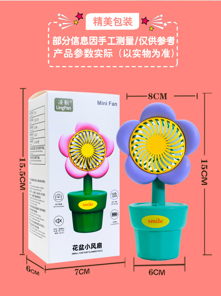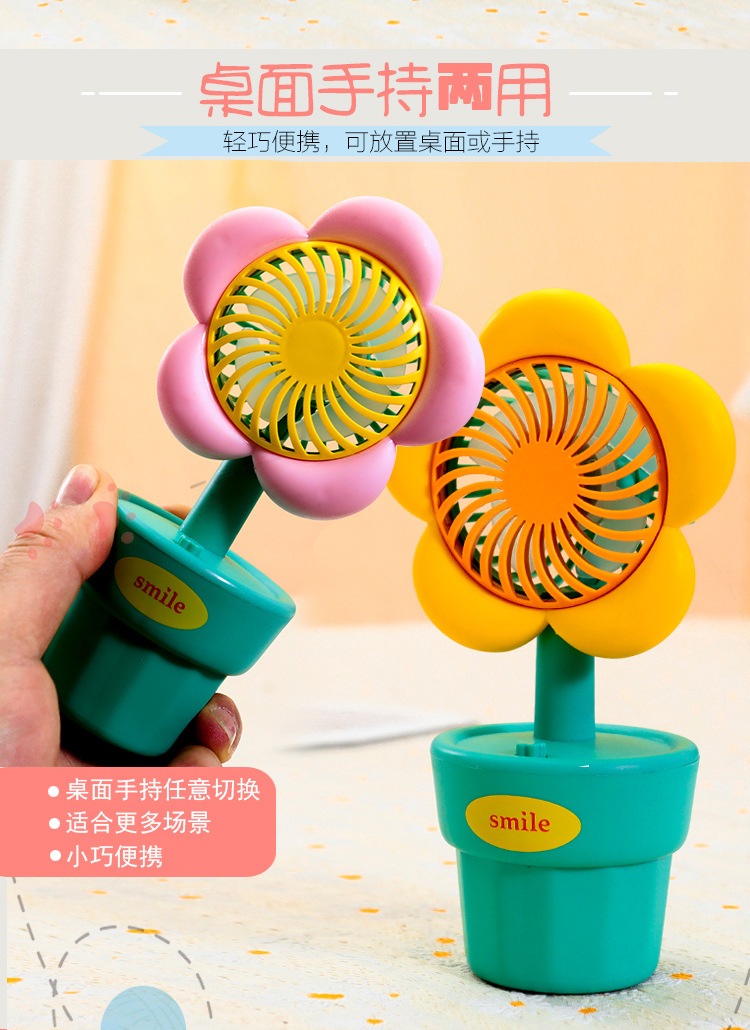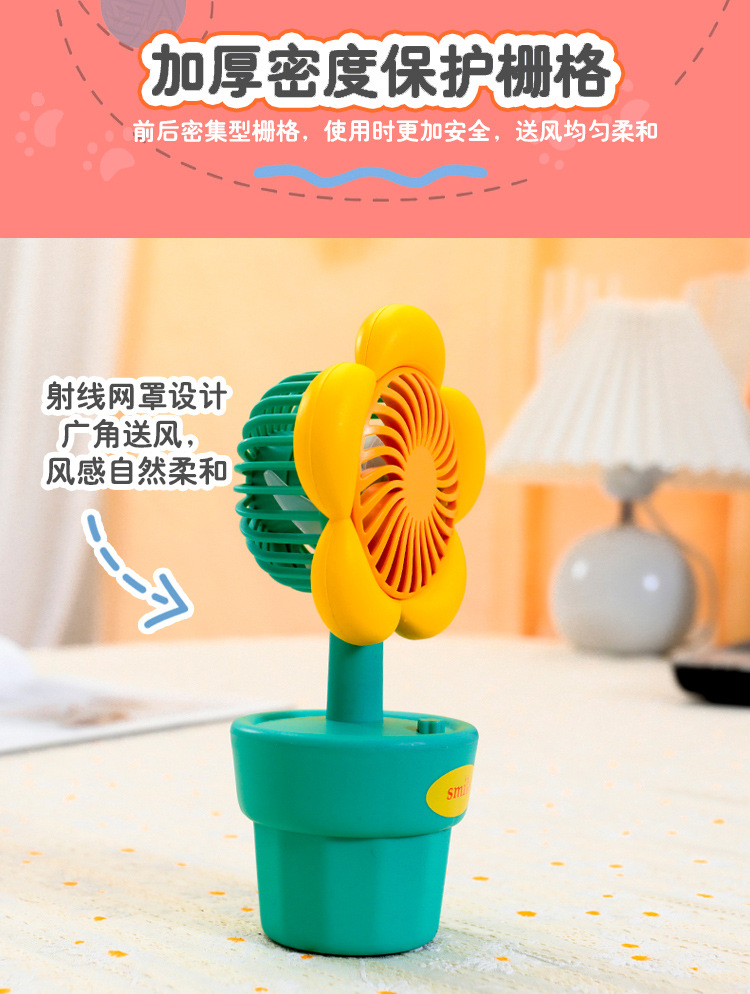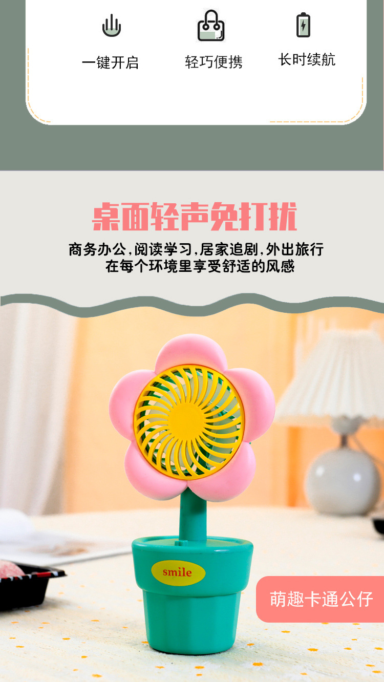 创意静音底噪柔风童趣花盆小风扇 学生家用可爱玩具迷你花朵风扇