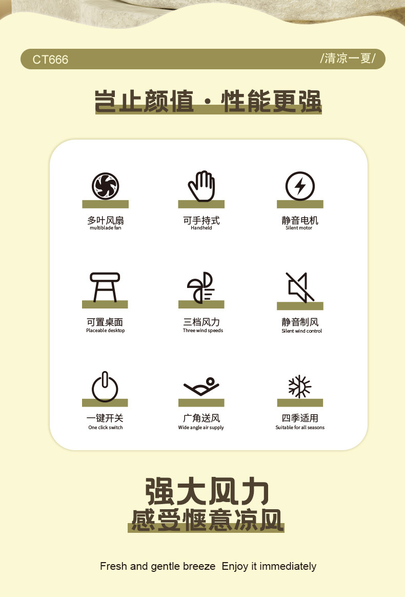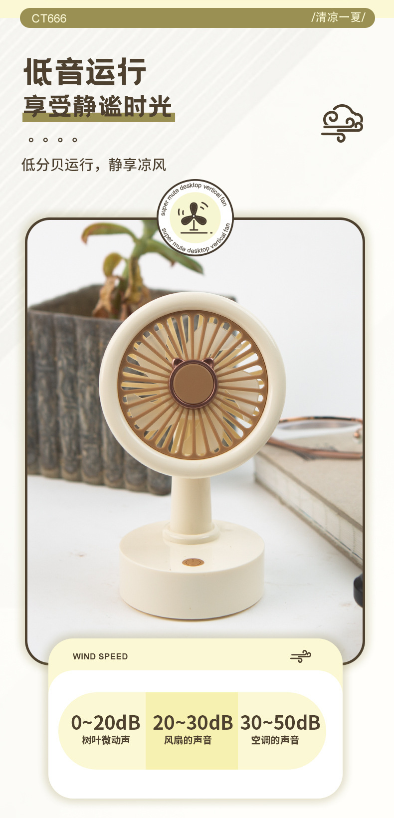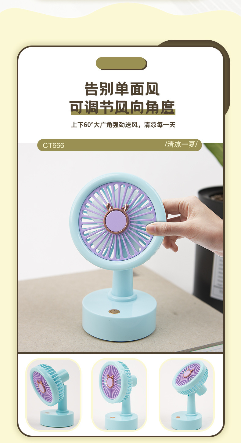现代简约立式桌面风扇学生宿舍角度可调节三档大风力USB充电风扇