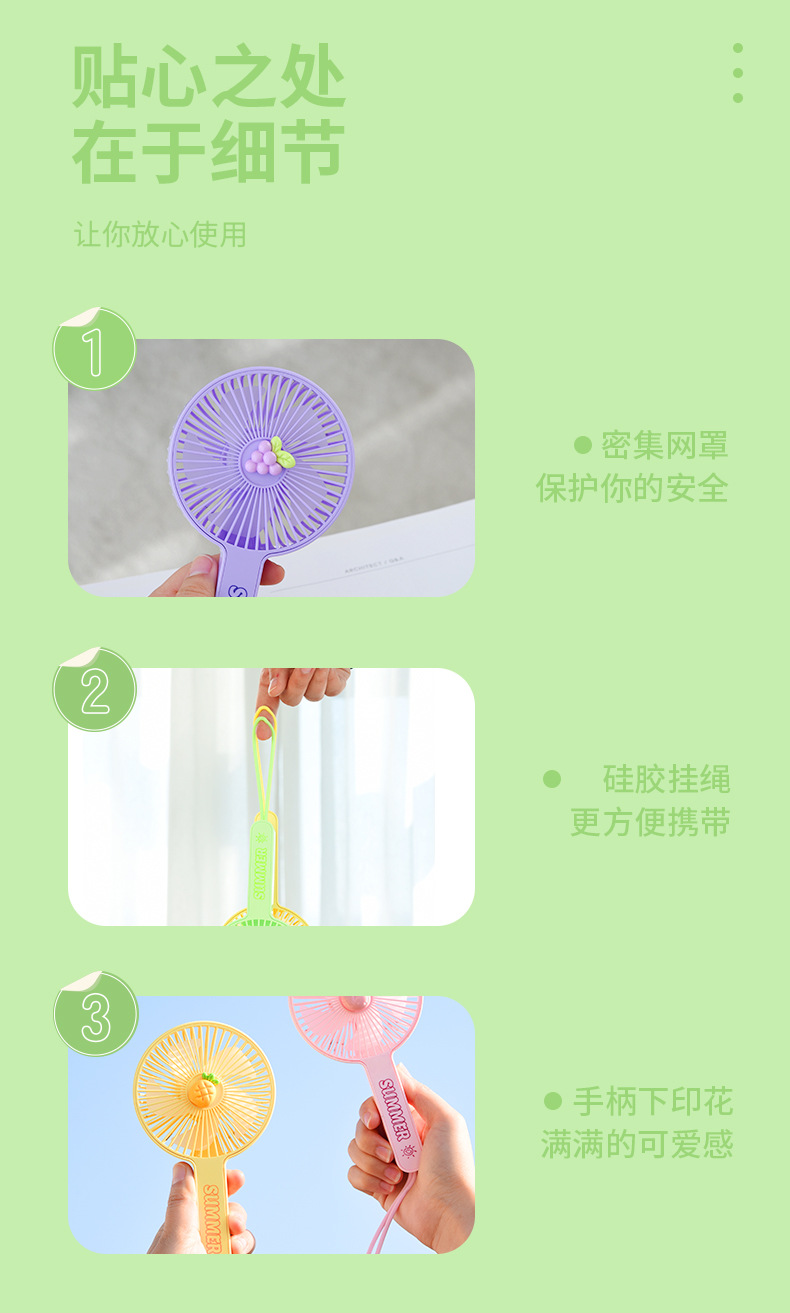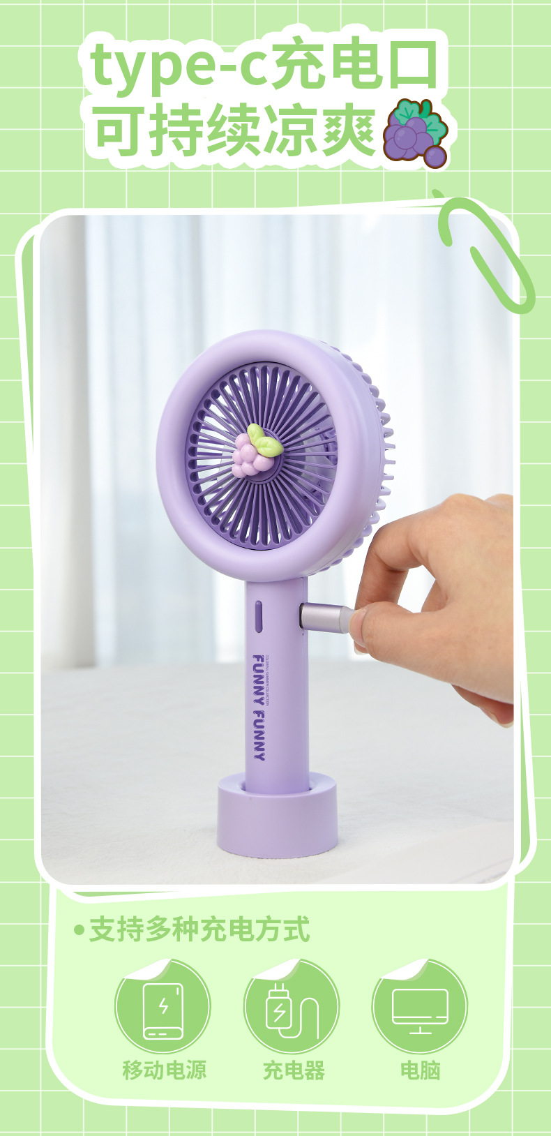 桌面暴力卡通风扇水果usb充电大风力手持风扇充电便携手持小风扇