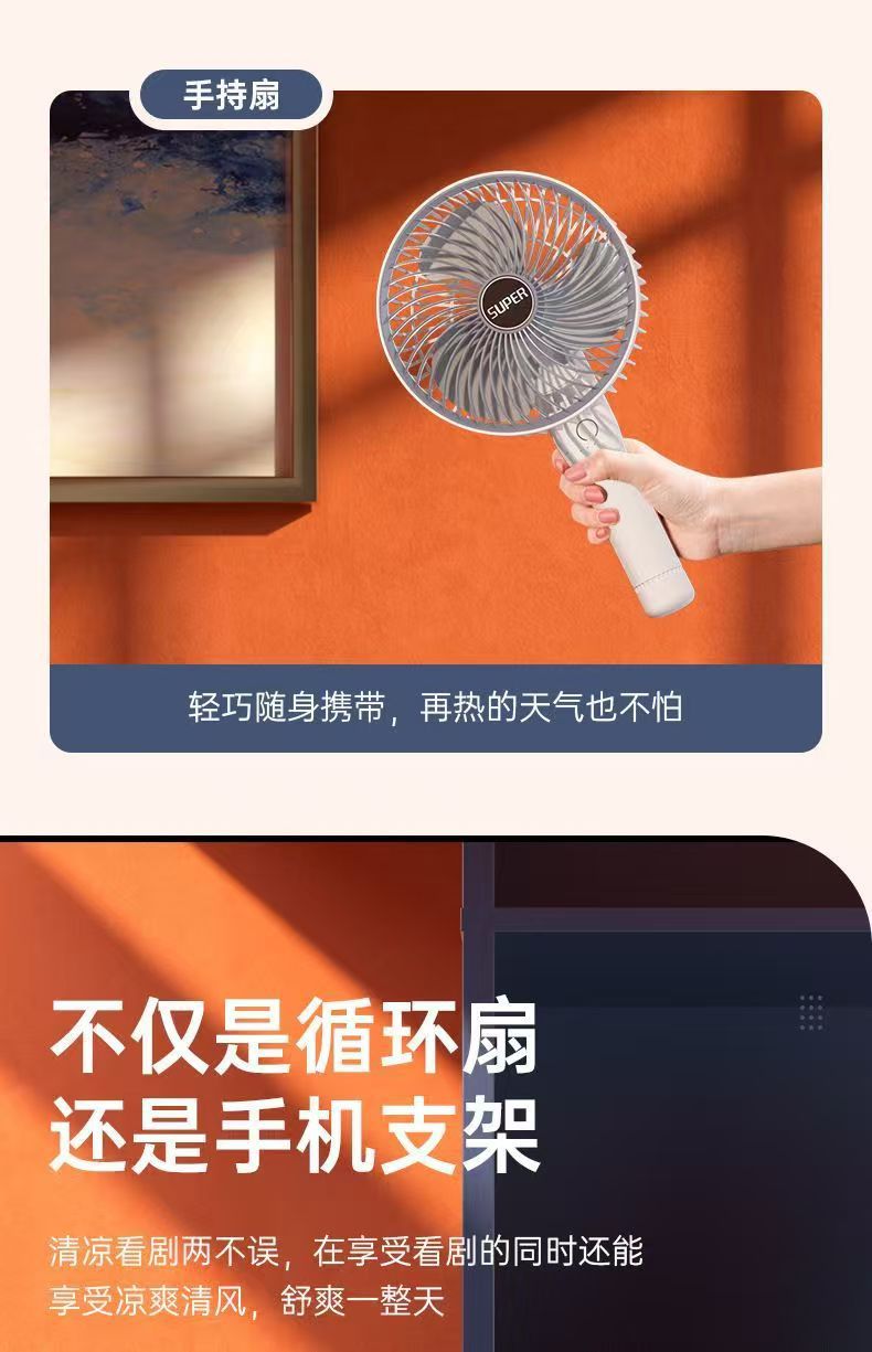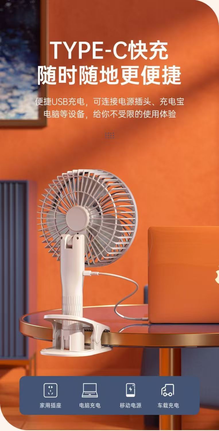新款桌面夹子风扇充电款多功能挂壁小风扇多档调速强风手持风扇