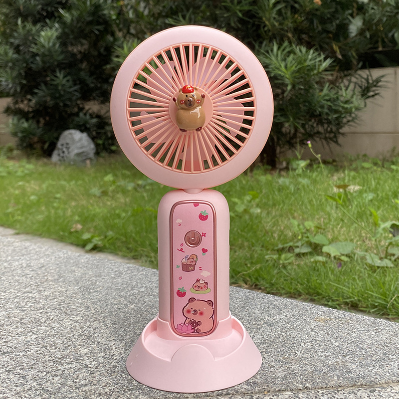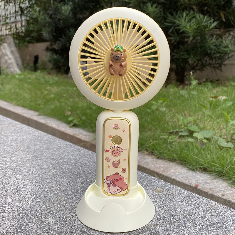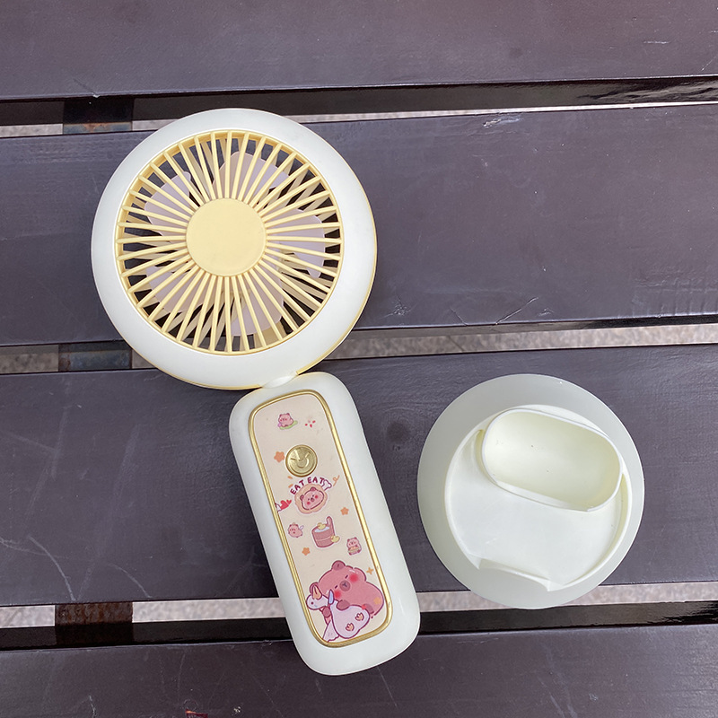 跨境迷你usb折叠风扇卡通带灯光桌面小夜灯便携式充电手持小风扇