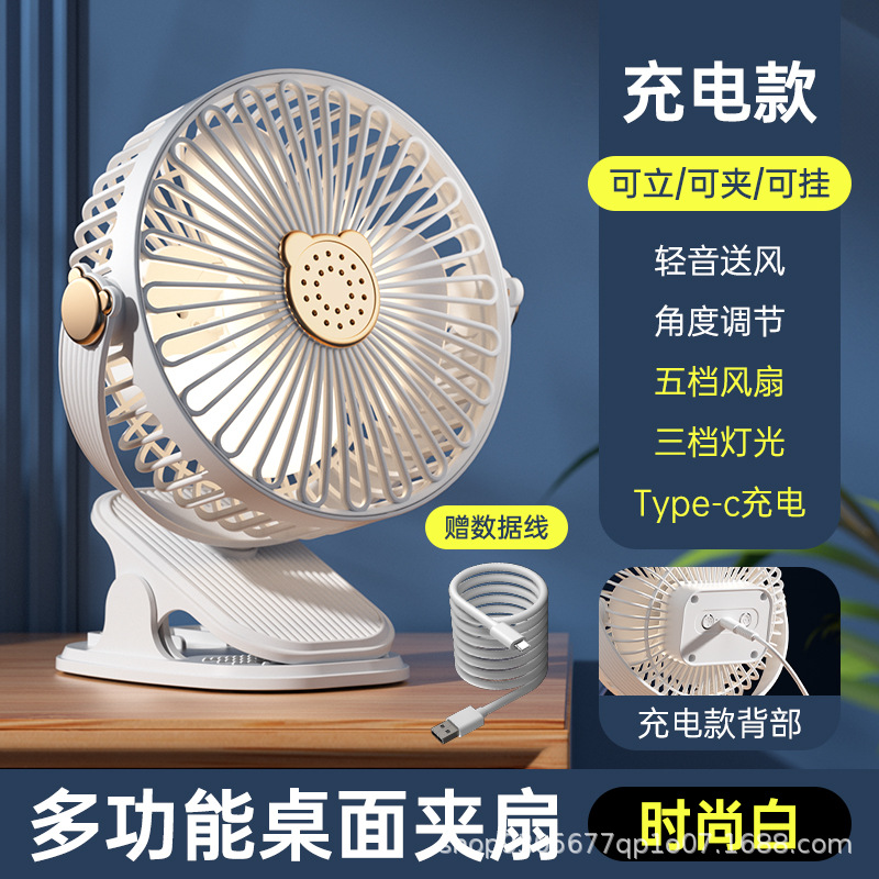 新款跨境夹子风扇夜灯照明迷你充电小型宿舍家用壁挂桌面风扇静音