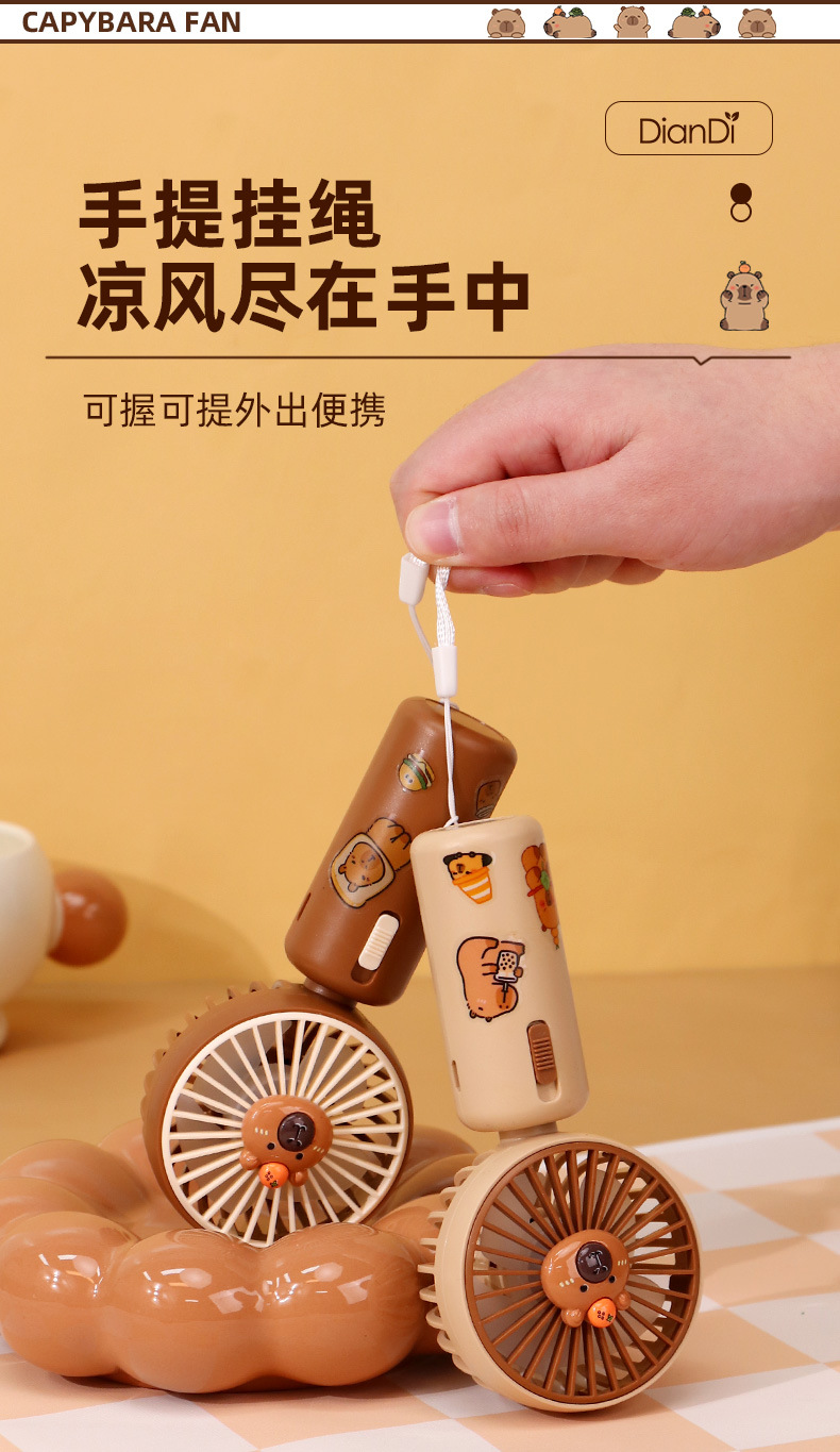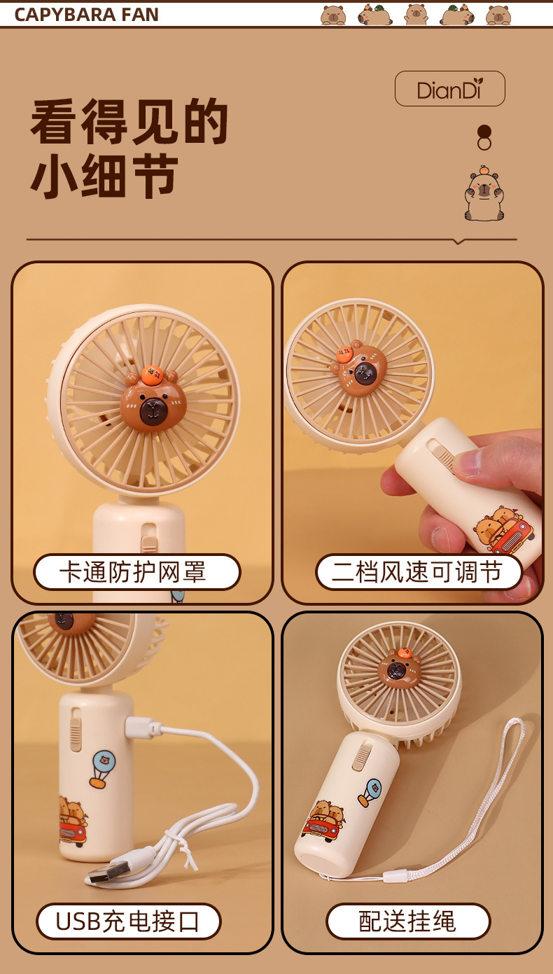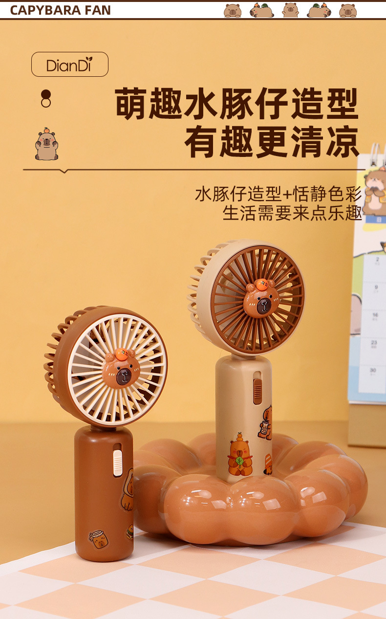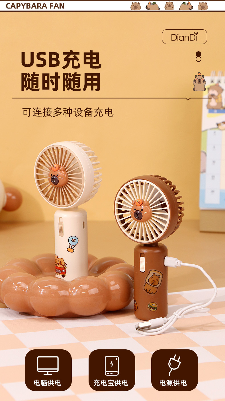 2025新款卡通卡皮巴拉手持小风扇usb充电便携式桌面户外电迷你女