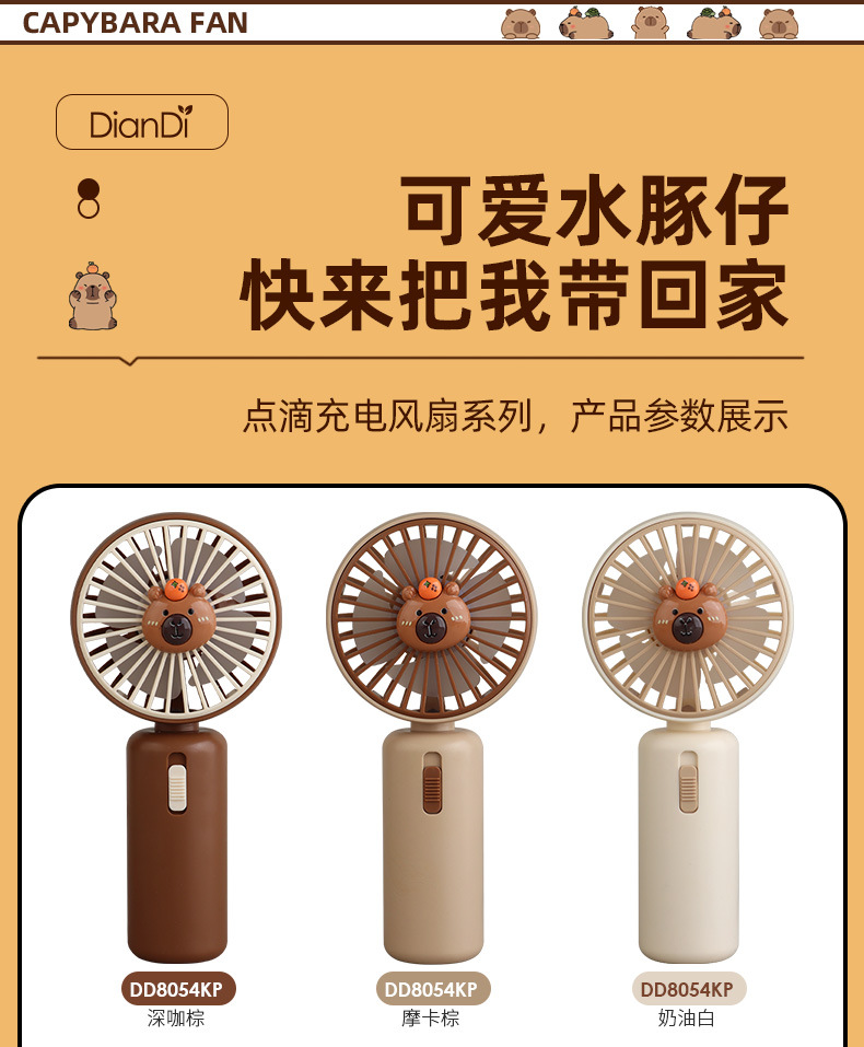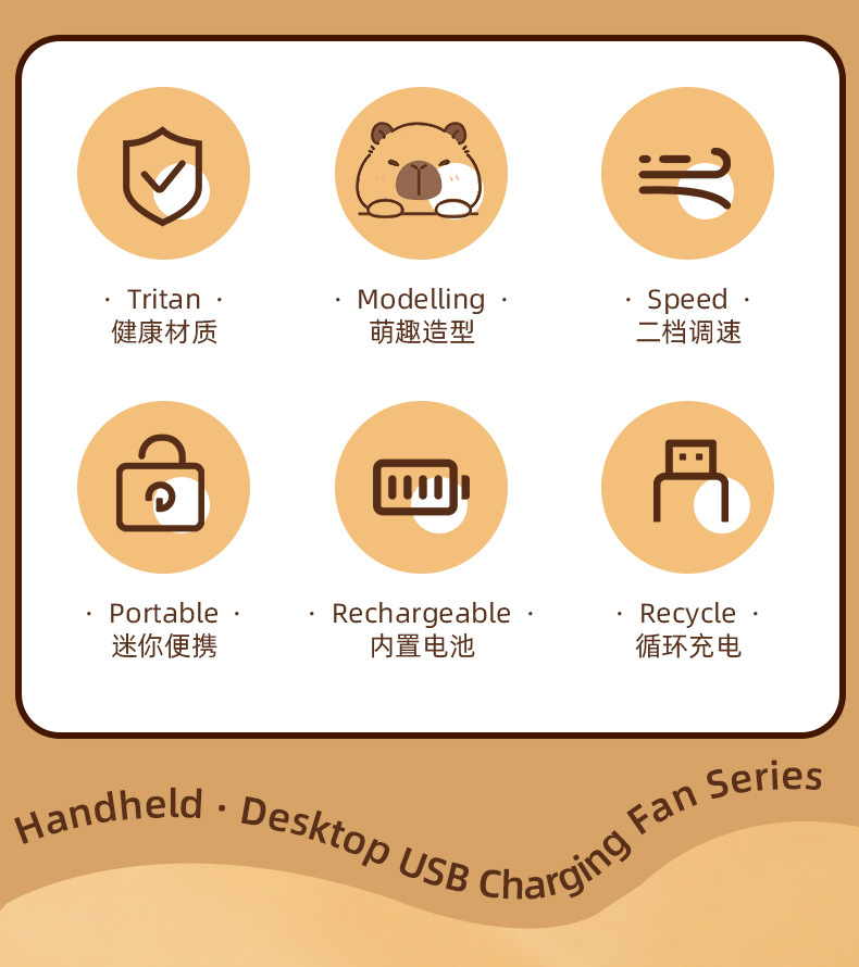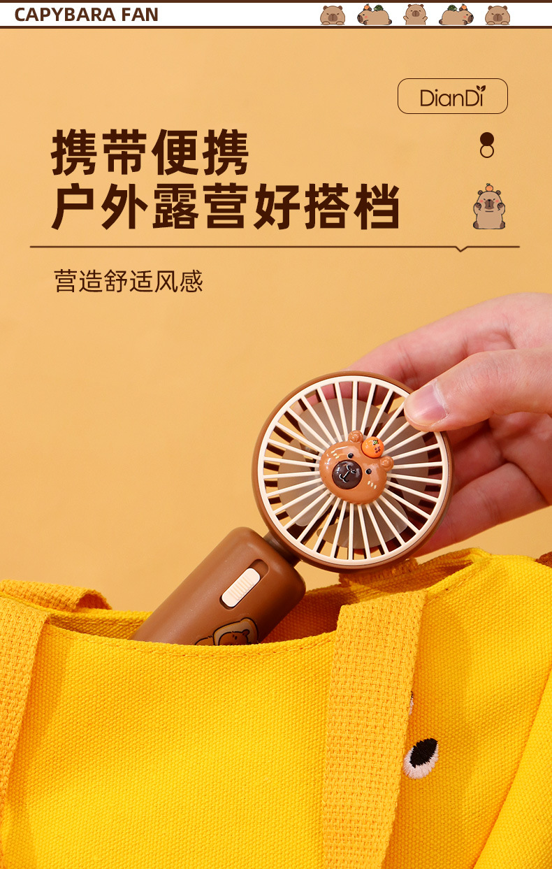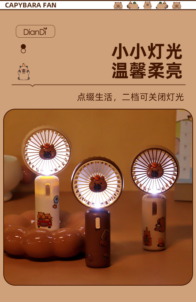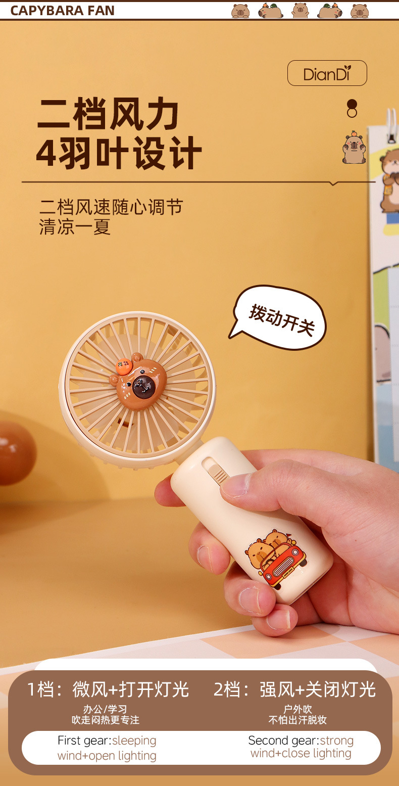 2025新款卡通卡皮巴拉手持小风扇usb充电便携式桌面户外电迷你女